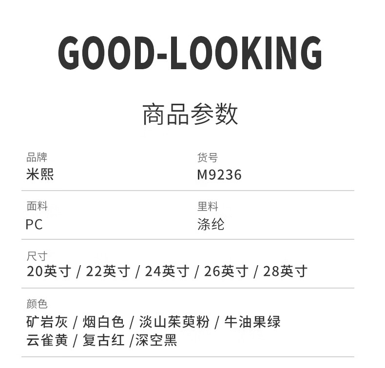 米熙mixi高颜值行李箱拉杆箱20英寸登机箱男密码箱子女学生旅行箱包