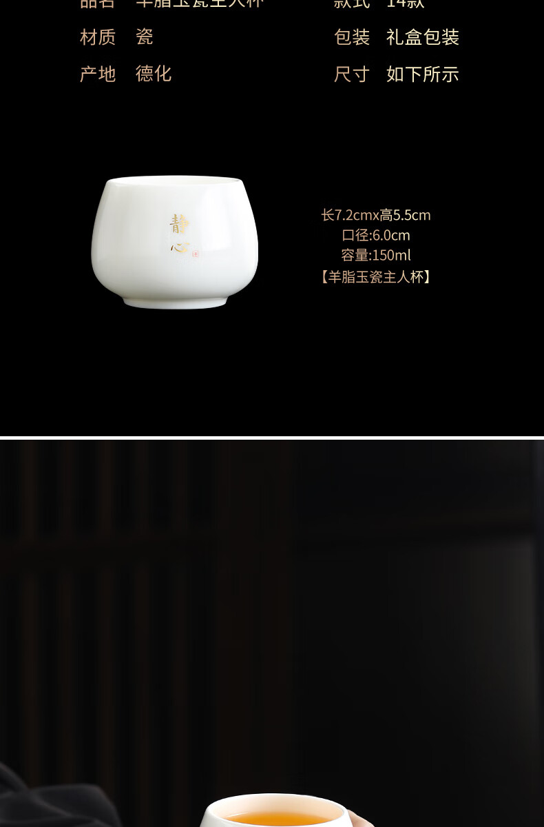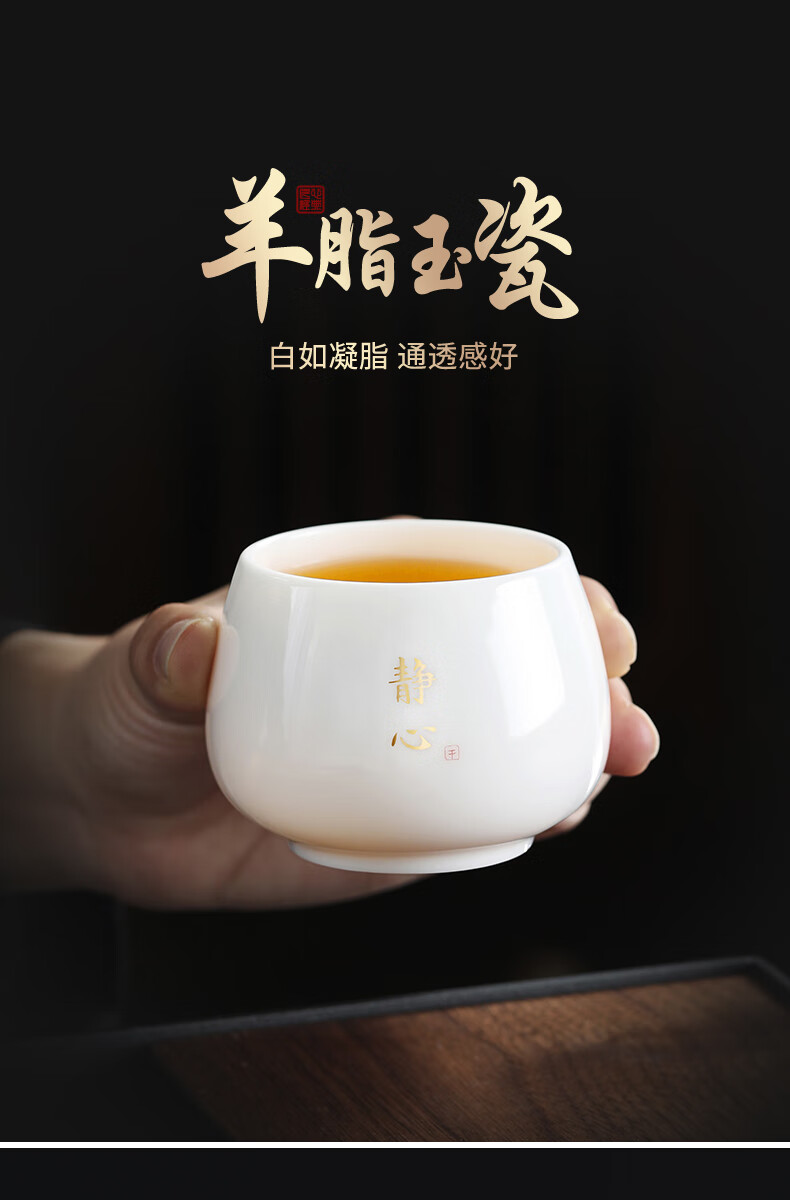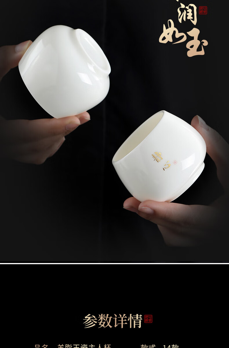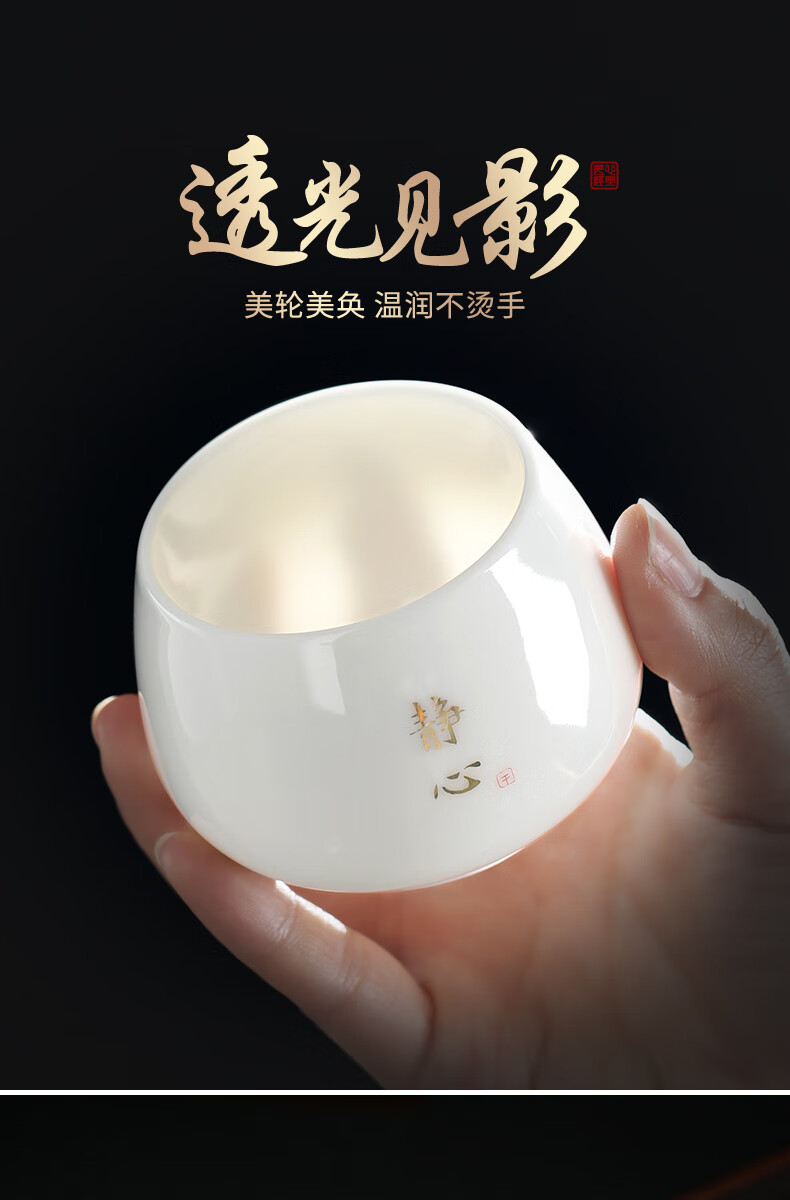 不拙羊脂玉主人杯个人专用泡茶单杯德化白瓷陶瓷功夫茶杯静心禅定杯子