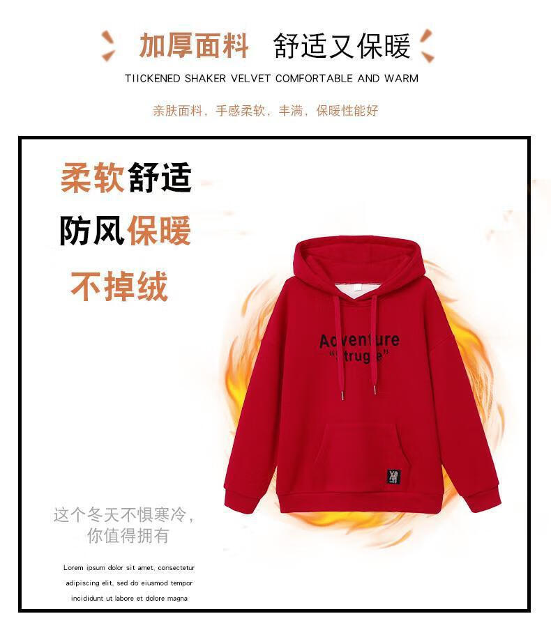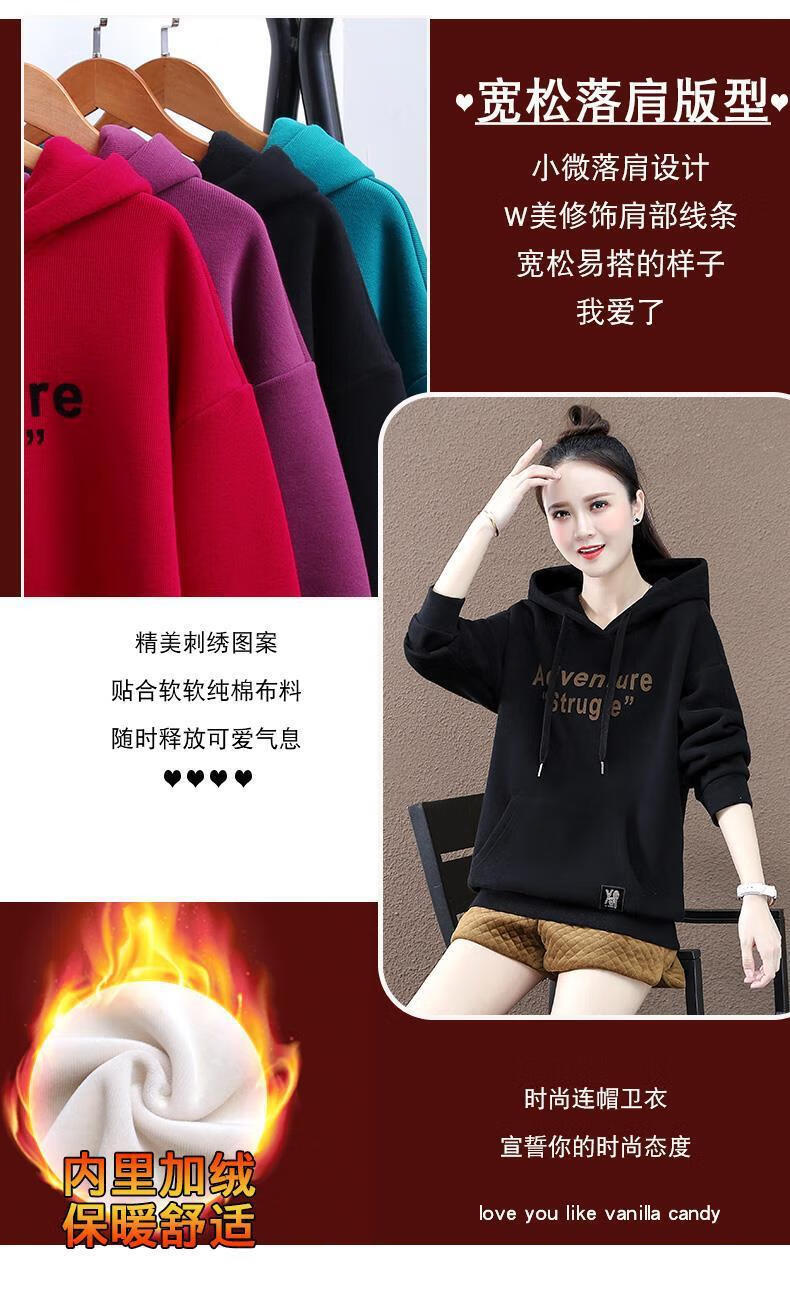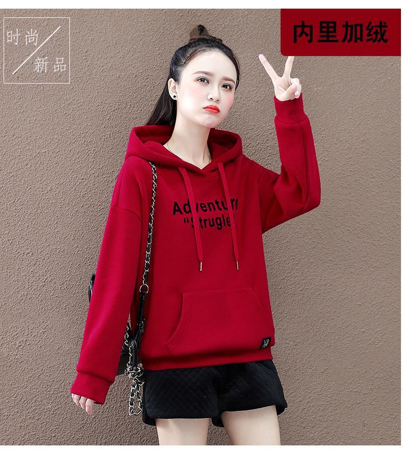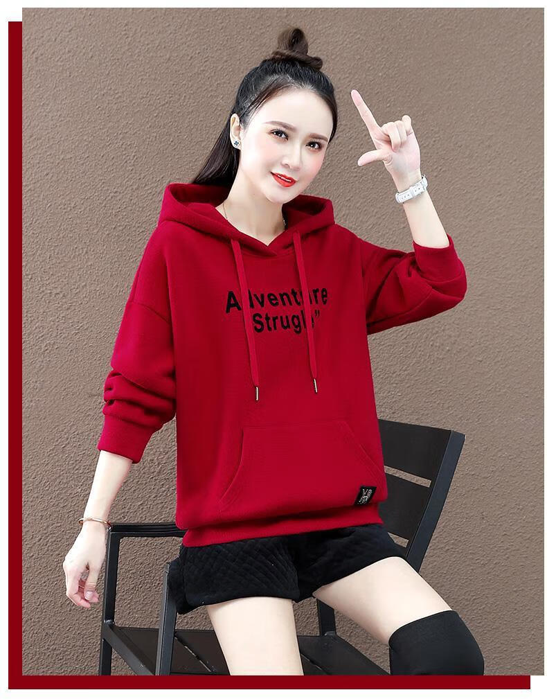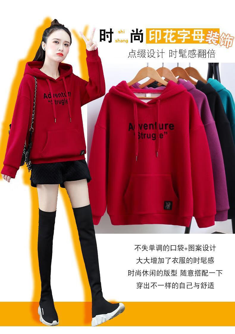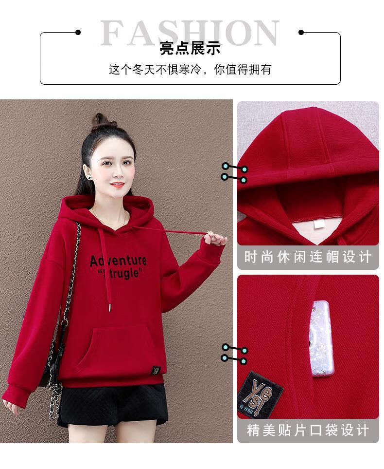 罗蒙(ROMON)轻奢女装 加绒加厚连帽卫衣女2024年秋冬季新款棉质大I码宽松上衣 红色 【棉复合宝宝绒】 L 建议100-115斤