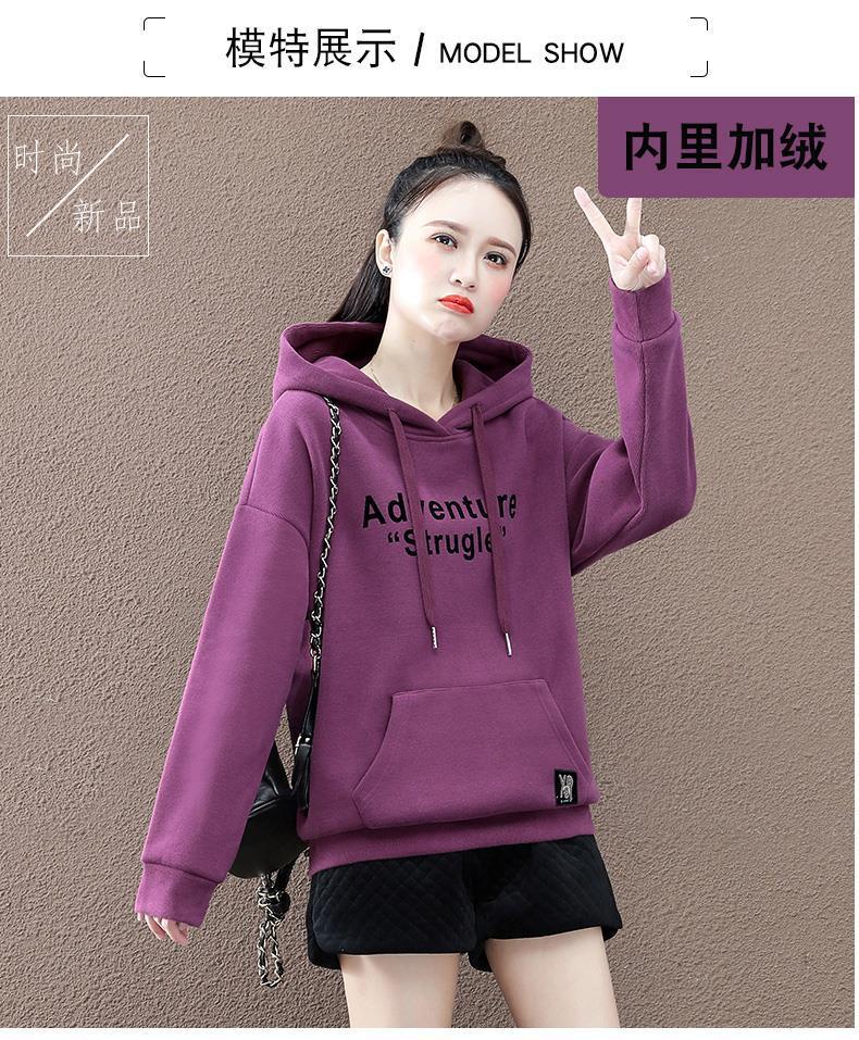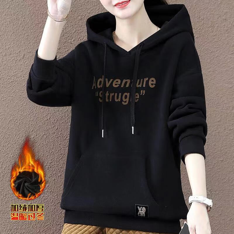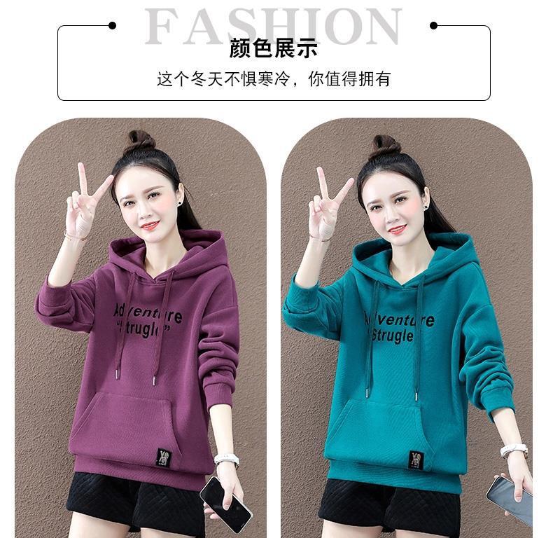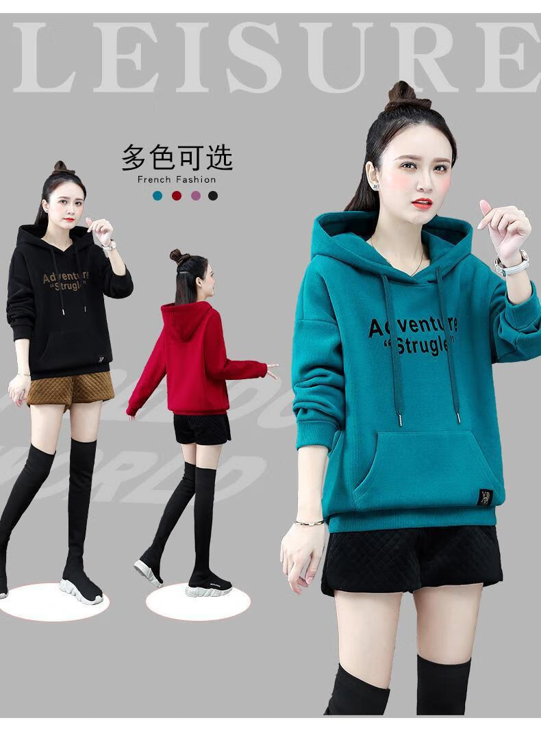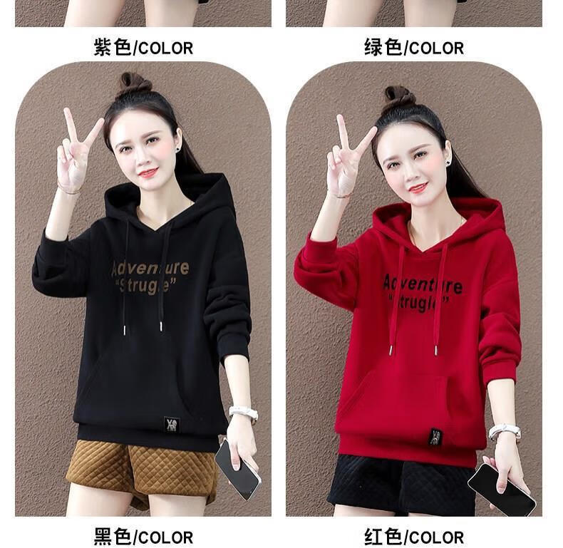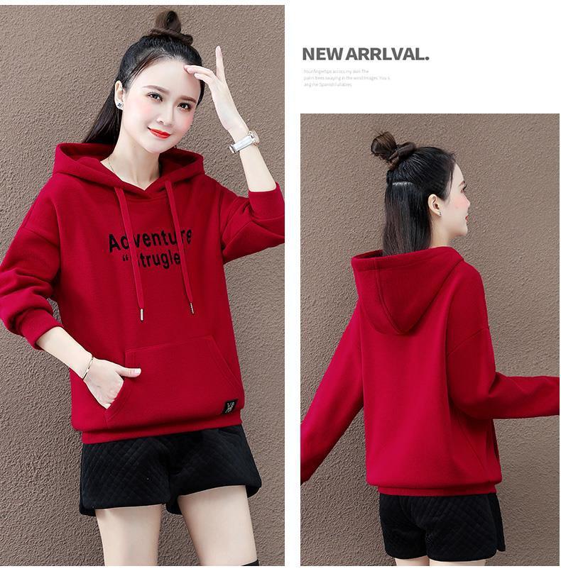 罗蒙(ROMON)轻奢女装 加绒加厚连帽卫衣女2024年秋冬季新款棉质大I码宽松上衣 红色 【棉复合宝宝绒】 L 建议100-115斤