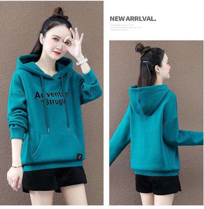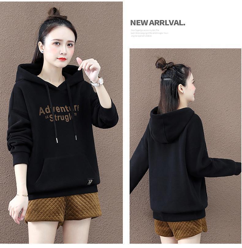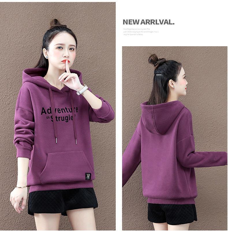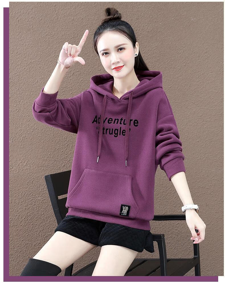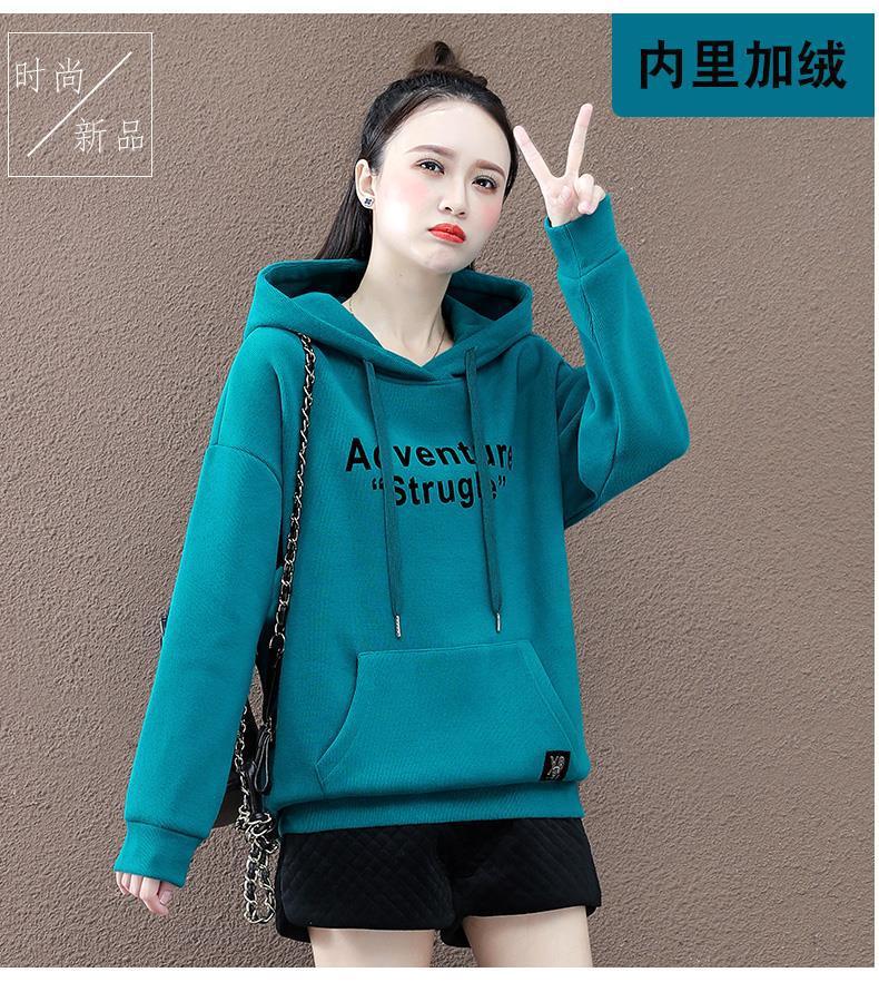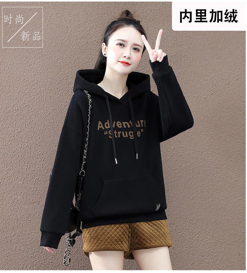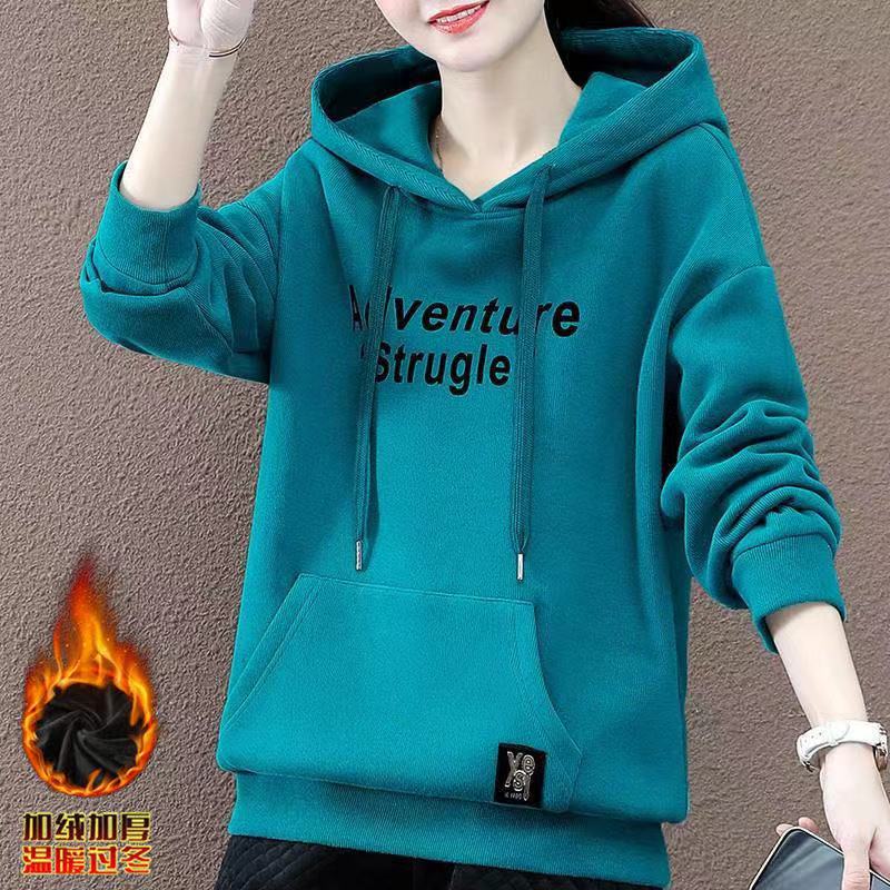 罗蒙(ROMON)轻奢女装 加绒加厚连帽卫衣女2024年秋冬季新款棉质大I码宽松上衣 红色 【棉复合宝宝绒】 L 建议100-115斤