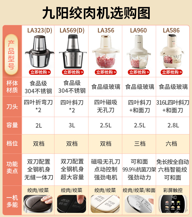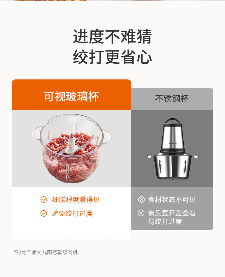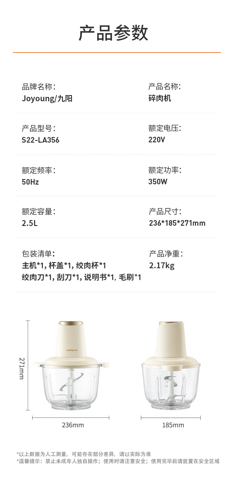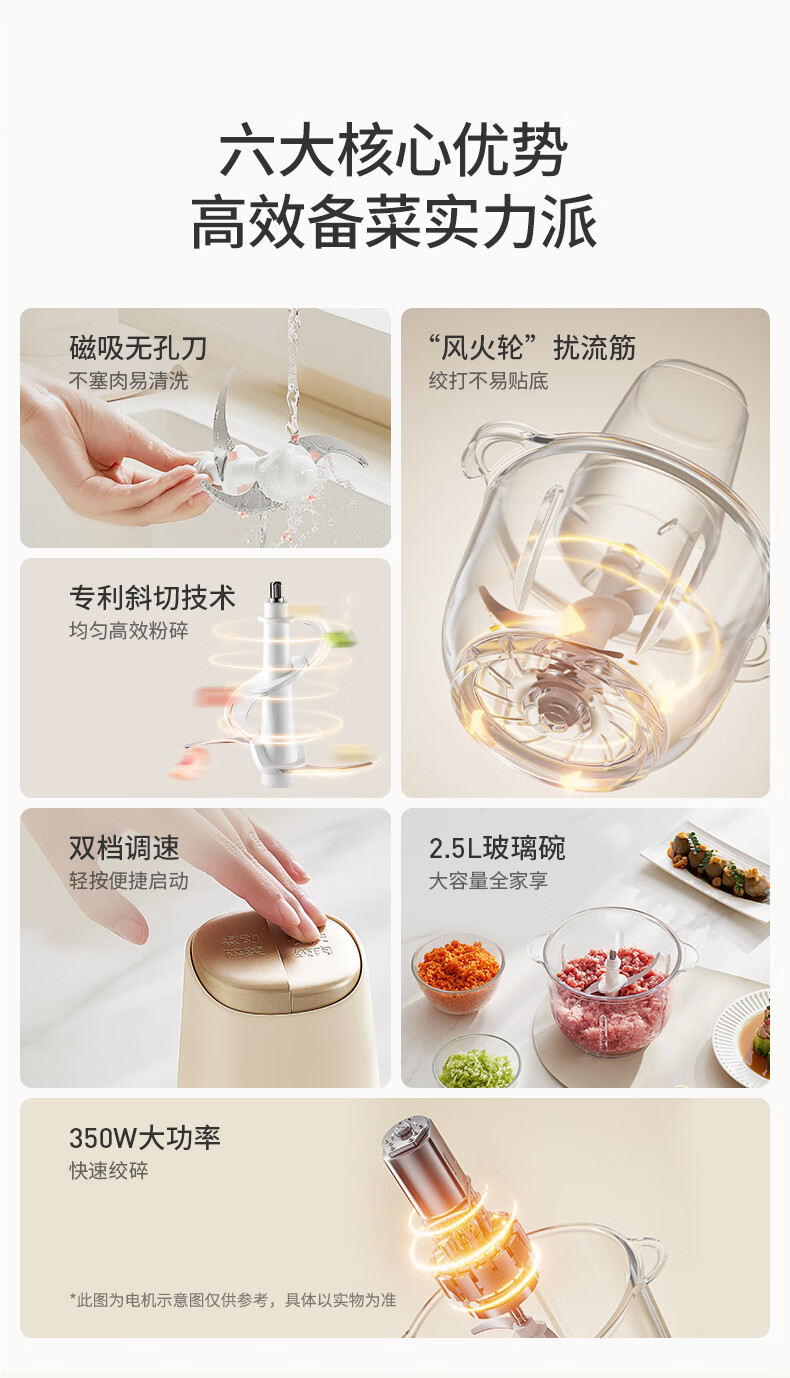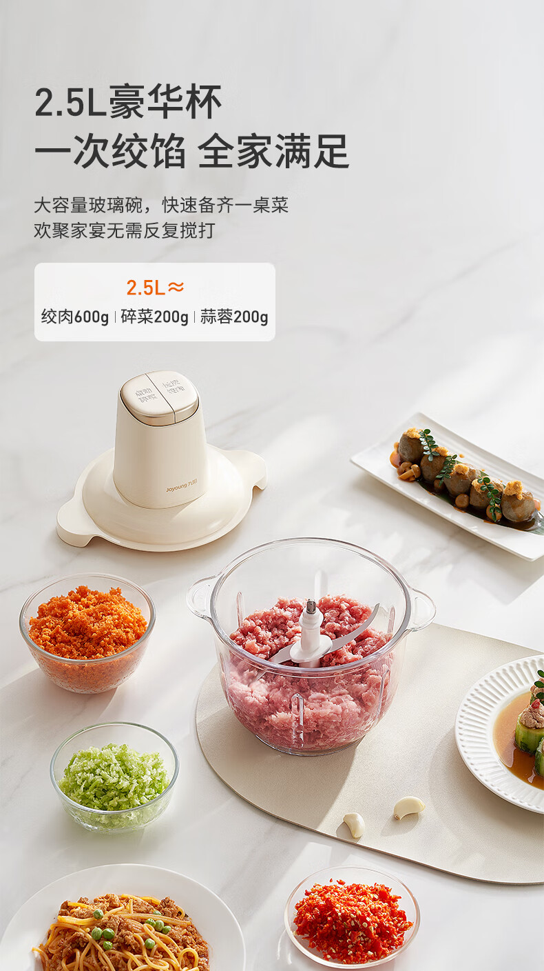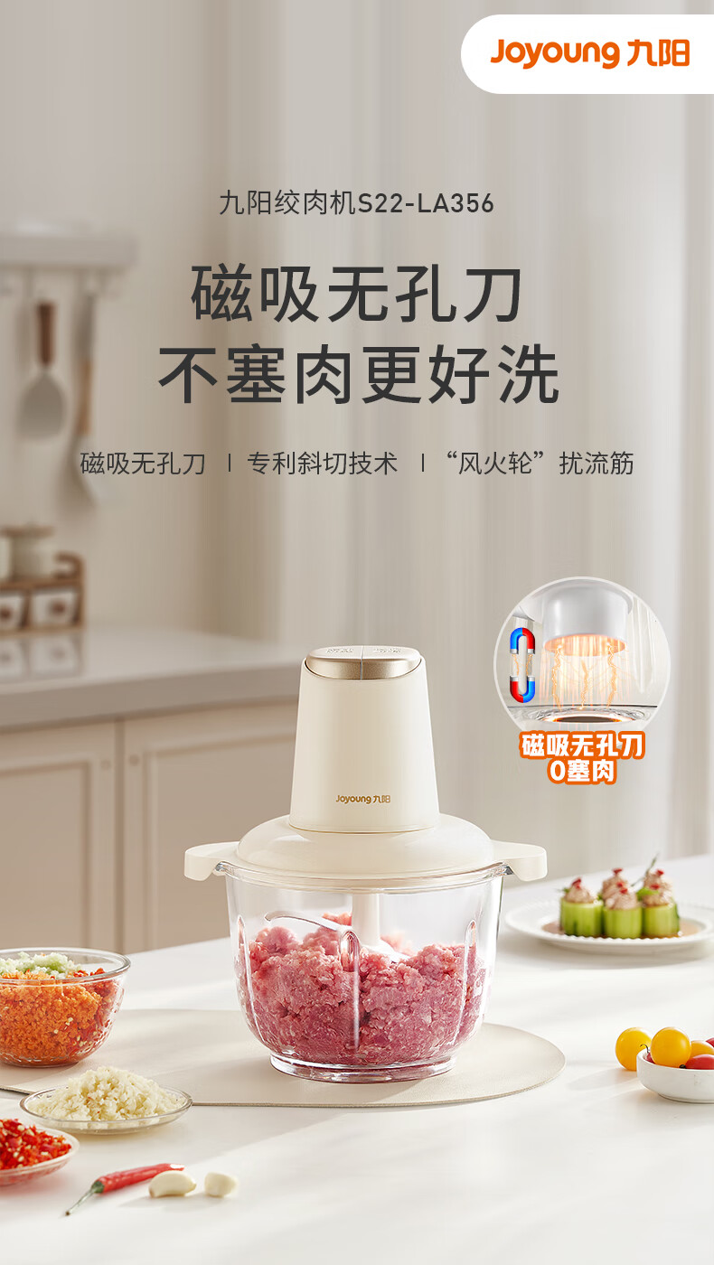 九阳(Joyoung)【政府补贴】绞肉机家用绞馅机碎肉机电动多功能料理搅拌打肉馅蒜蓉机不锈钢磁吸无孔搅肉机LA356