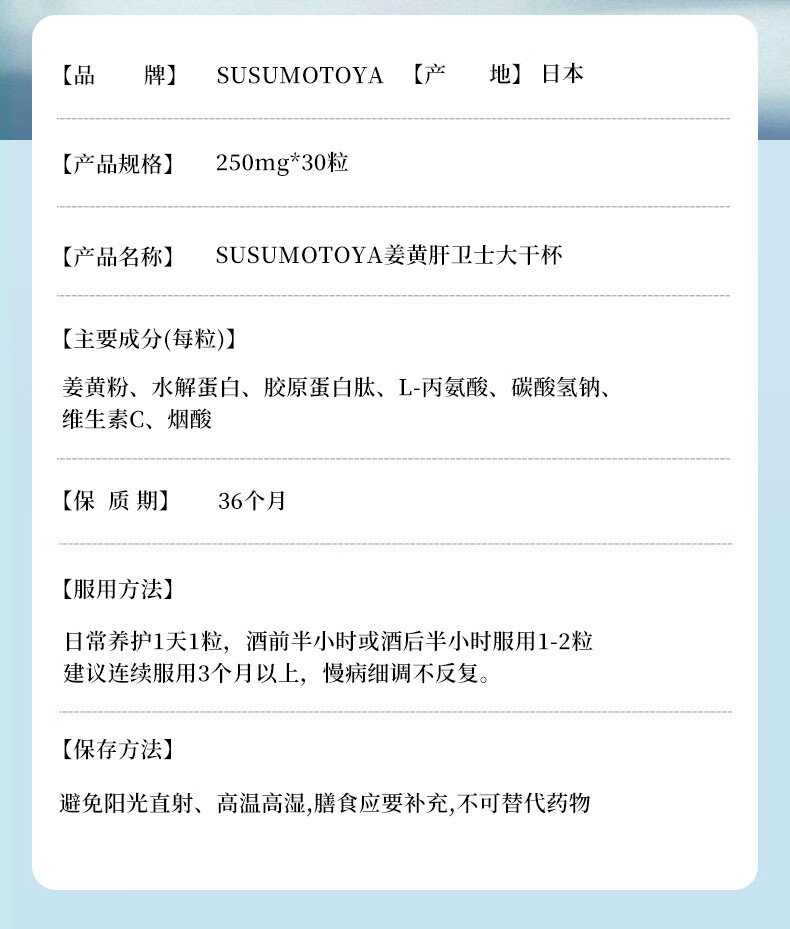 SUSUMOTOYA姜黄肝卫士大干杯 单瓶装 30粒/瓶