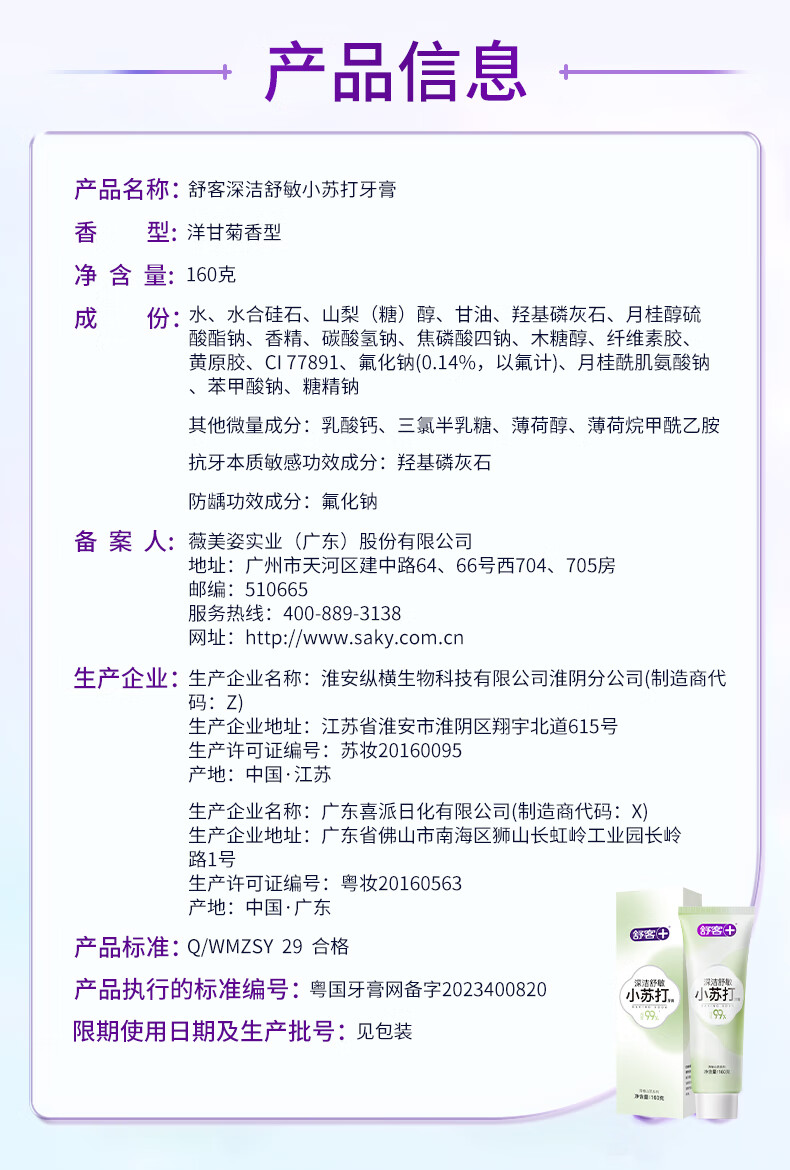 舒客牙膏小苏打美白牙膏祛黄亮白含氟口气清新美白实惠装 小苏打炫白160g+抗敏20g