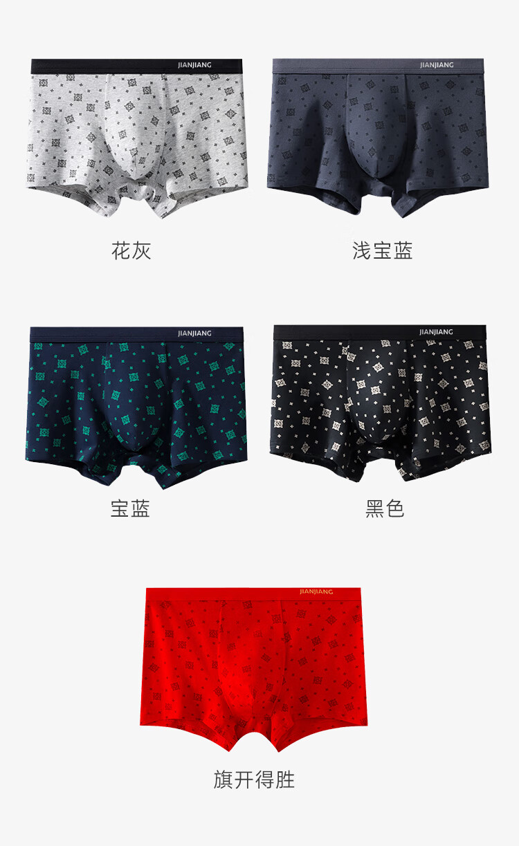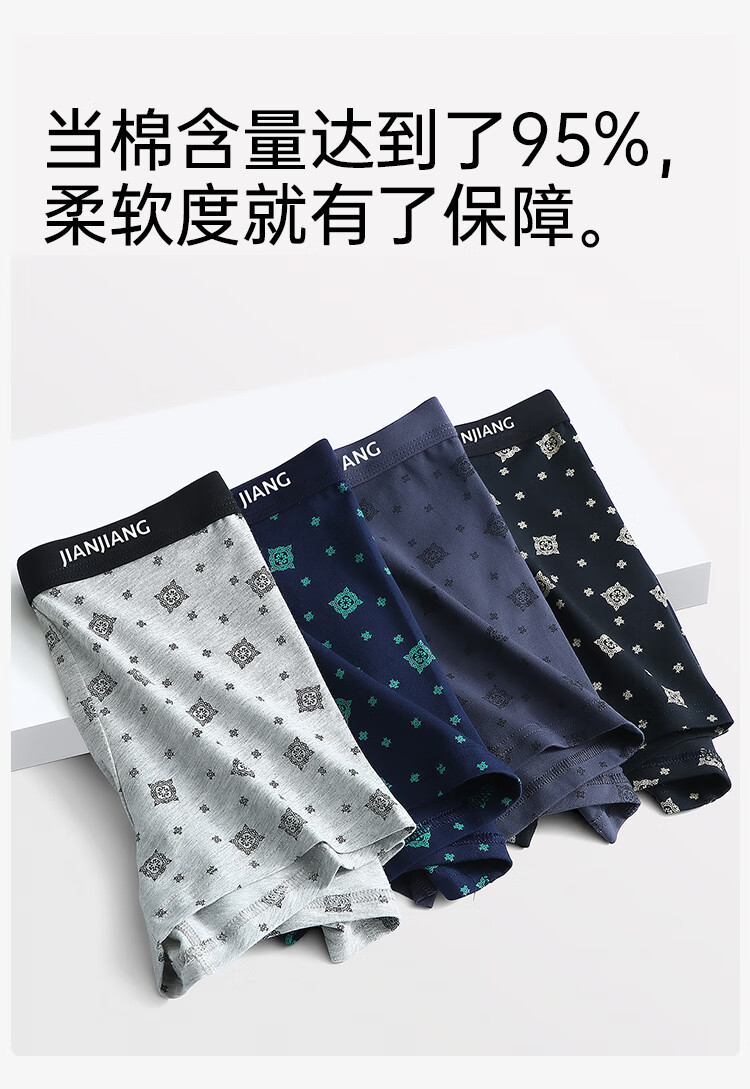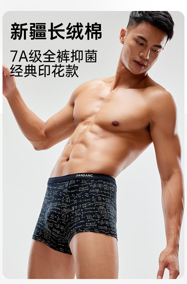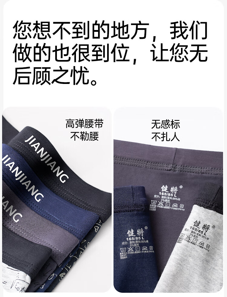 健将男士内裤男新疆长绒弹力棉平角裤7A抗菌四角裤头中腰4条装