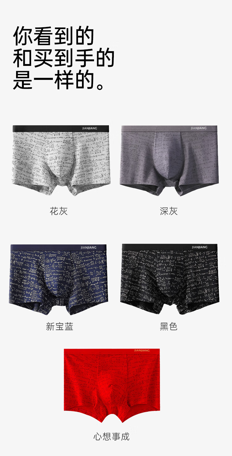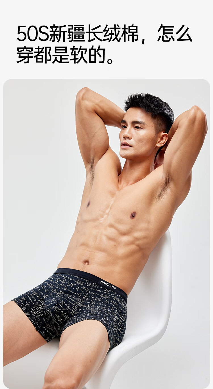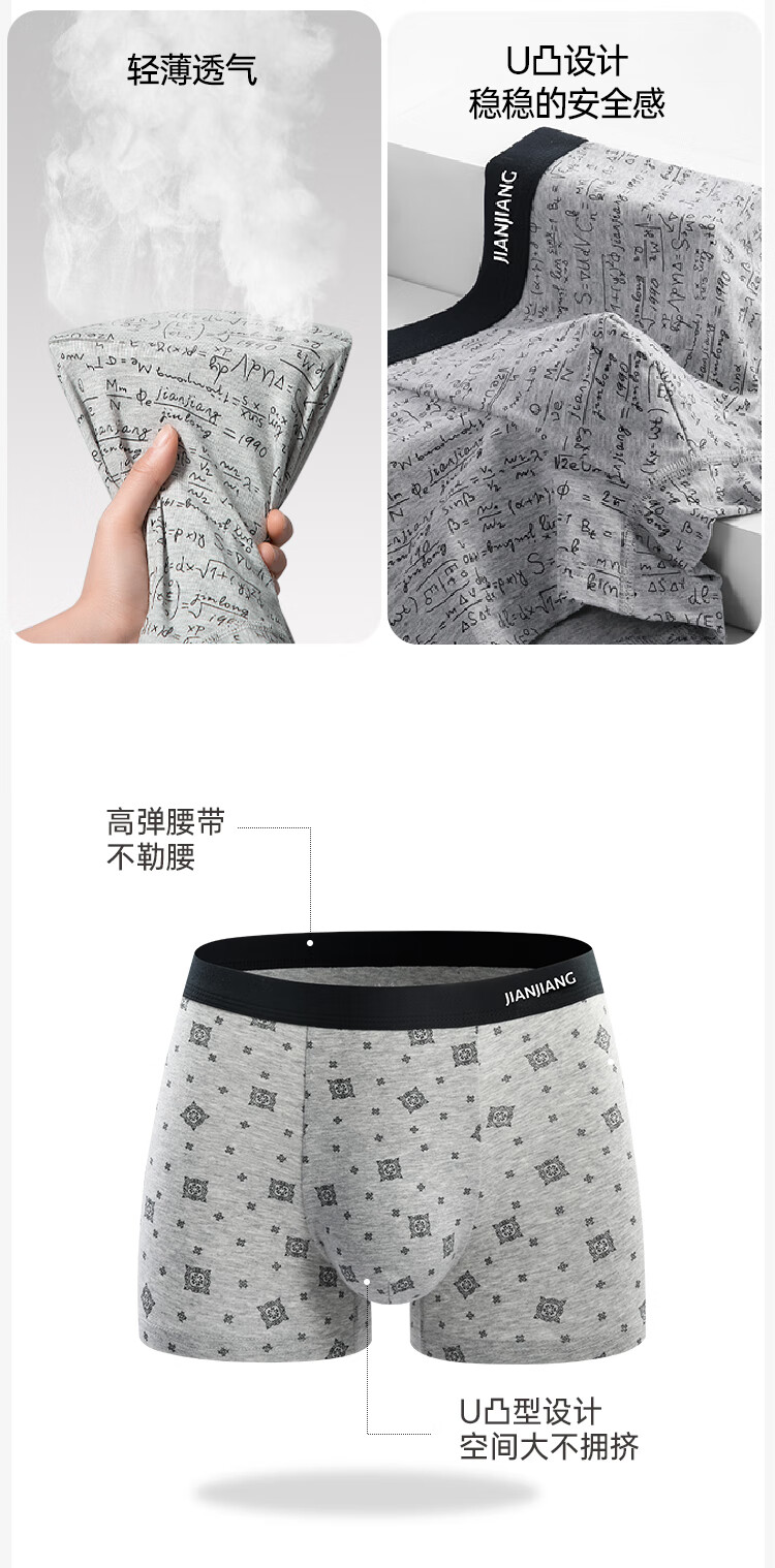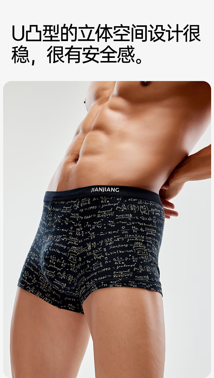 健将男士内裤男新疆长绒弹力棉平角裤7A抗菌四角裤头中腰4条装