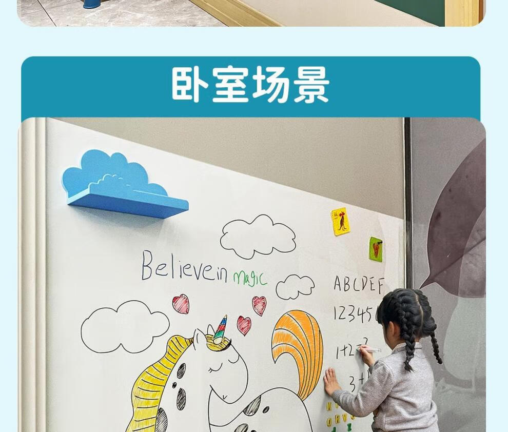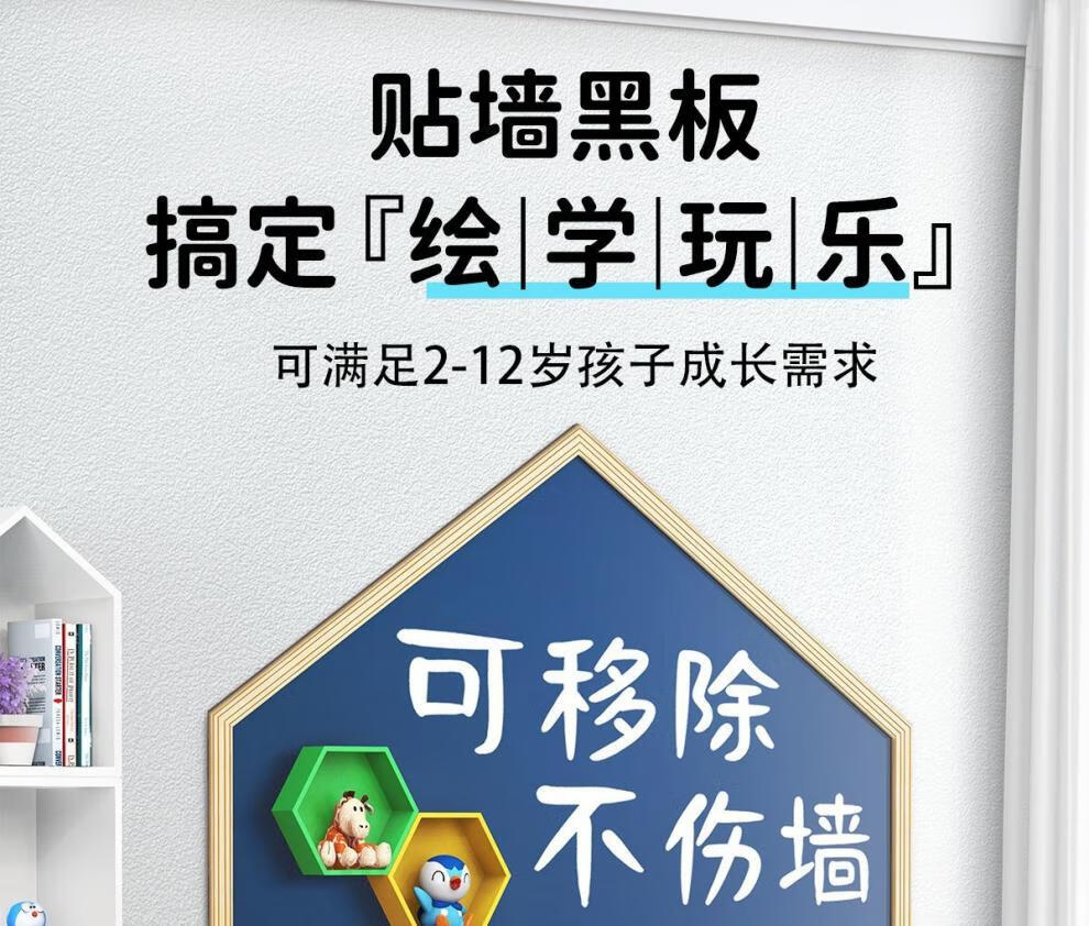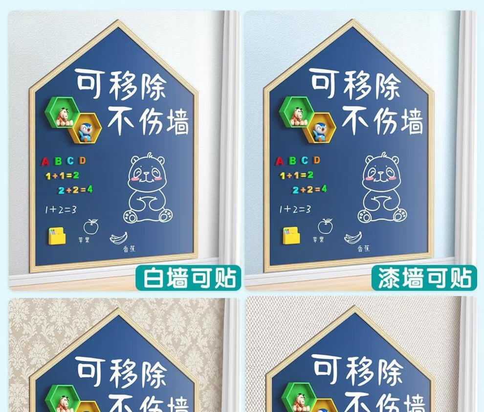 脘铼磁吸黑板墙贴可擦写涂鸦墙粉笔字练习板儿童写字板家用 【黛灰房子】宝宝墙贴-0甲醛+ 50*60cM【绘画套餐】磁吸玩具