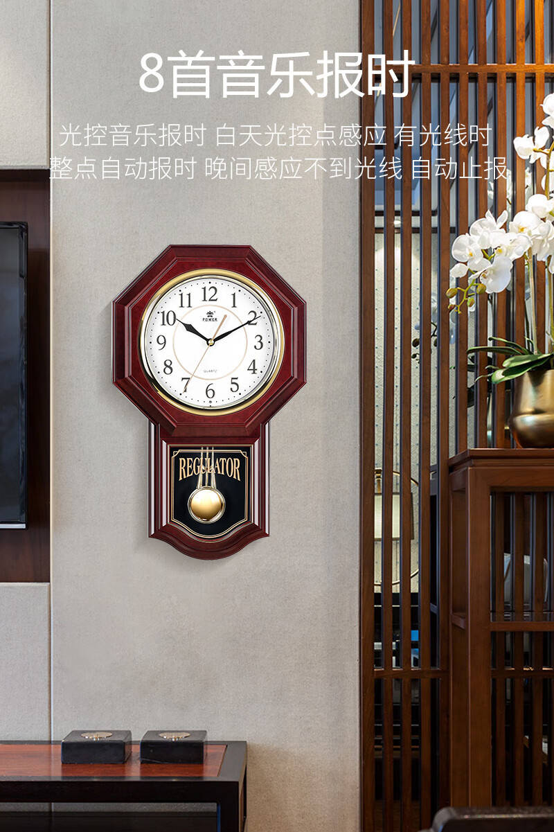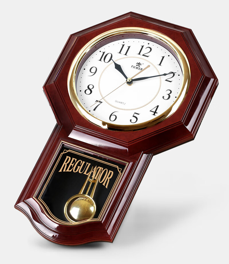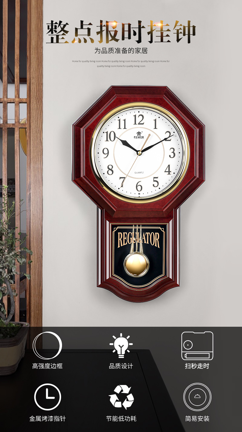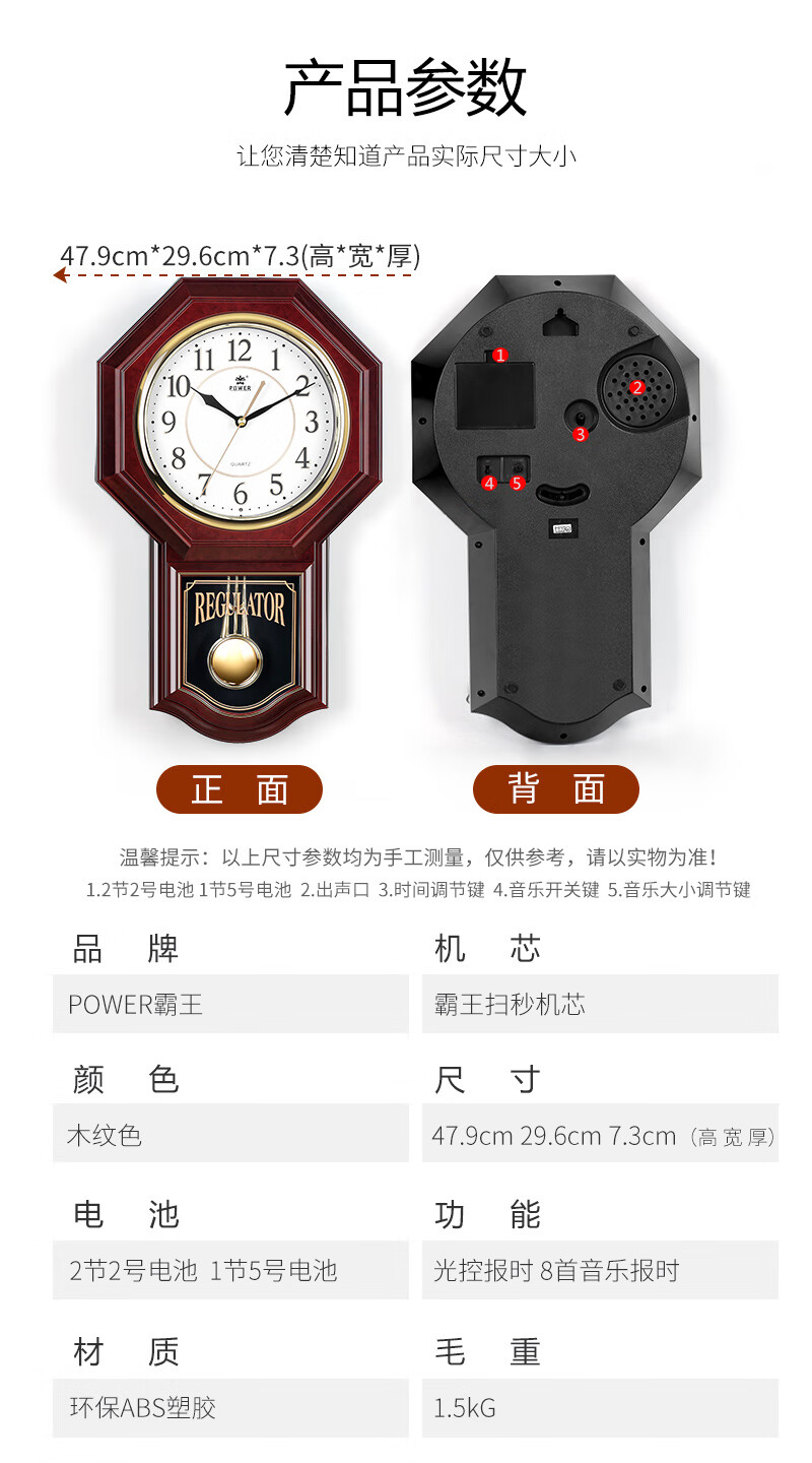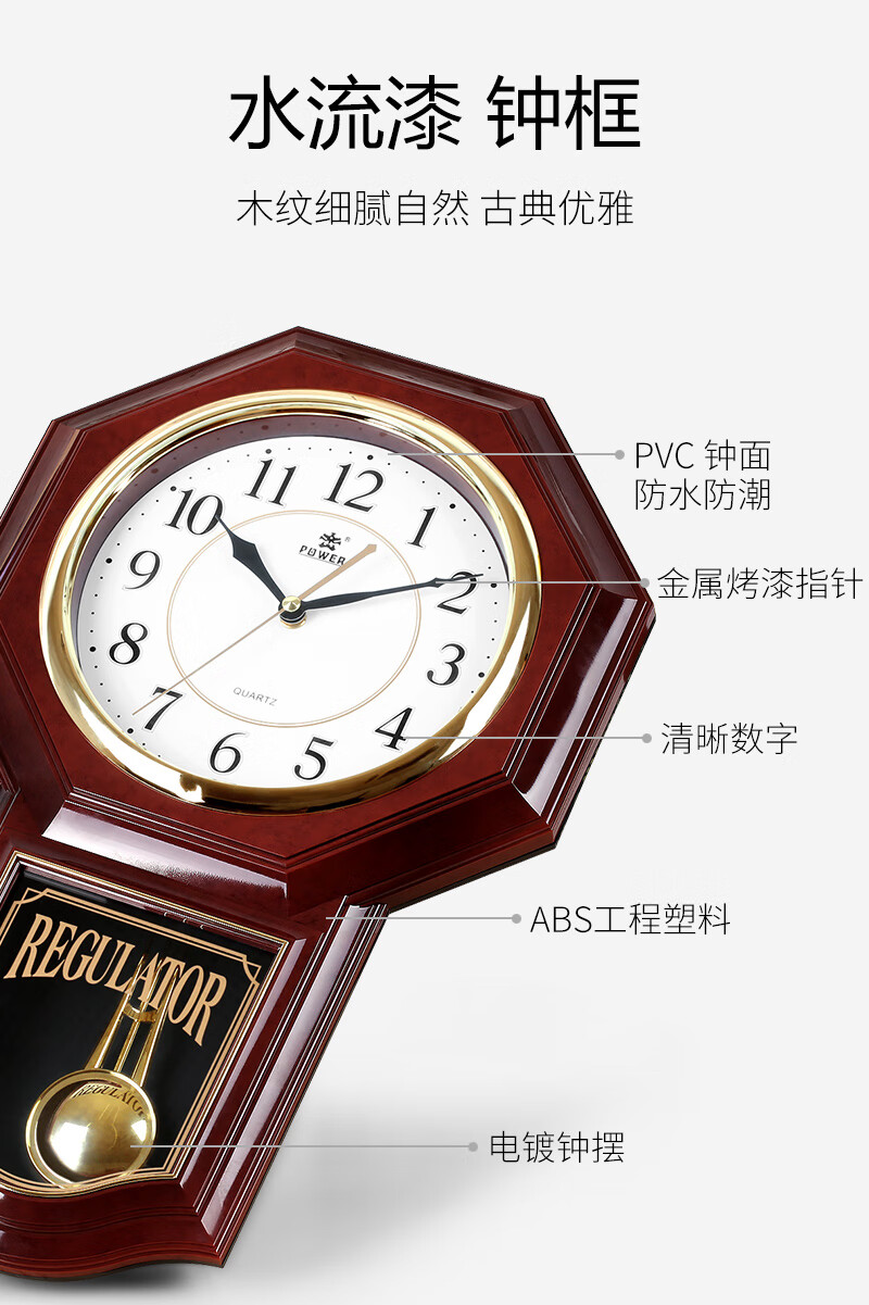 POWER霸王挂钟表摆钟客厅时钟长48cm八卦钟整点报时音乐PW6119