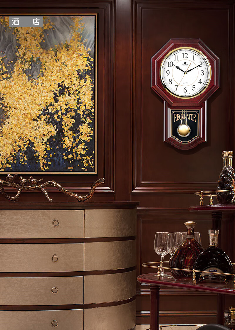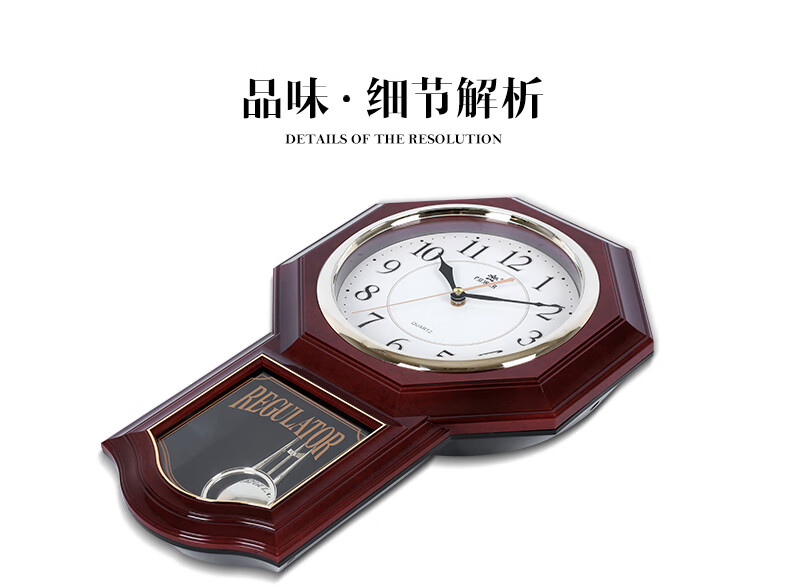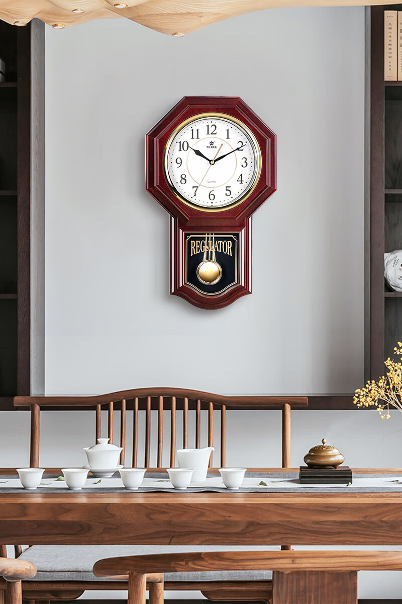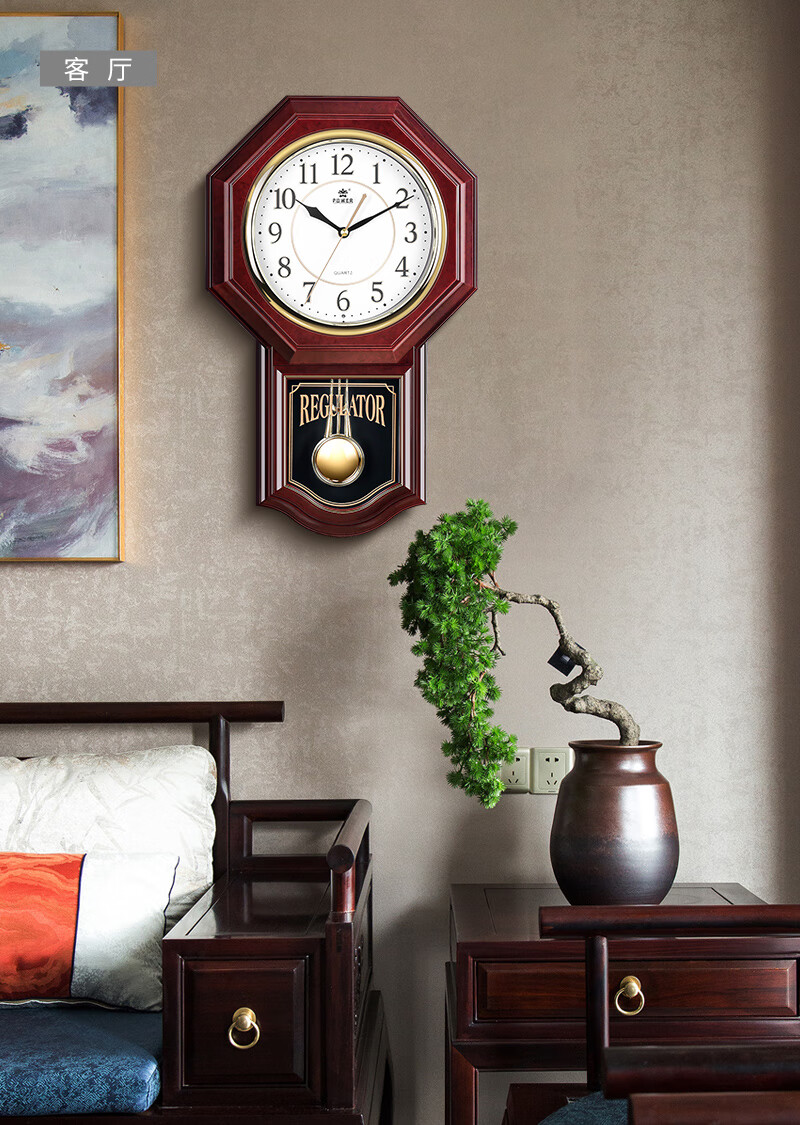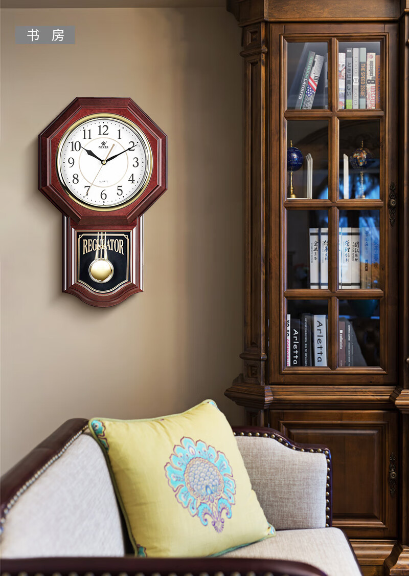 POWER霸王挂钟表摆钟客厅时钟长48cm八卦钟整点报时音乐PW6119