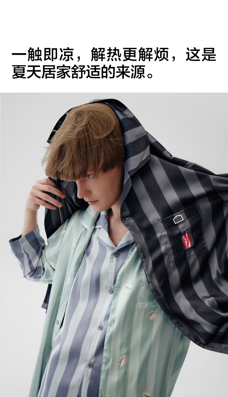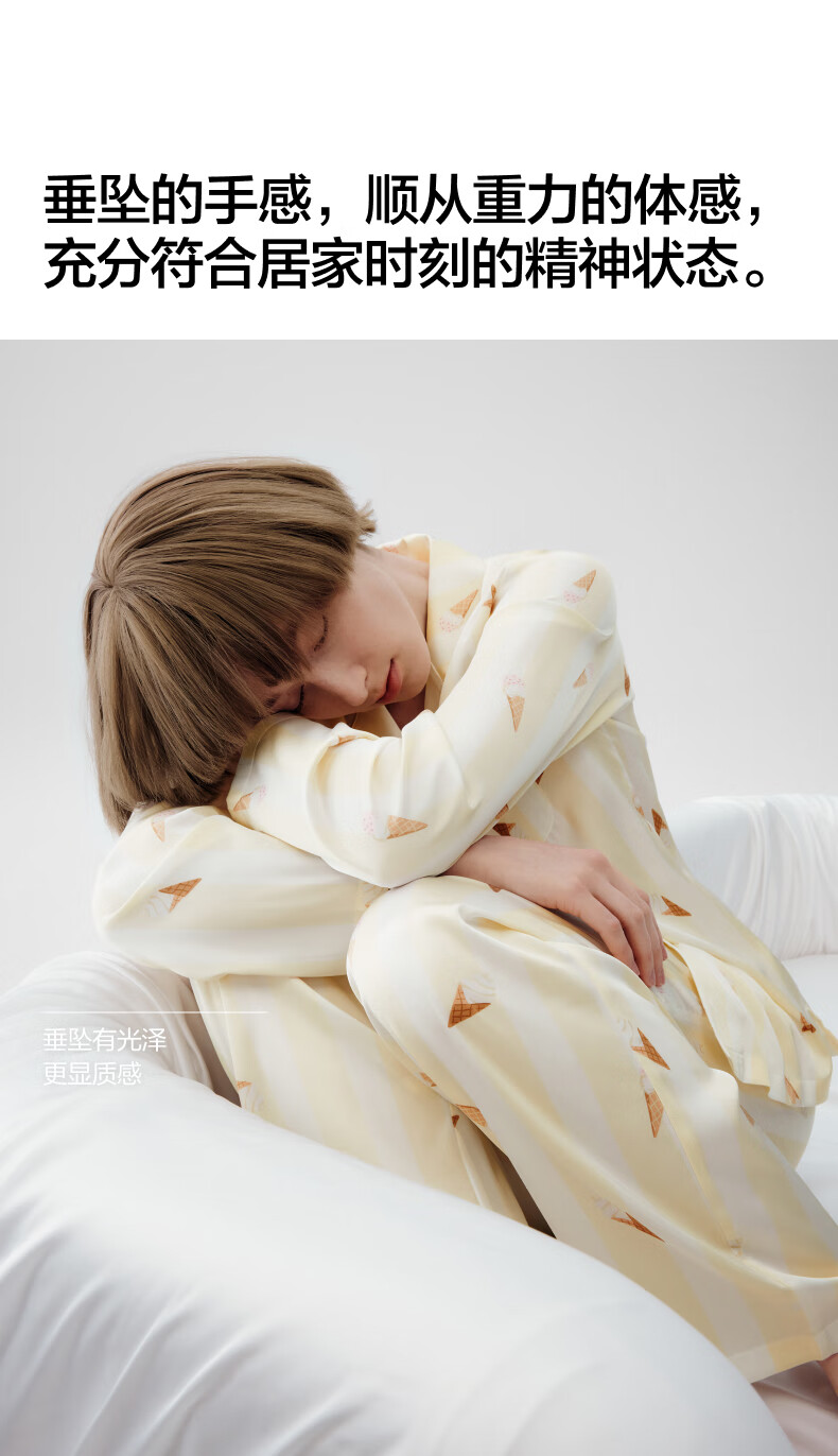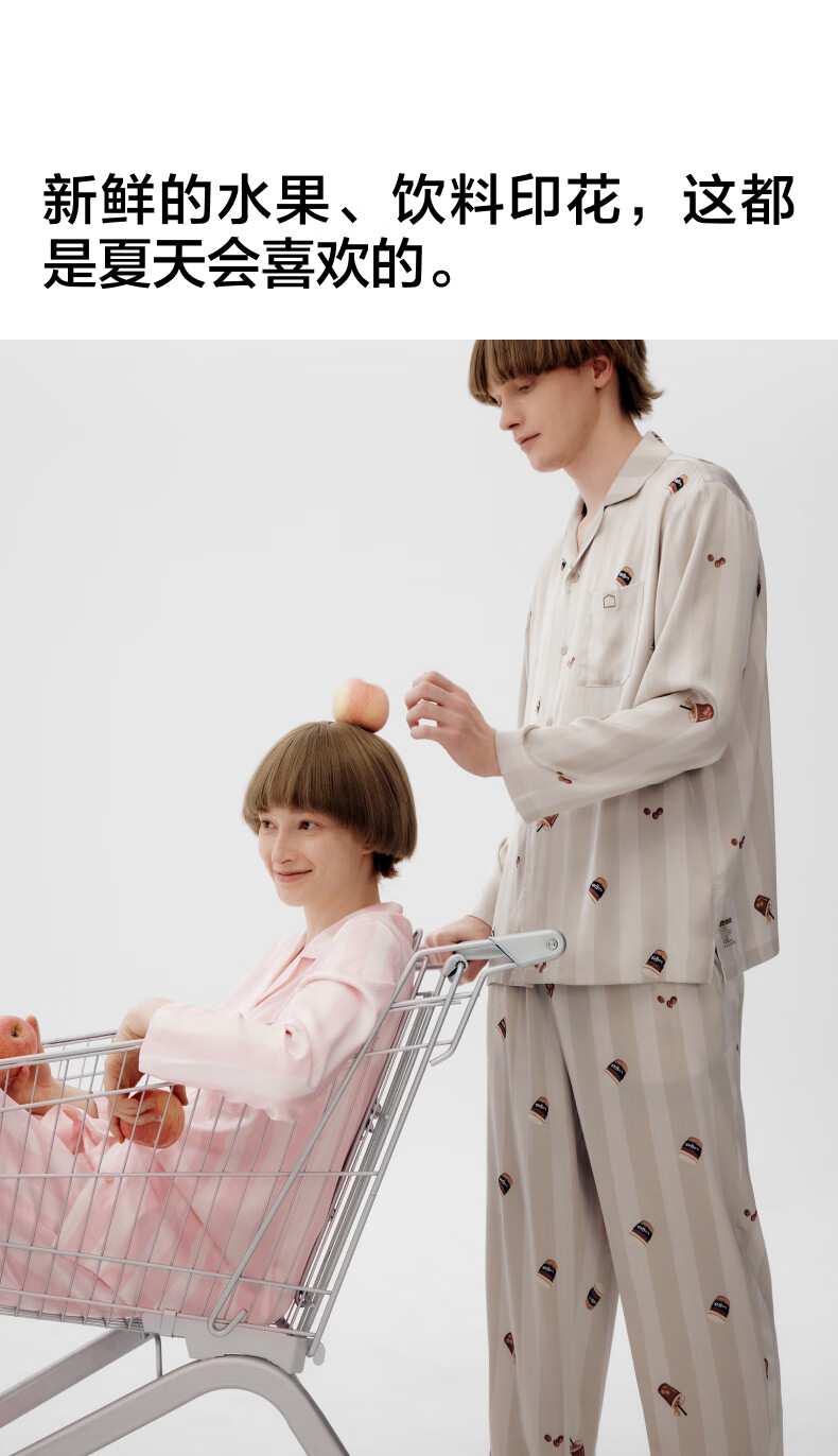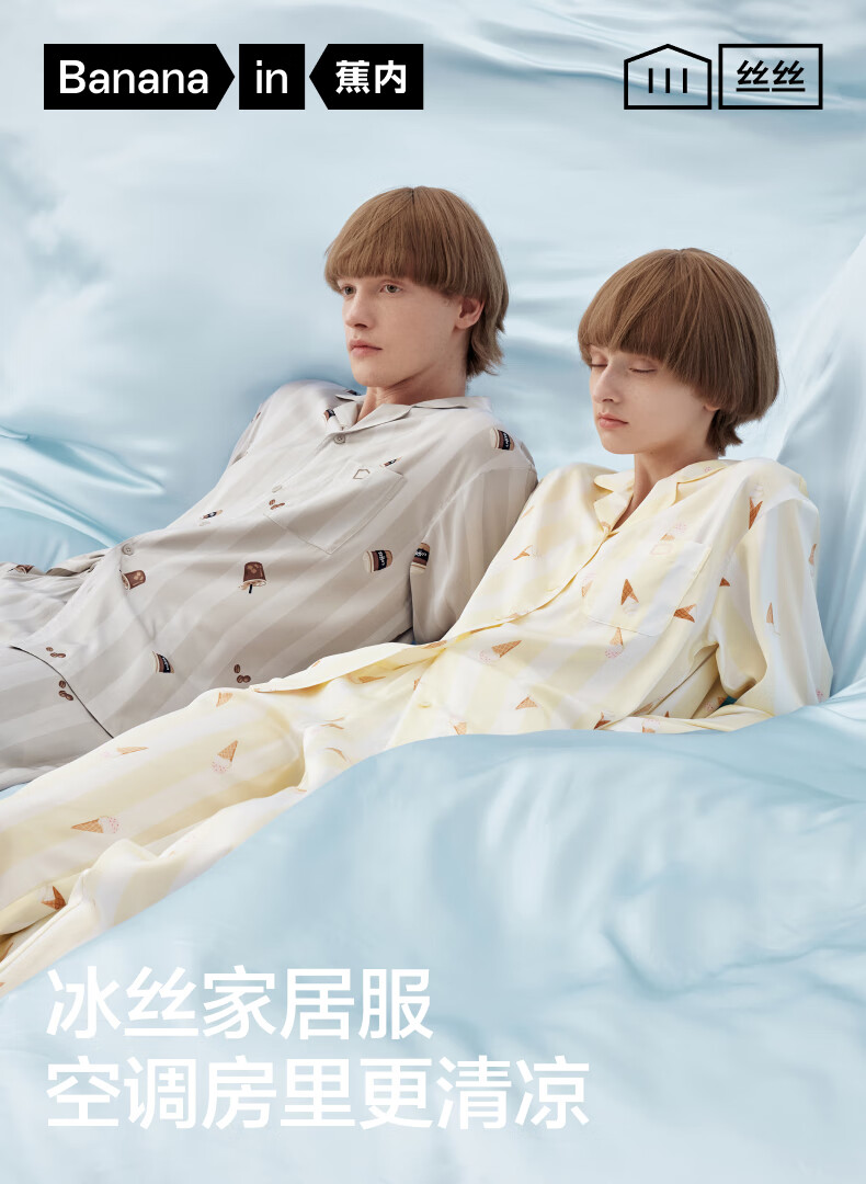 蕉内520H超级市场男女士睡衣缎面长袖长裤冰丝凉感情侣家居服春夏季新 【女士】果绿条纹—苹果 M