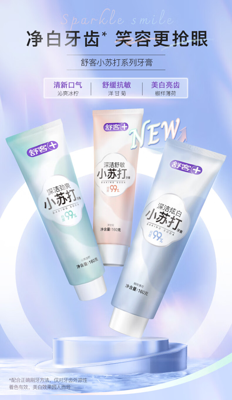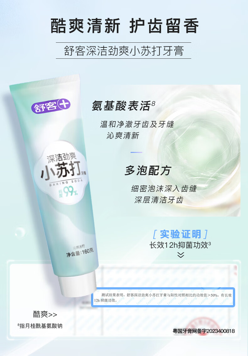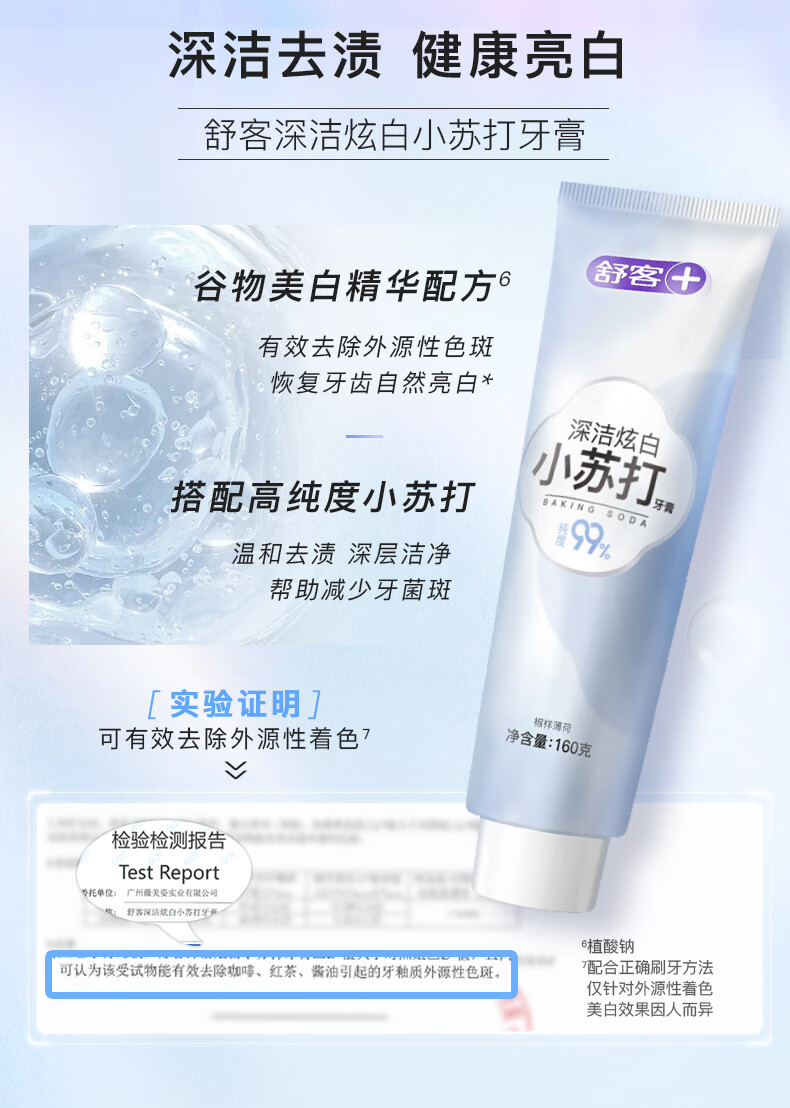 舒客牙膏小苏打美白牙膏祛黄亮白含氟口气清新美白实惠装 小苏打炫白160g+抗敏20g