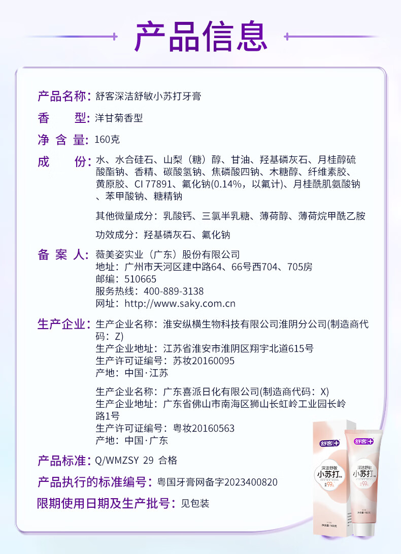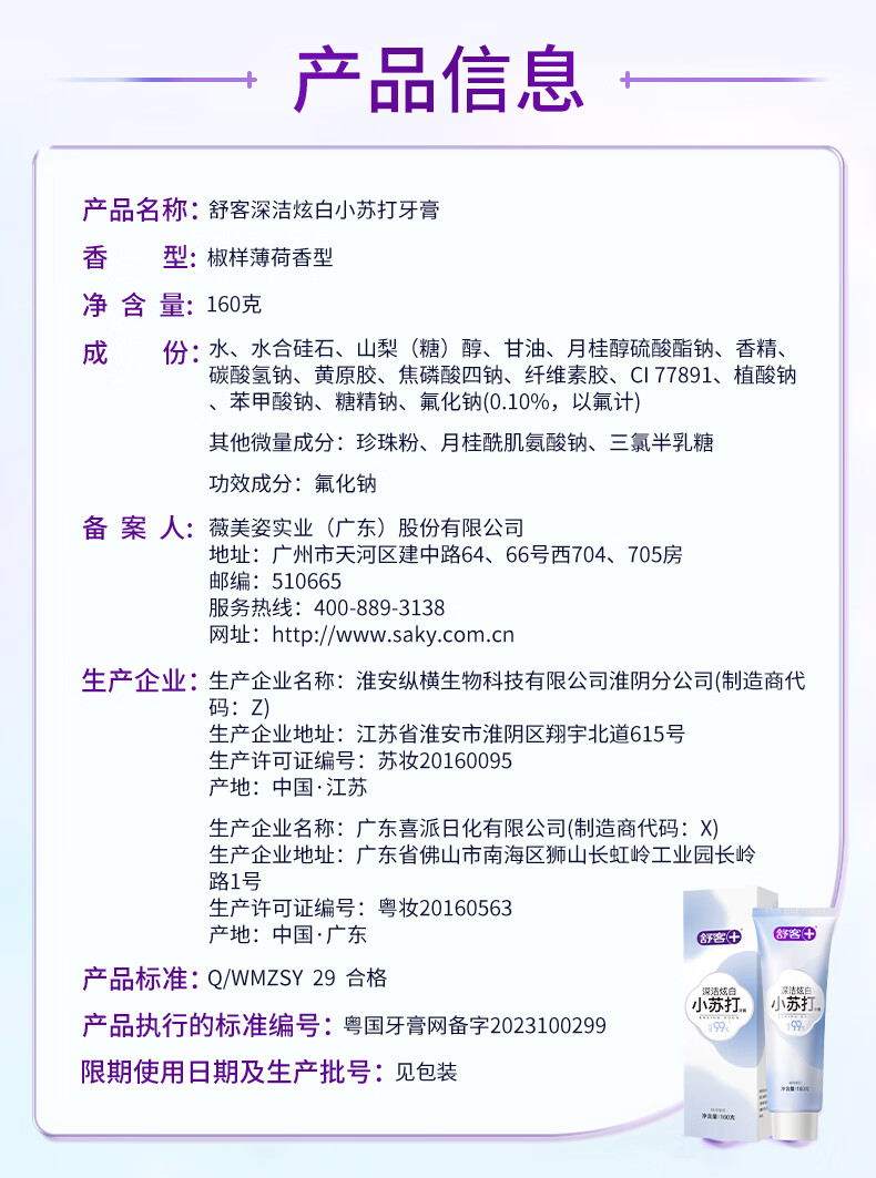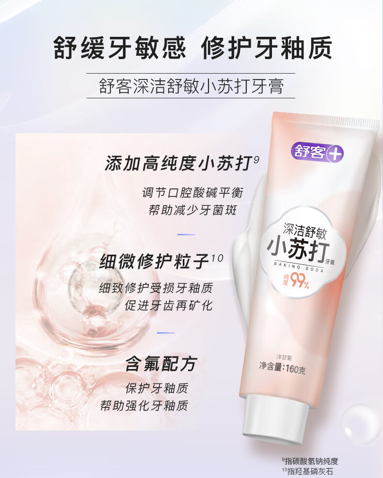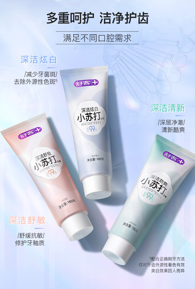 舒客牙膏小苏打美白牙膏祛黄亮白含氟口气清新美白实惠装 小苏打炫白160g+抗敏20g