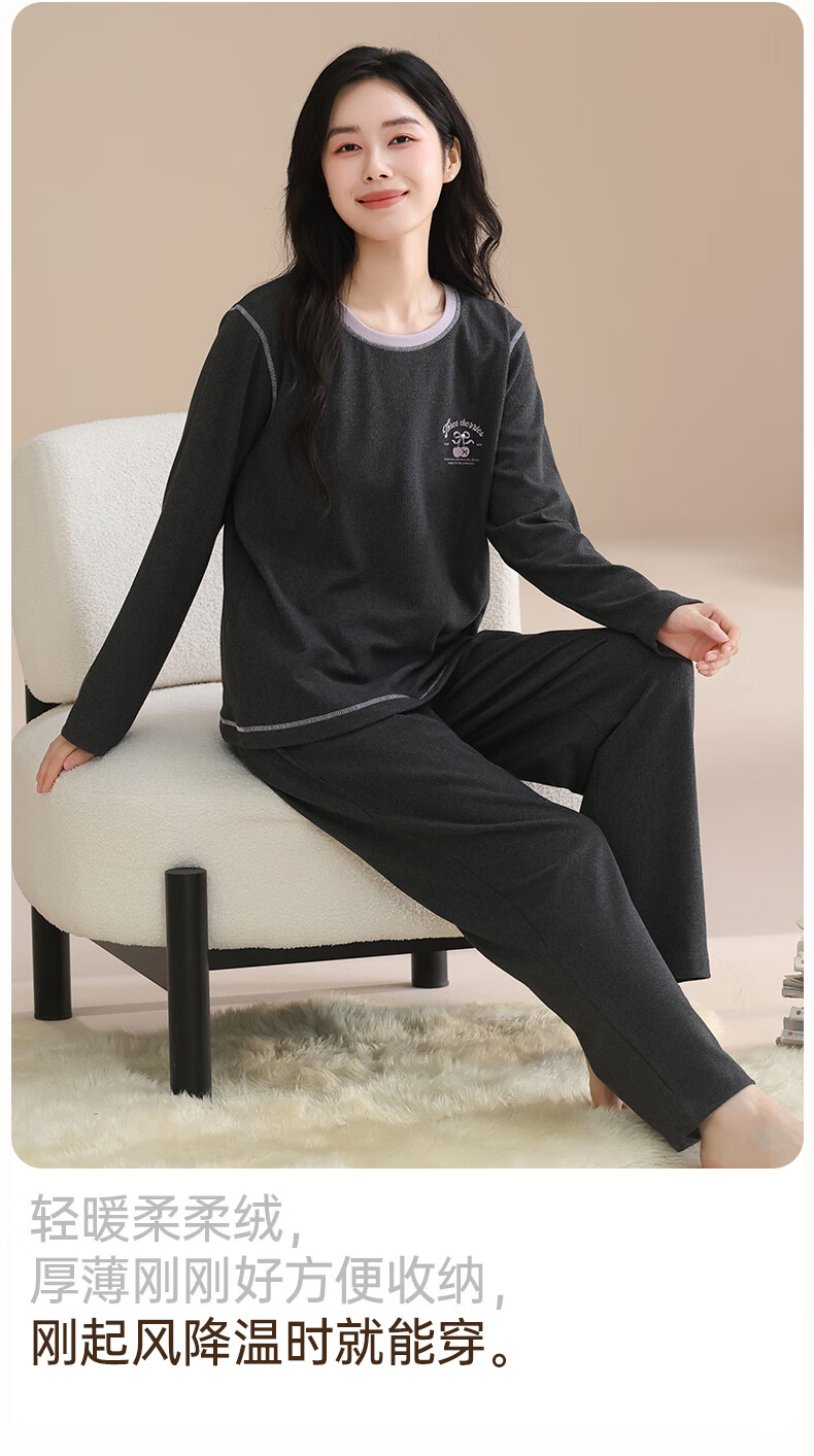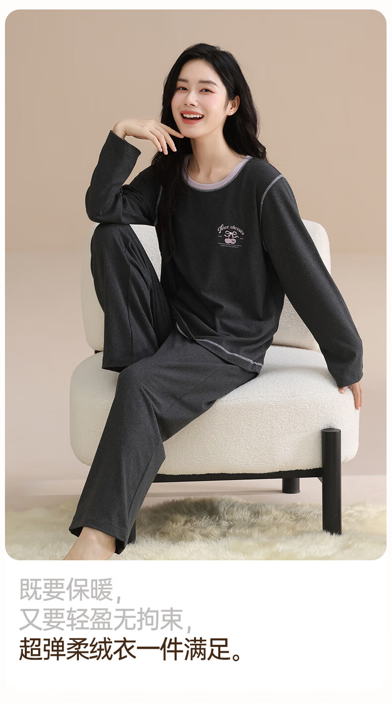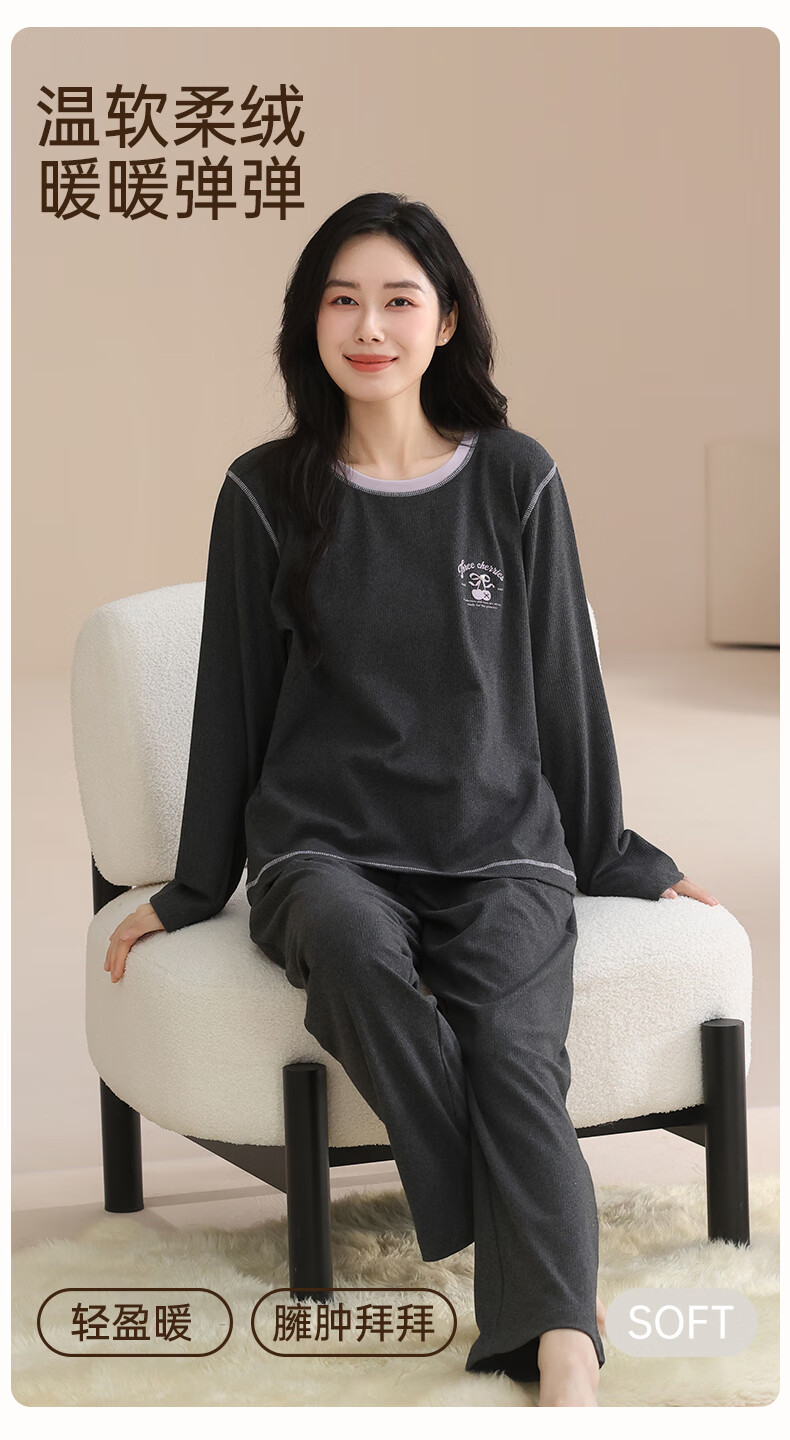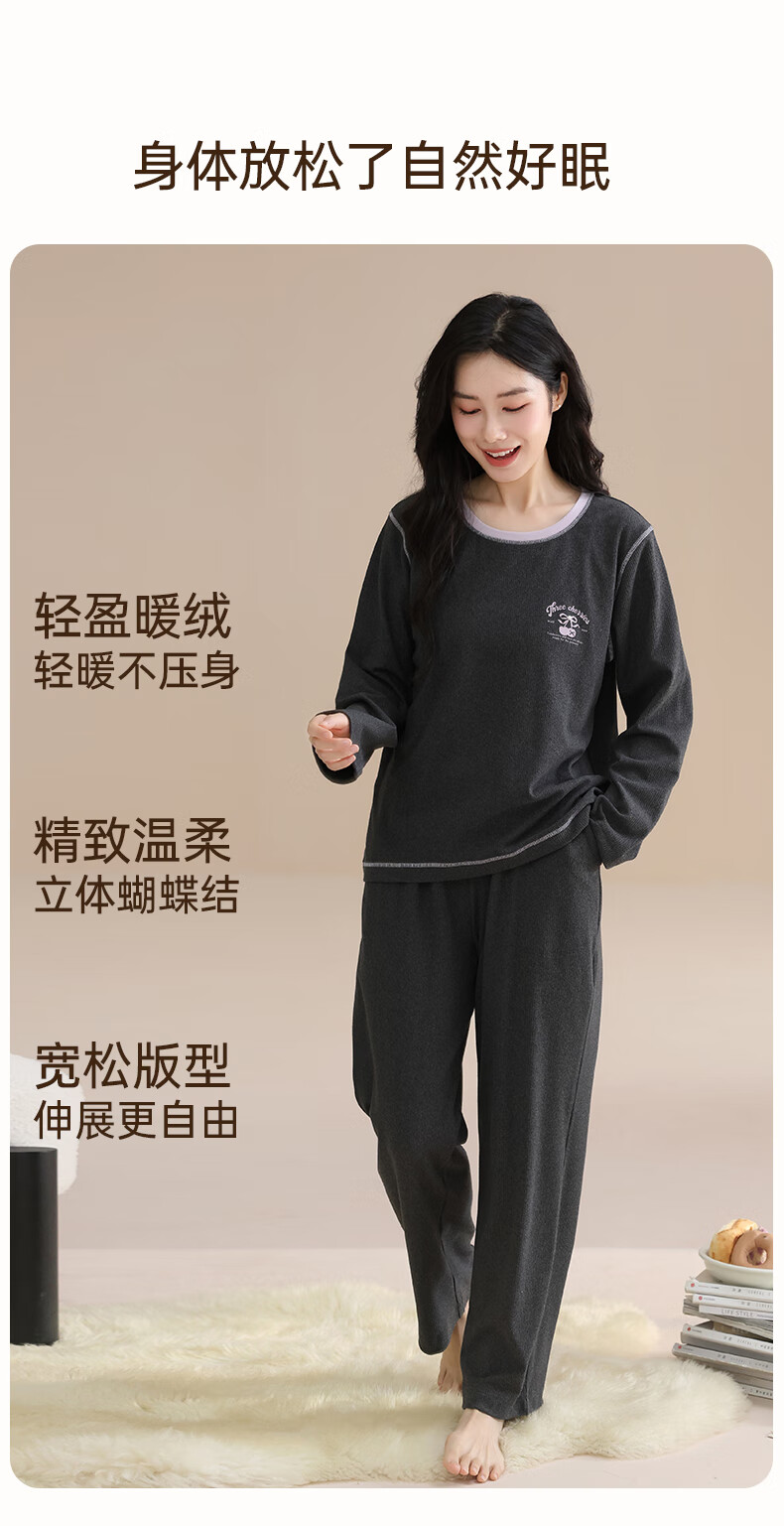 玛伦萨睡衣女春秋冬季可外穿2025新款保暖加绒长袖长裤女士家居服 深灰 M