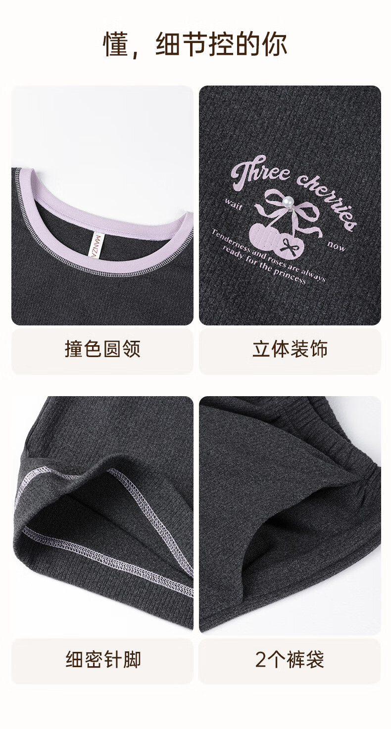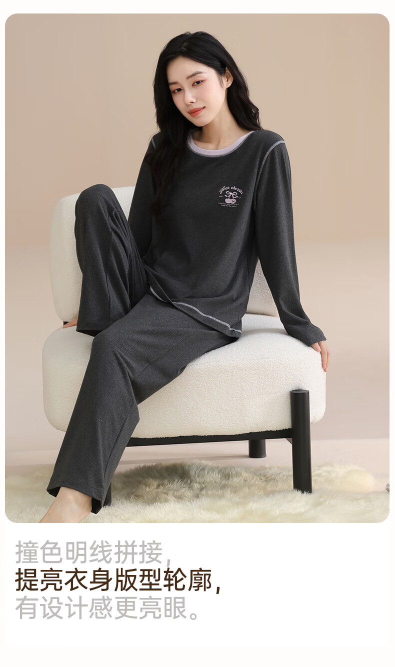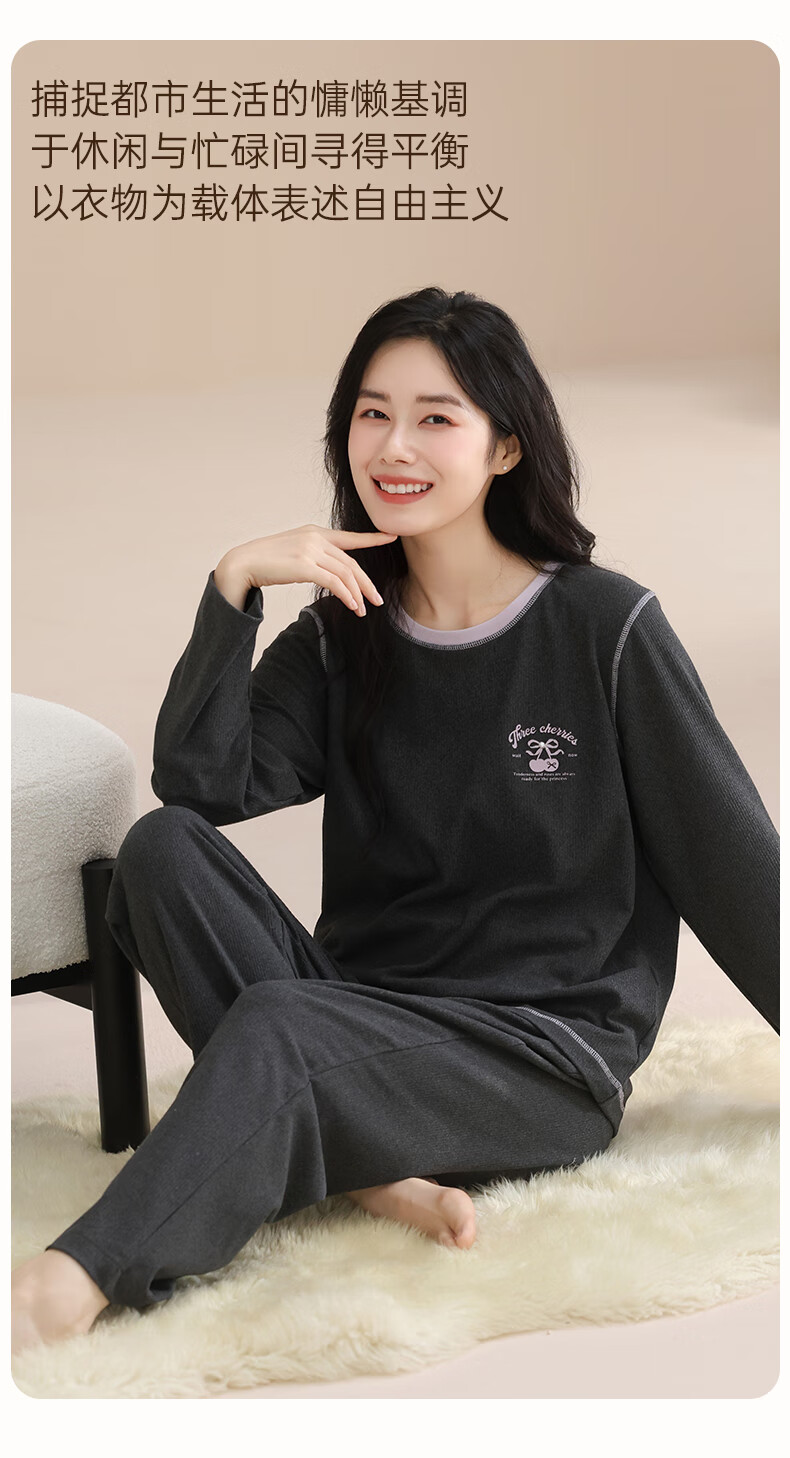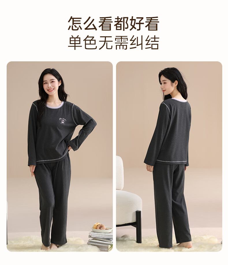 玛伦萨睡衣女春秋冬季可外穿2025新款保暖加绒长袖长裤女士家居服 深灰 M