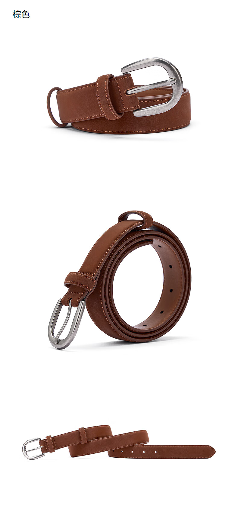 热风【商场同款】女士皮带2025年秋新款美拉德风可调节腰带针扣皮带 02棕色 105cm