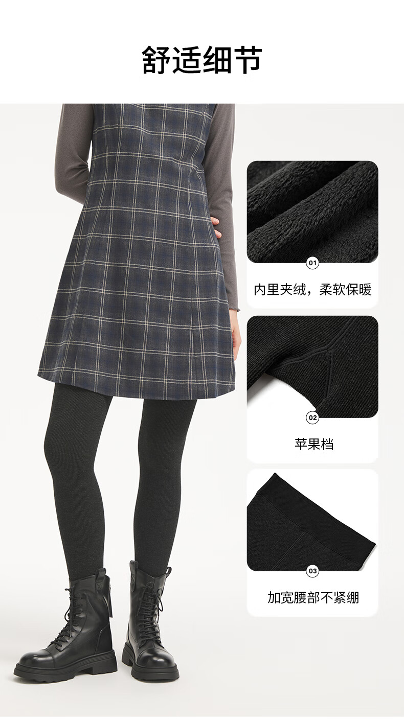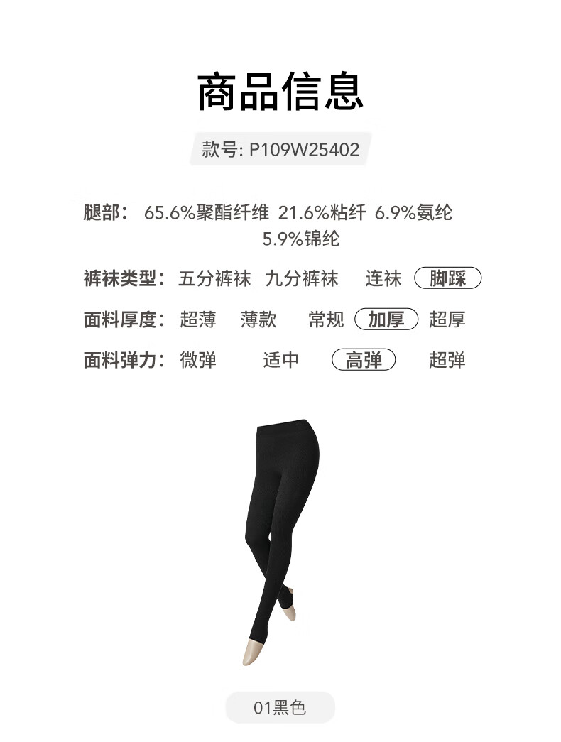 热风【商场同款】女士踩脚打底裤2025年冬季新款500D竖条微压加绒裤袜 01黑色 1双 均码