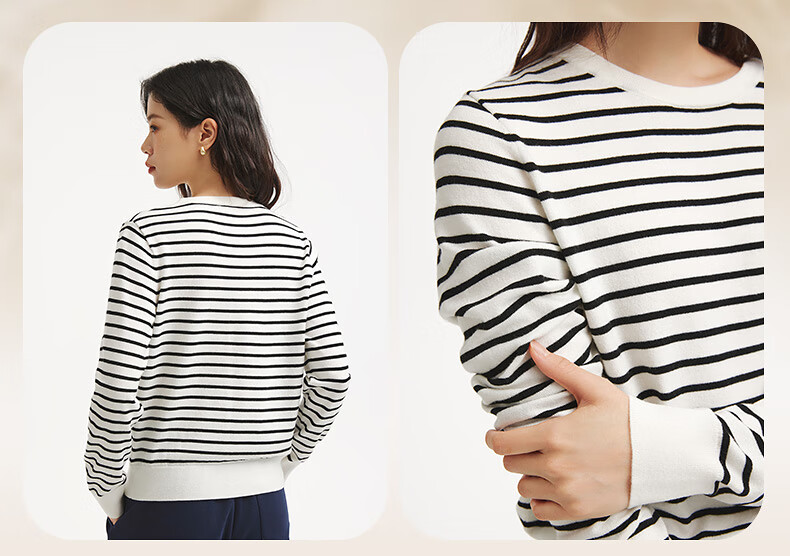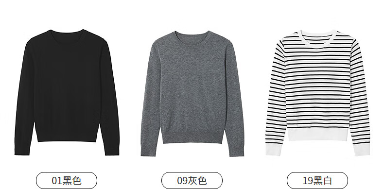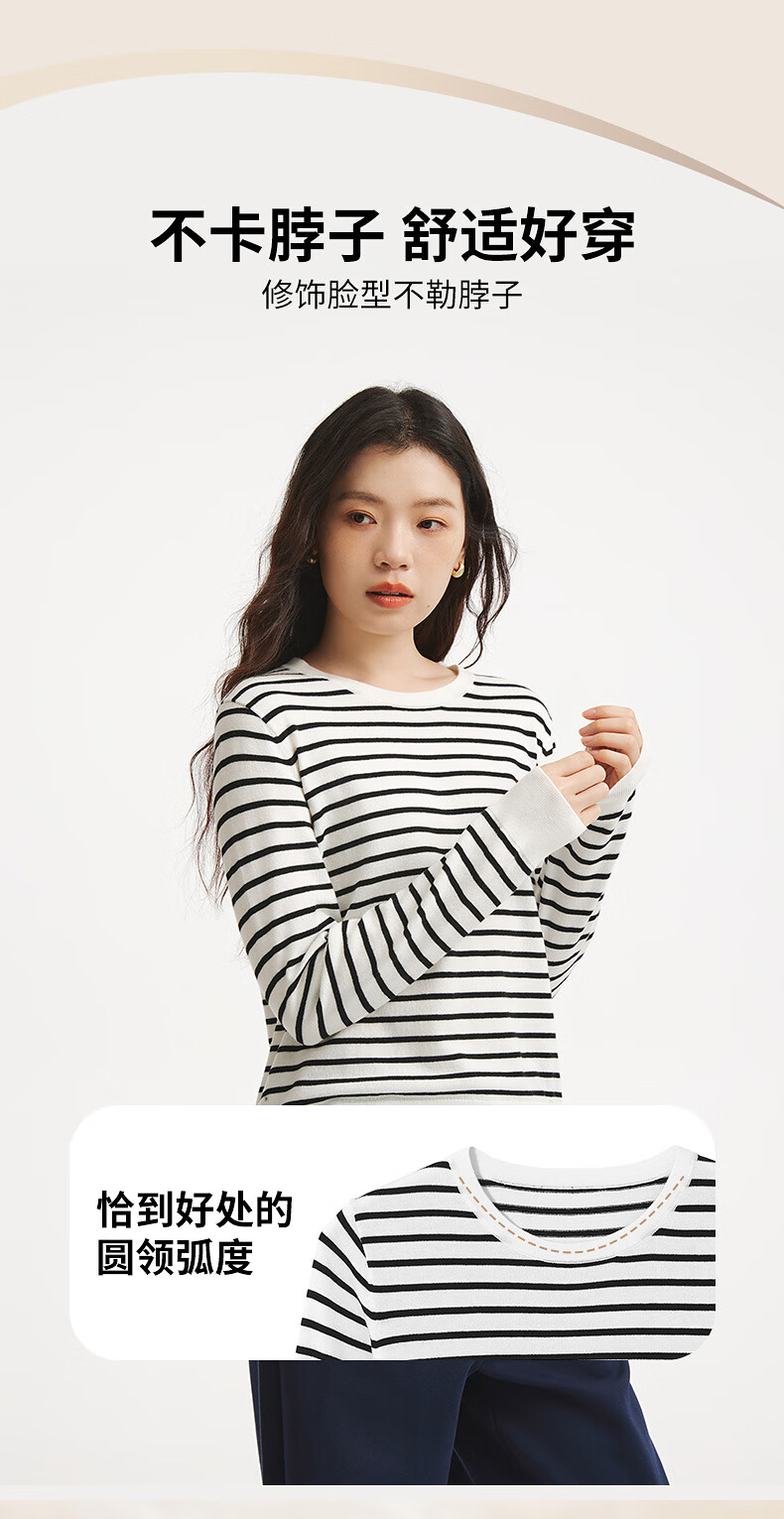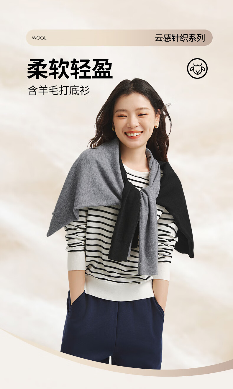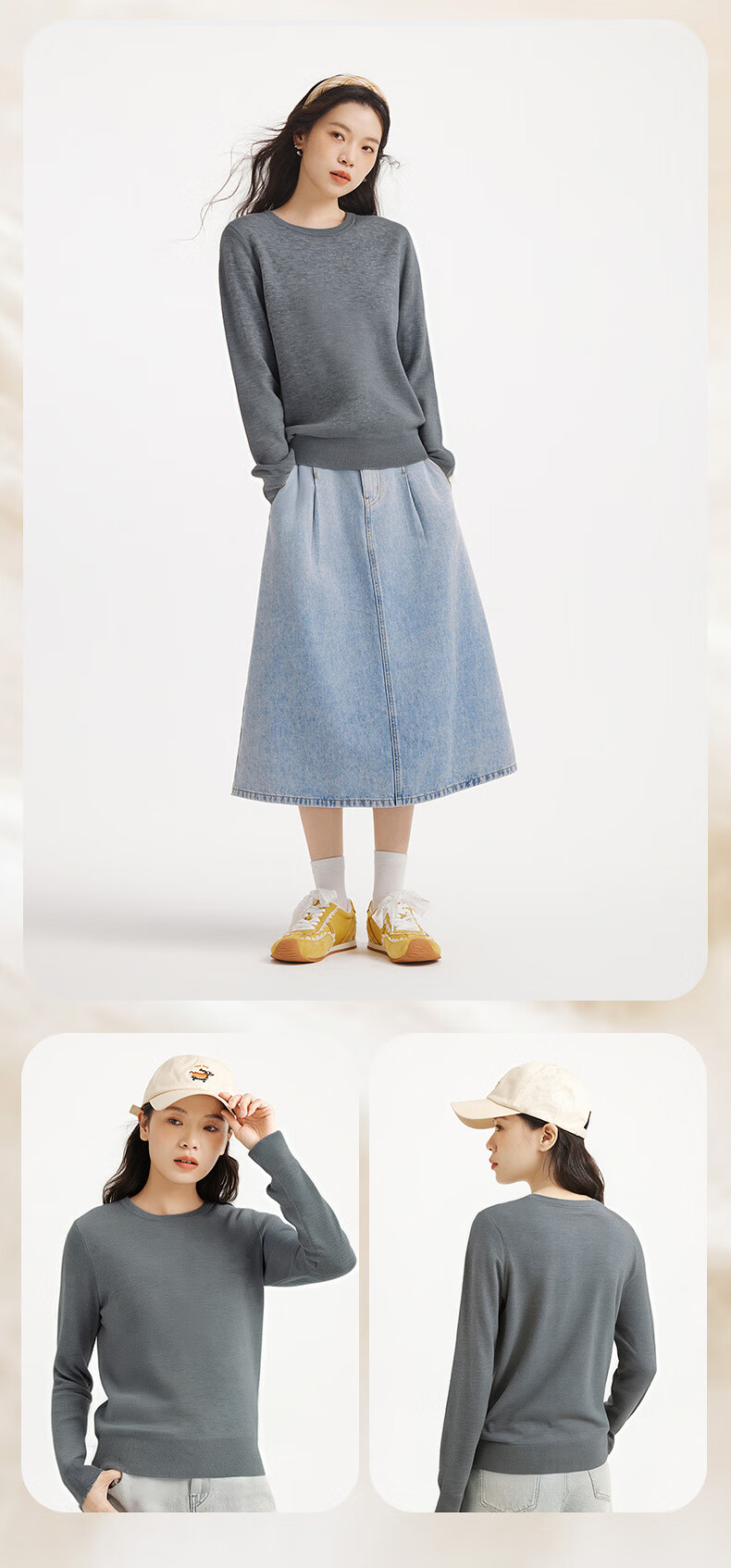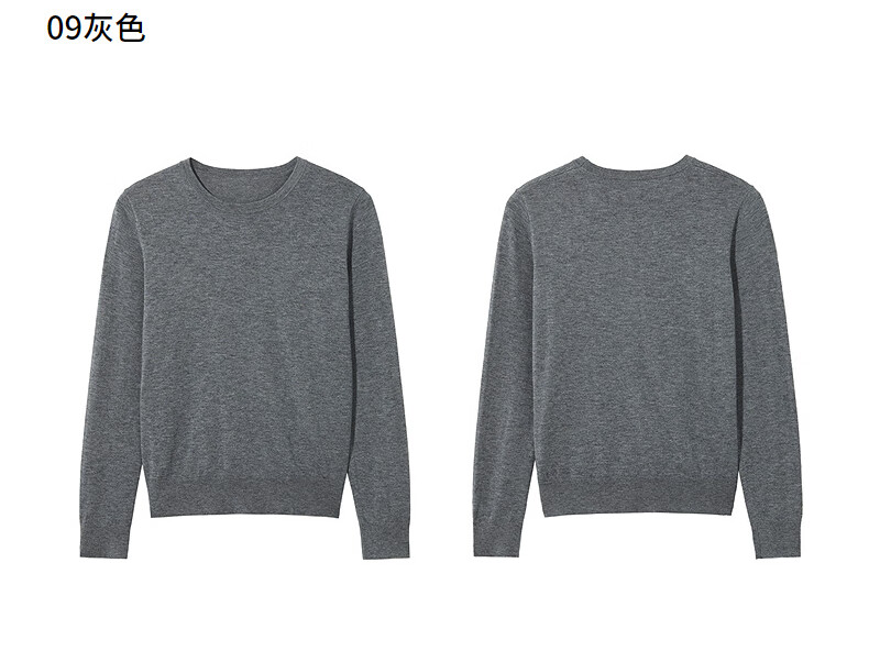 热风女士打底衫毛衣2025年冬季新款圆领条纹宽松内搭针织衫毛衣 09灰色 M