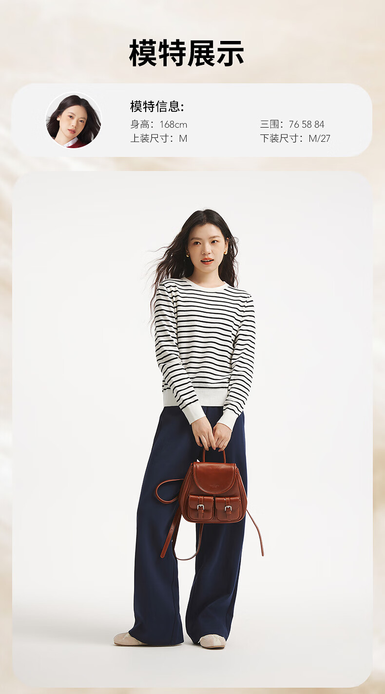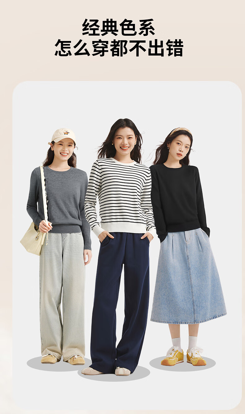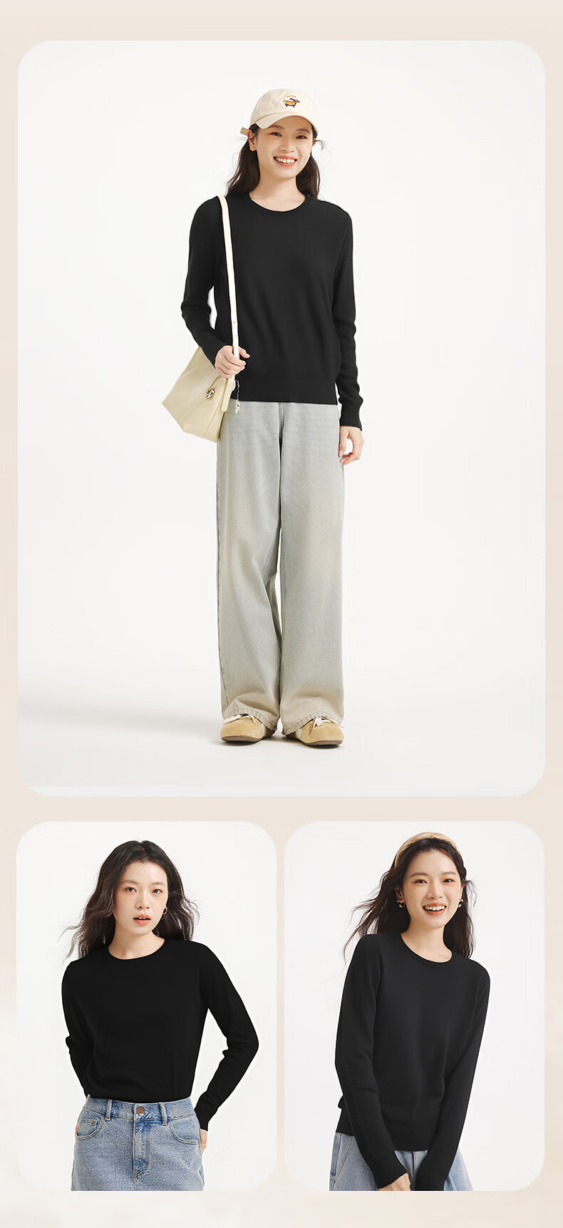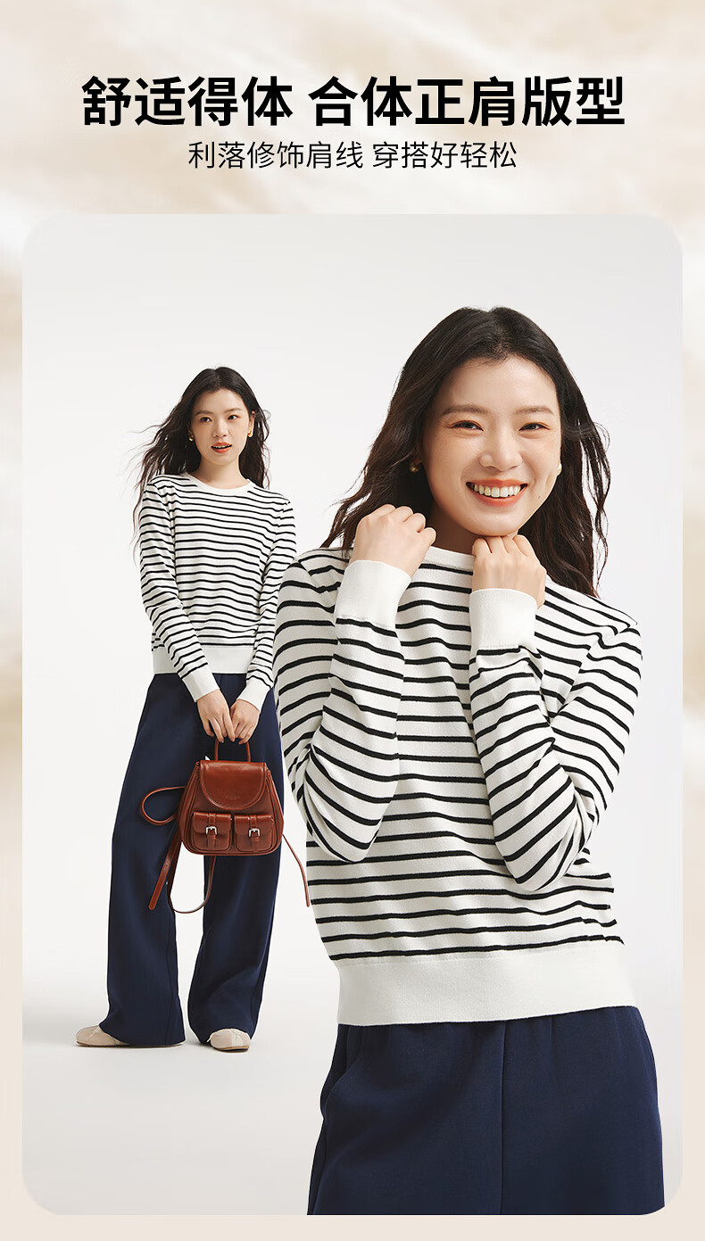 热风女士打底衫毛衣2025年冬季新款圆领条纹宽松内搭针织衫毛衣 09灰色 M