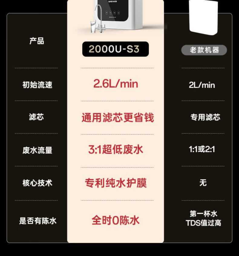 世韩(SAEHAN)S3【3:1微废水纯水护膜】家用净水器厨房直饮100G纯水机厨下通用滤芯自来水过滤器RO反渗透净饮机 单出水3:1微废水【直饮水】