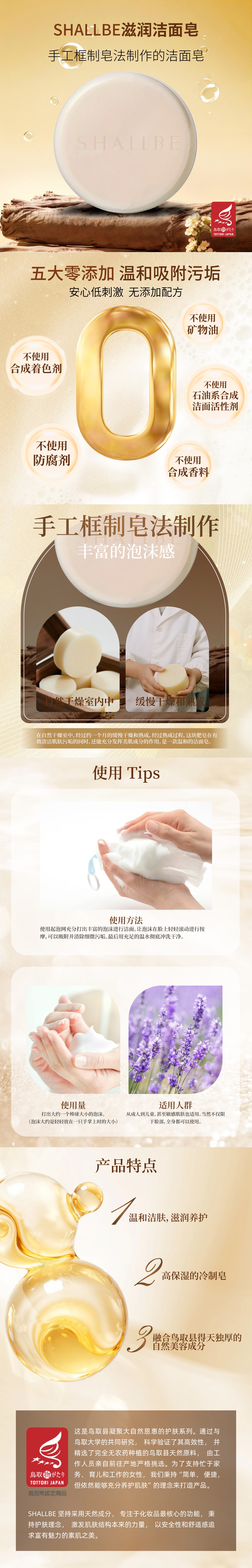 SHALLBE滋润洁面皂80g 日本进口天然手工洁面皂 深层水润洁面 敏感肌可用