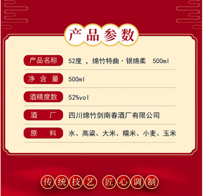 剑南春绵竹特曲 银绵柔 浓香型52度500ml*6瓶 整箱装 自饮宴请送礼佳品 52%vol 500mL 6瓶 剑南春绵竹特曲 银绵柔