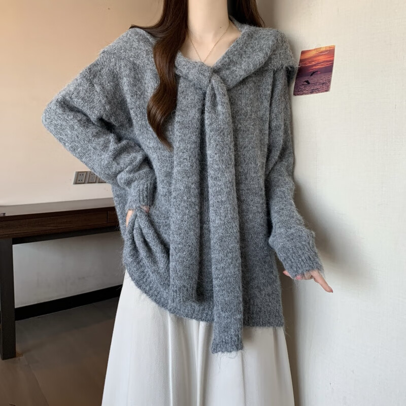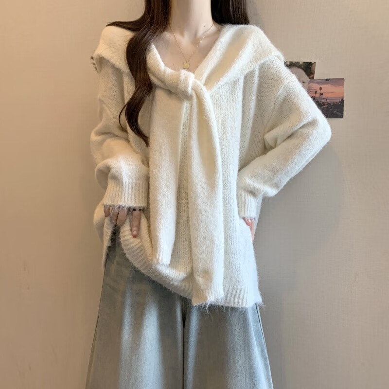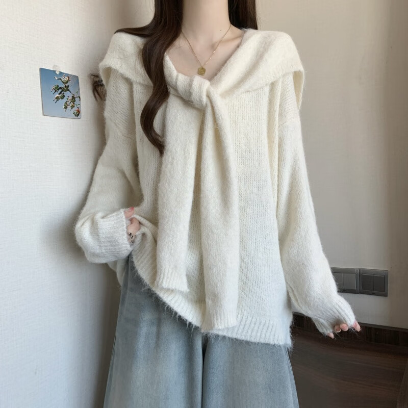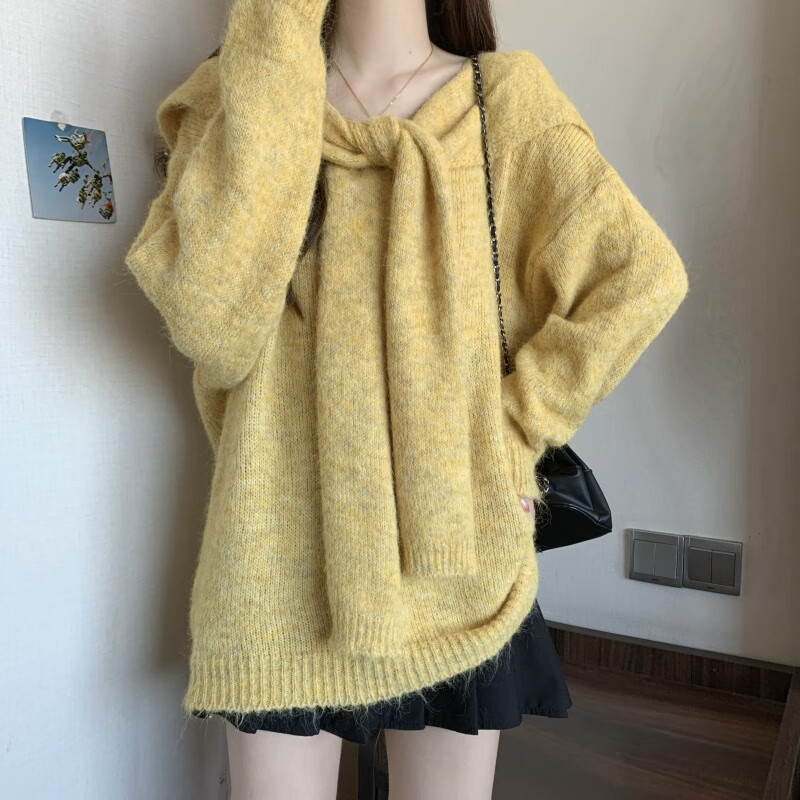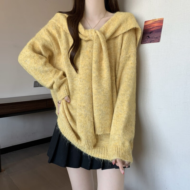 恒源祥假两件披肩海军领黄色正肩毛衣女2025秋大码胖mm中长款针织衫上衣 杏色毛衣版美式复古/梨形身材穿 4XL (180-200斤)