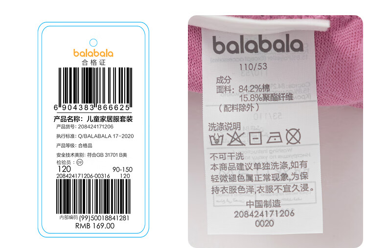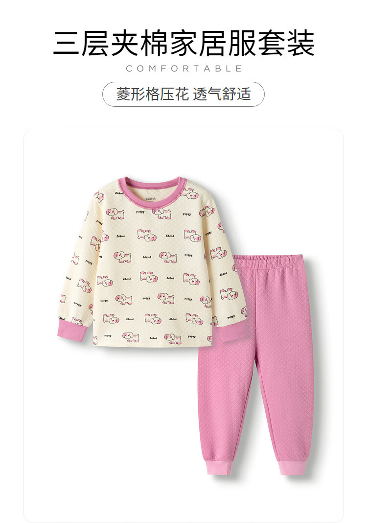 巴拉巴拉宝宝睡衣套装冬季三层夹棉男女童家居服小童外出保暖208424171206