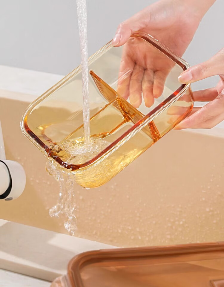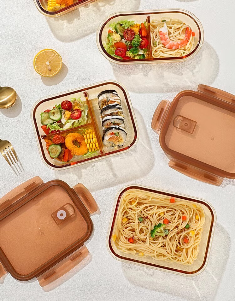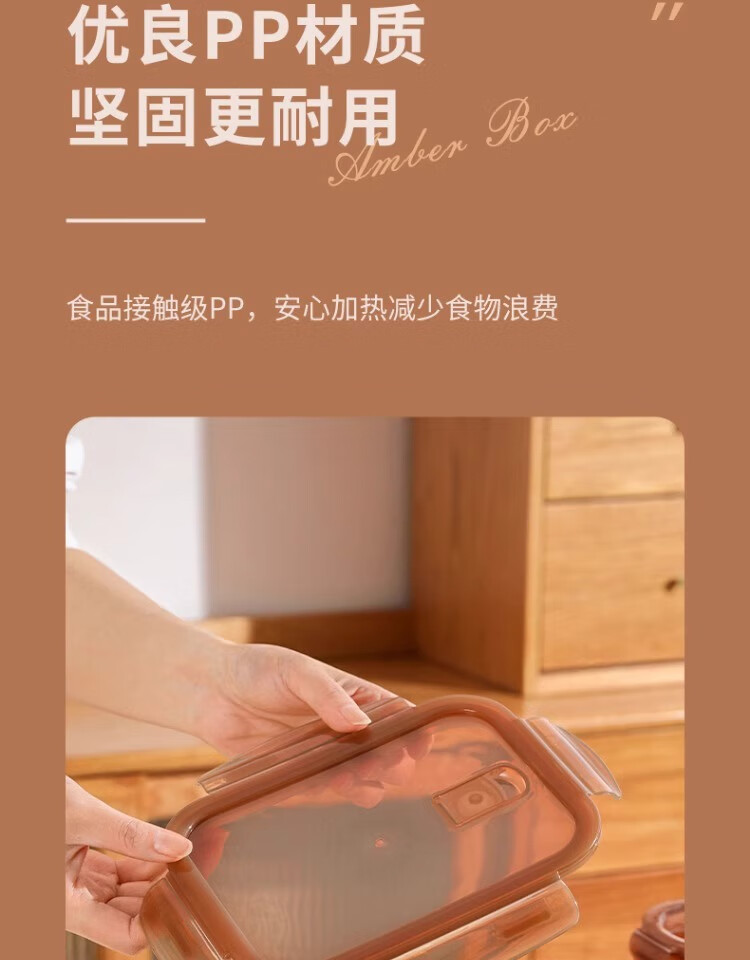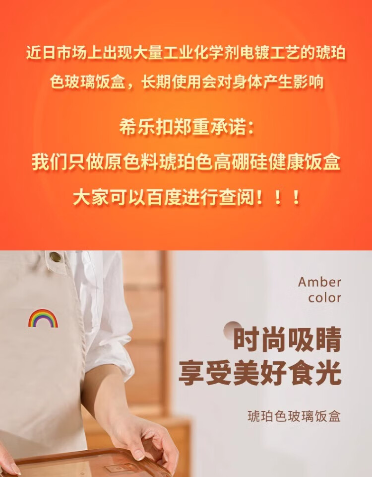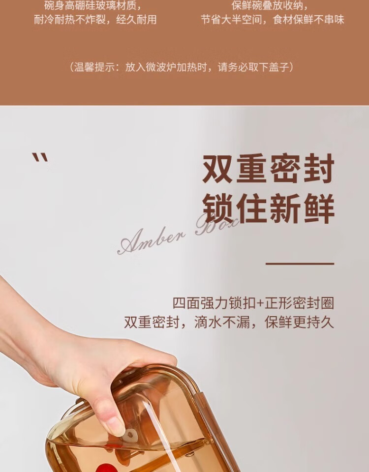 希乐扣Cilock高硼硅耐热玻璃饭盒上班族带饭可微波炉便当盒保鲜盒 琥珀三隔+包