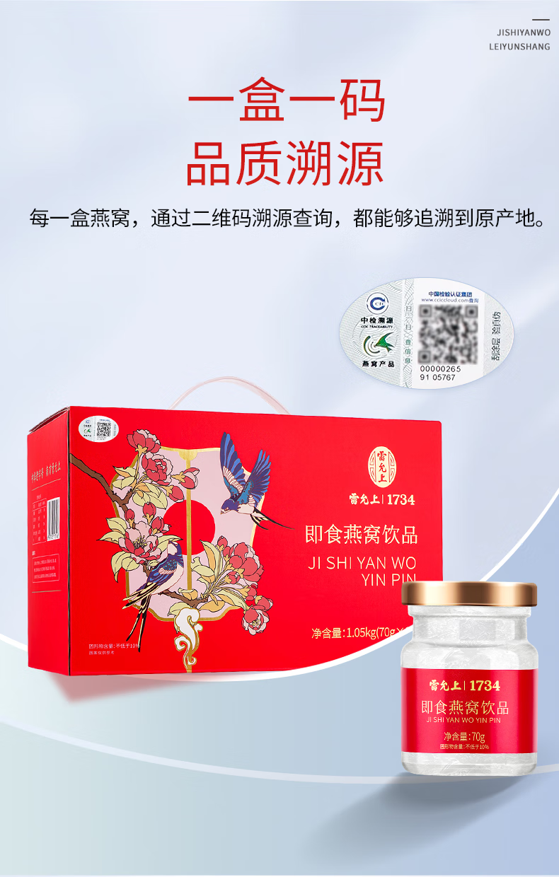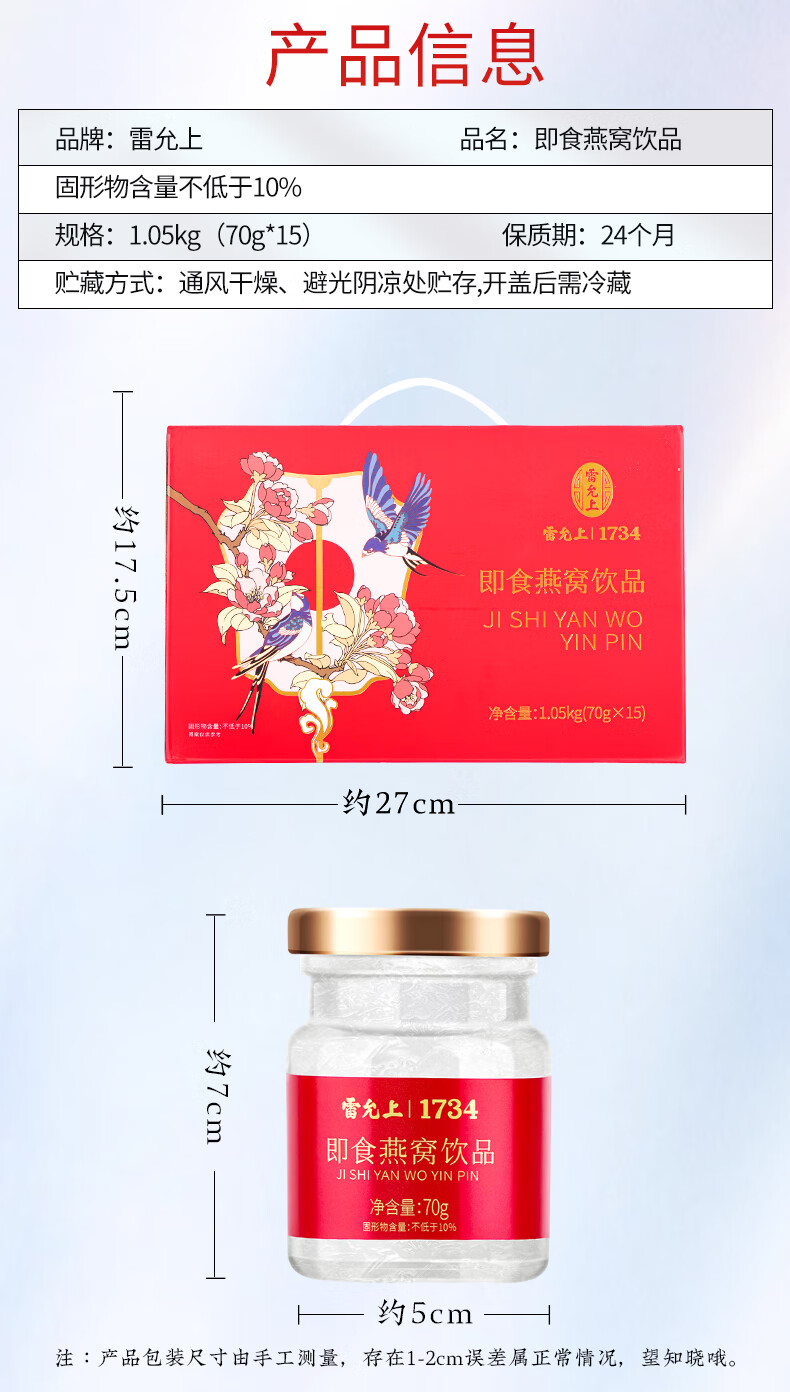 雷允上 即食燕窝燕窝孕妇 营养品礼盒 孕妇产妇 【70g*15瓶】商务送礼
