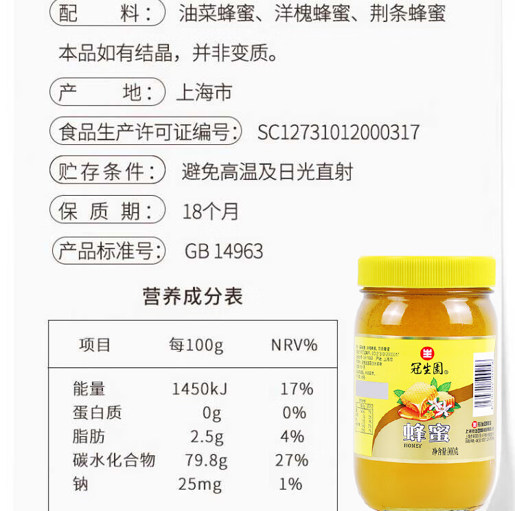 冠生园蜂蜜百花蜜900g【中华老字号】天然早餐冲饮 孕妇儿童父母礼品