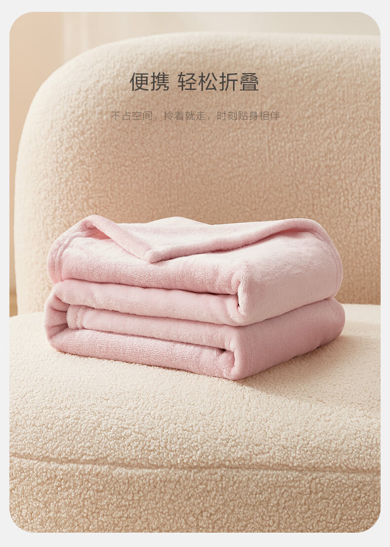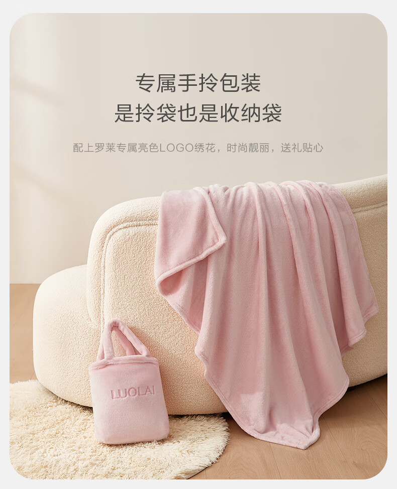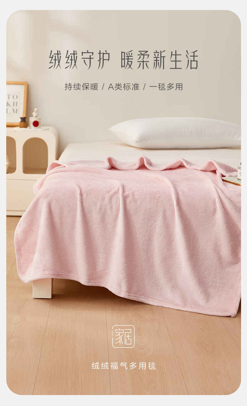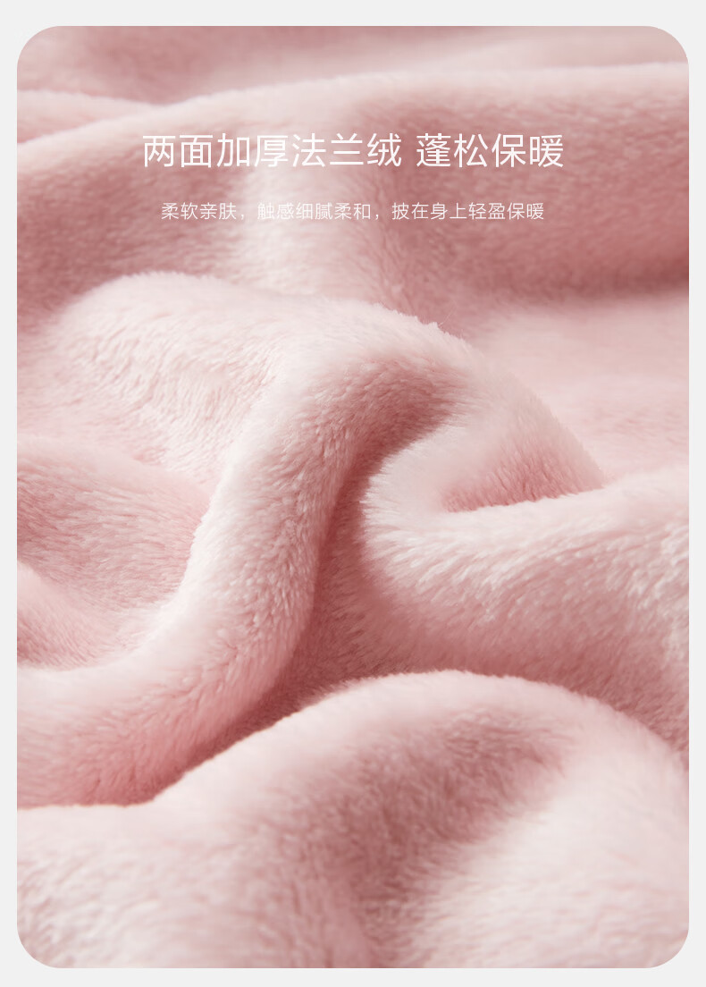 罗莱家纺 A类双面加厚绒法兰绒牛奶绒盖毯沙发毯珊瑚绒午睡毯 绒绒福气多用毯 粉色 96*120cm