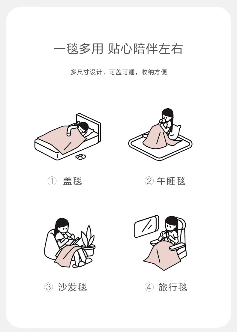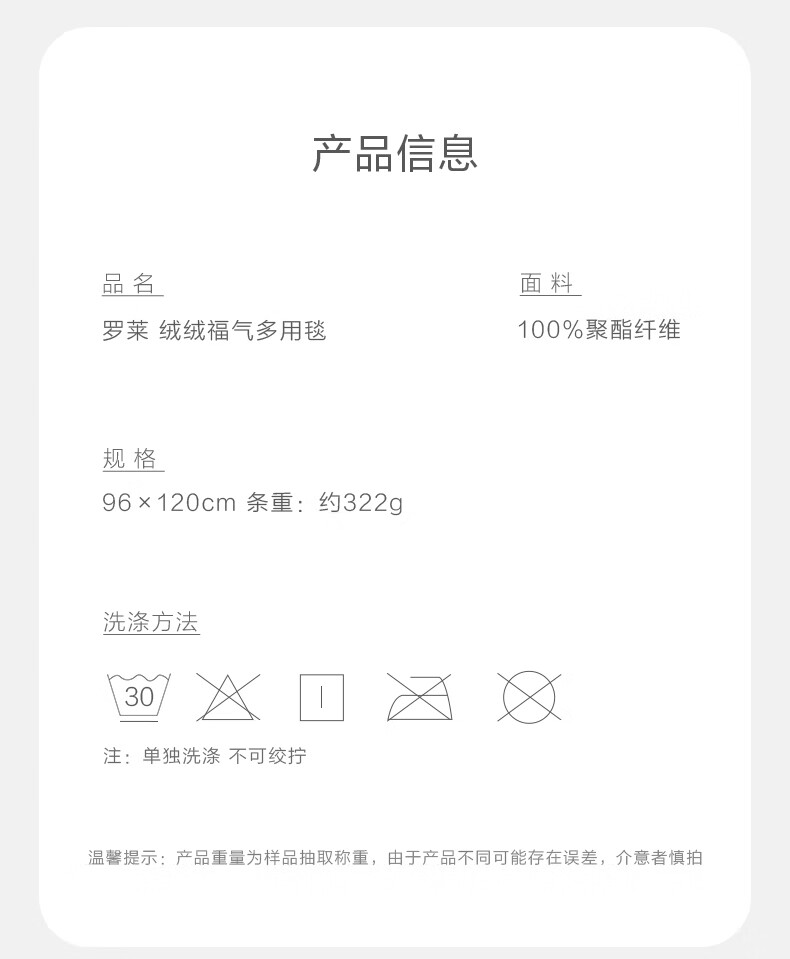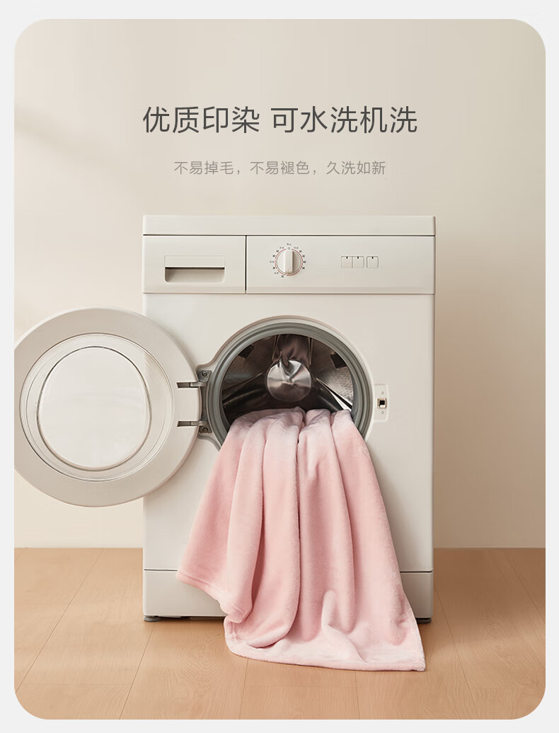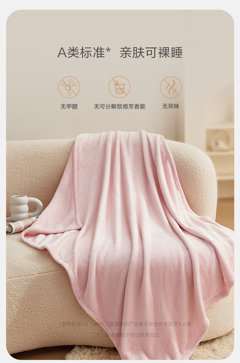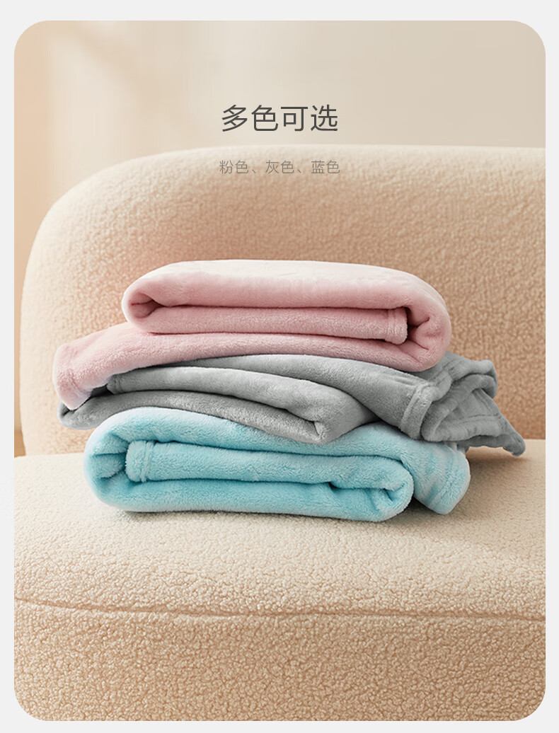 罗莱家纺 A类双面加厚绒法兰绒牛奶绒盖毯沙发毯珊瑚绒午睡毯 绒绒福气多用毯 粉色 96*120cm