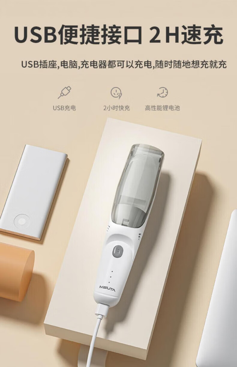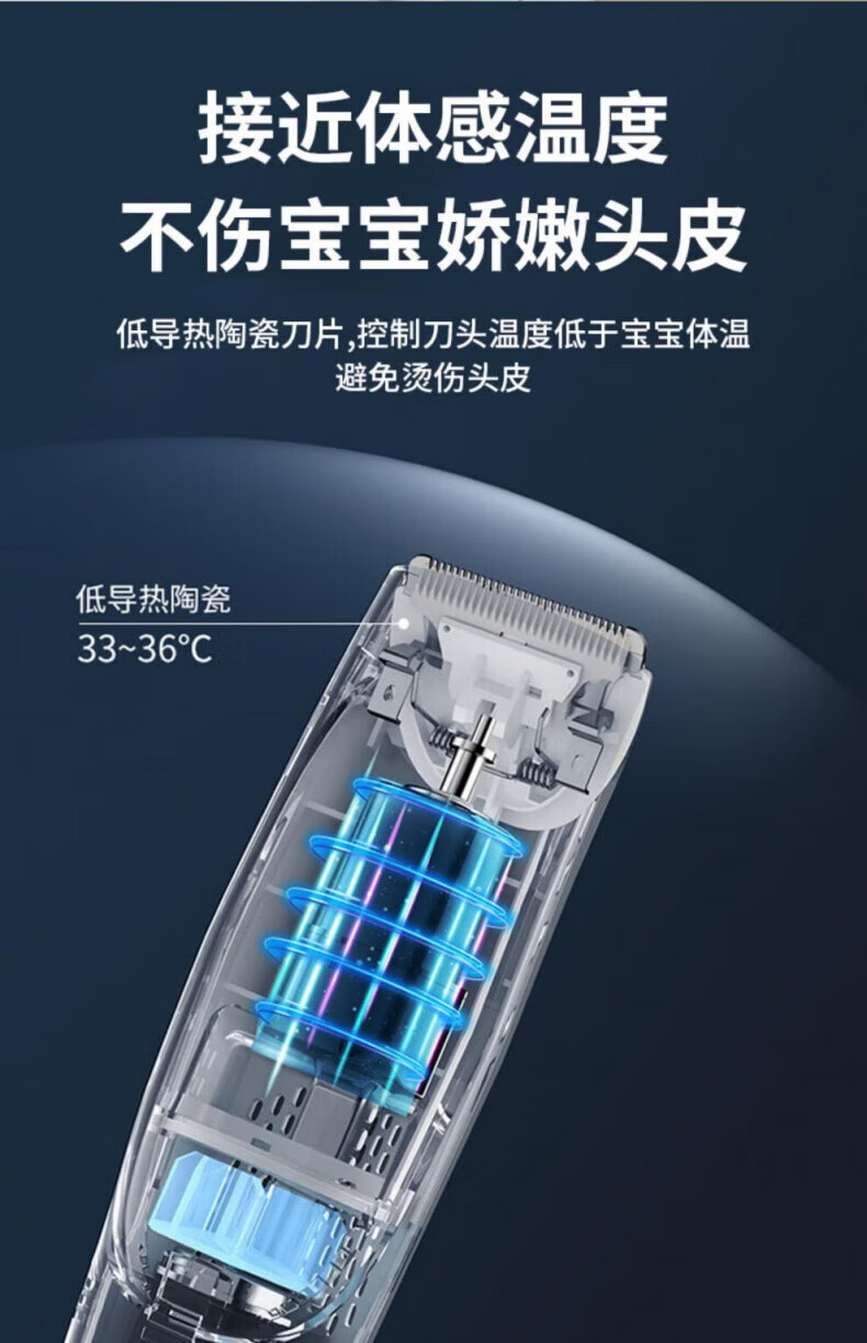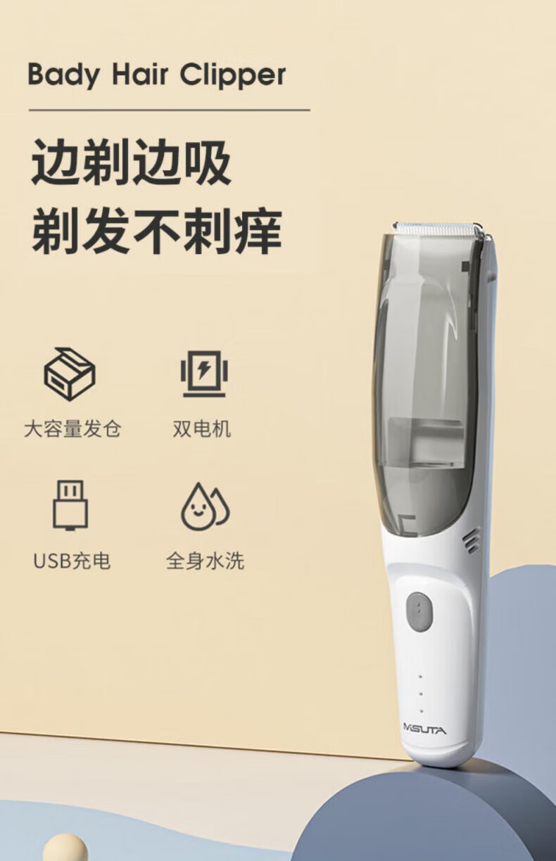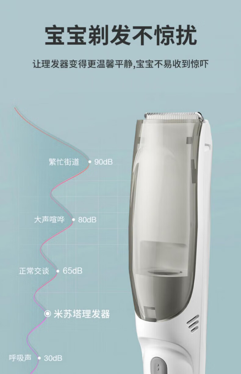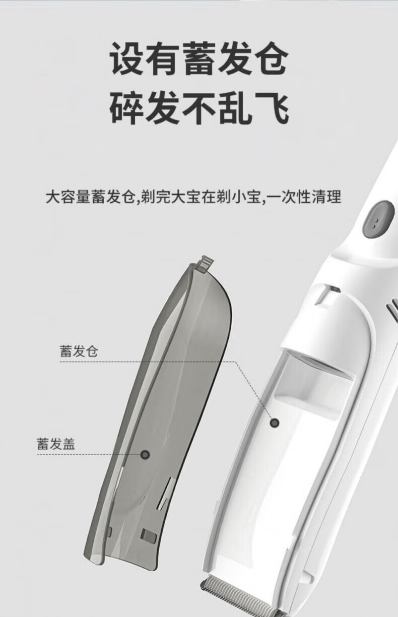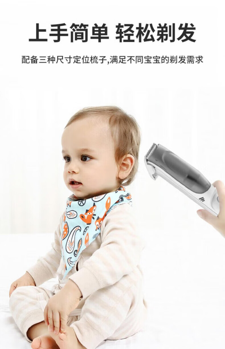 DEATKN德国婴儿理发器超静音自动吸发剃头电推剪儿童新生家用剃胎毛 蓝色升级双电机[7倍吸力款]