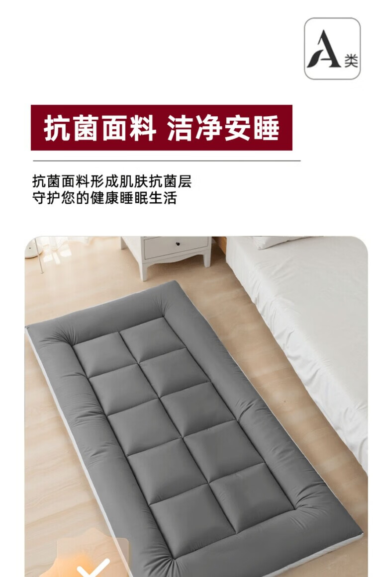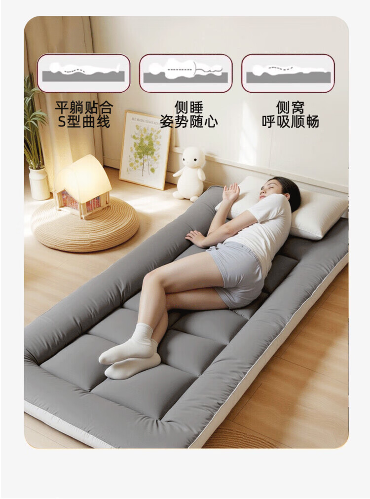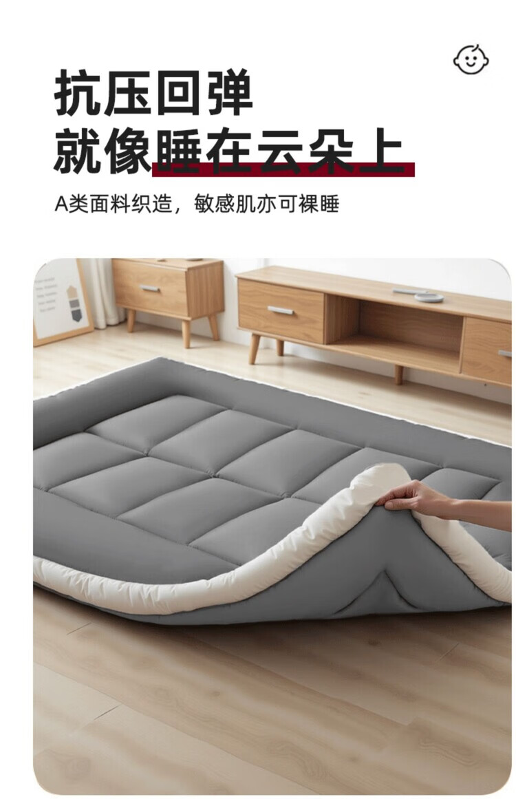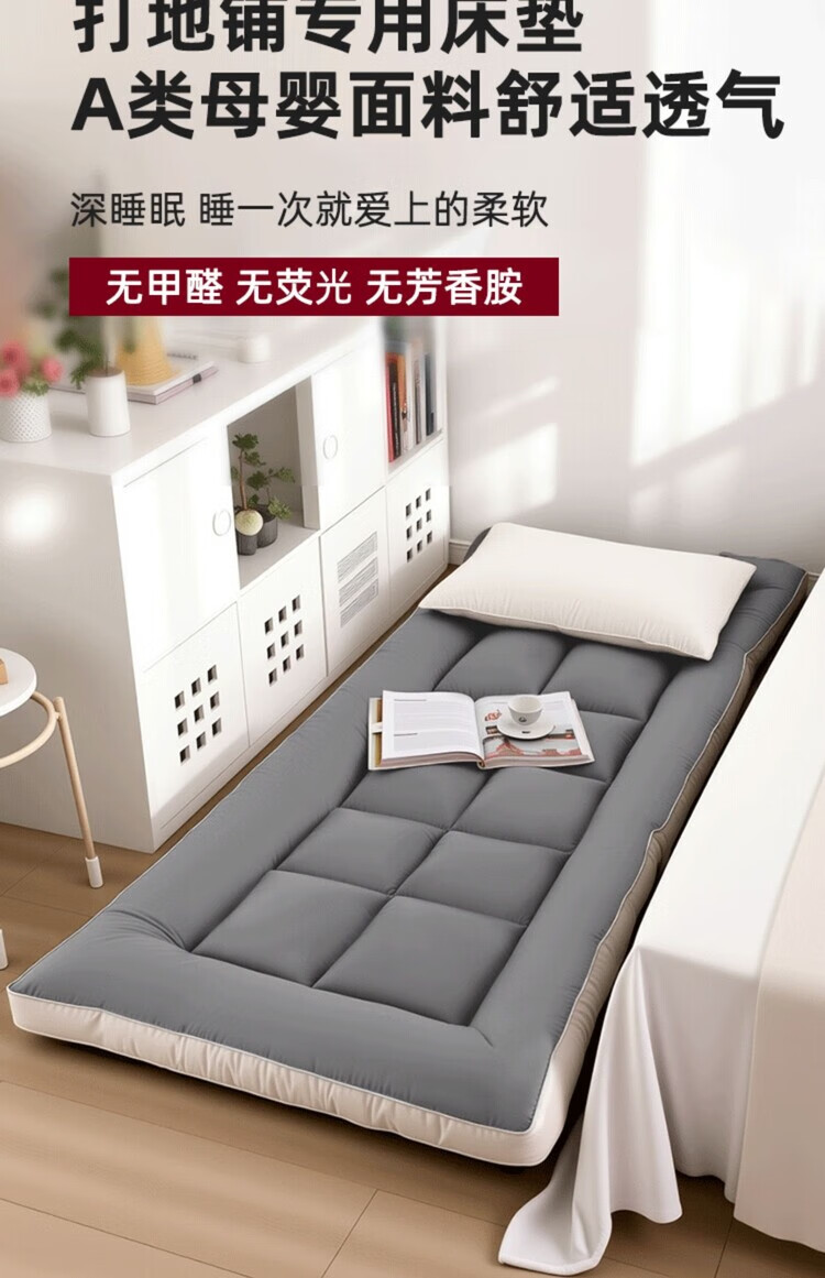 DEATKN德国地垫睡垫榻榻米地铺专用睡垫床垫软垫家用卧室可折叠不塌陷 深灰-加厚升级款(厚约8厘米)地铺专用防潮防滑 地铺专用:90*200cm【亲肤透气·久睡不塌】