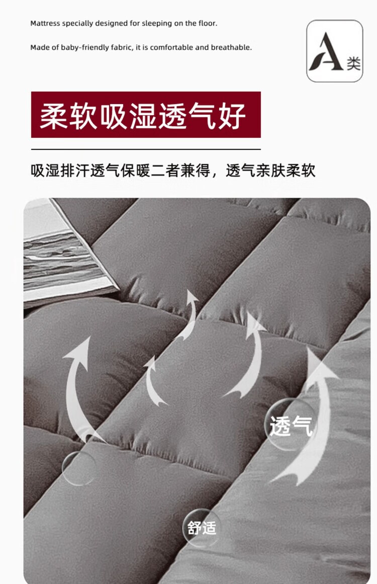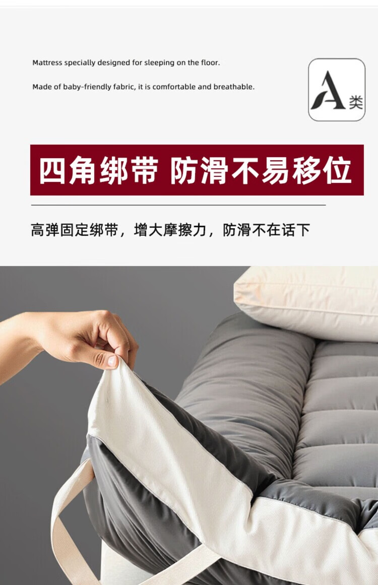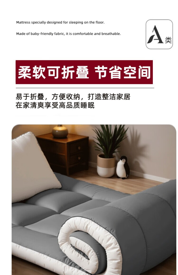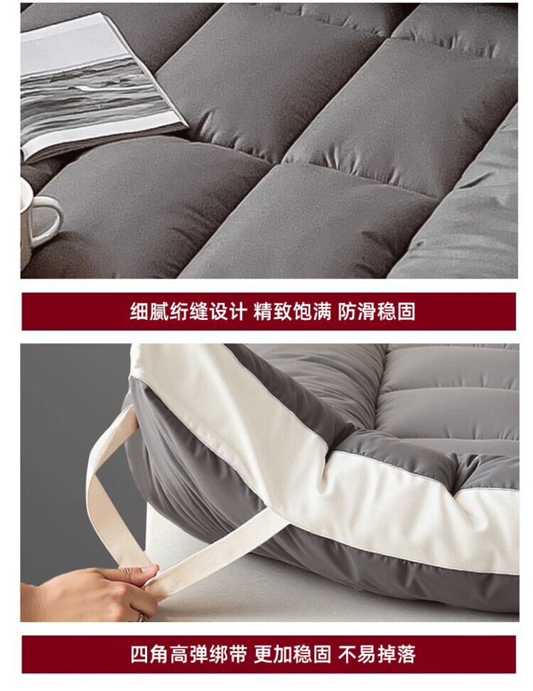 DEATKN德国地垫睡垫榻榻米地铺专用睡垫床垫软垫家用卧室可折叠不塌陷 深灰-加厚升级款(厚约8厘米)地铺专用防潮防滑 地铺专用:90*200cm【亲肤透气·久睡不塌】