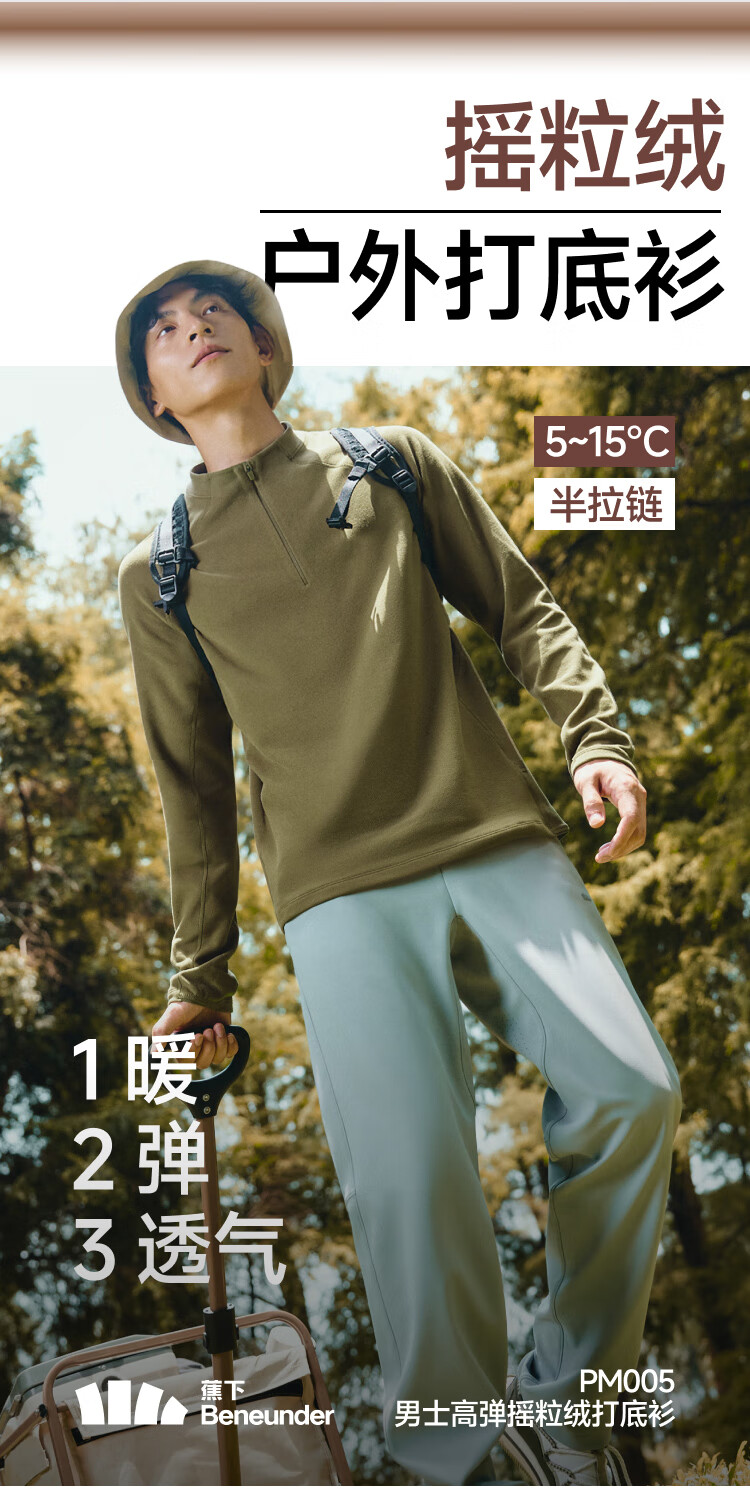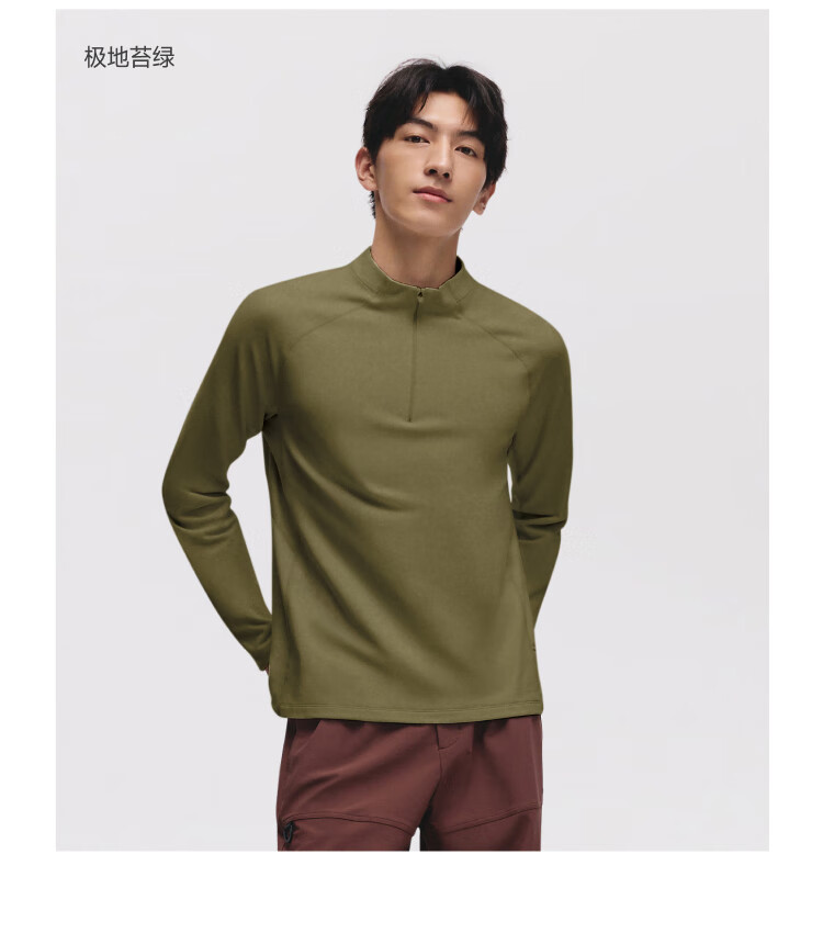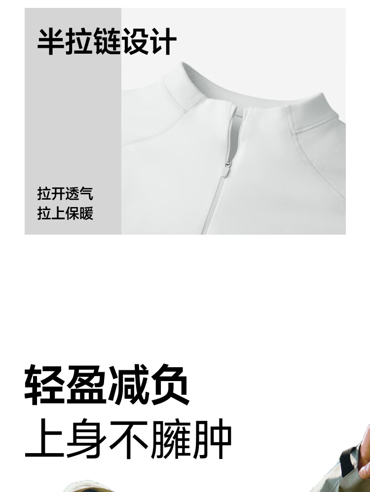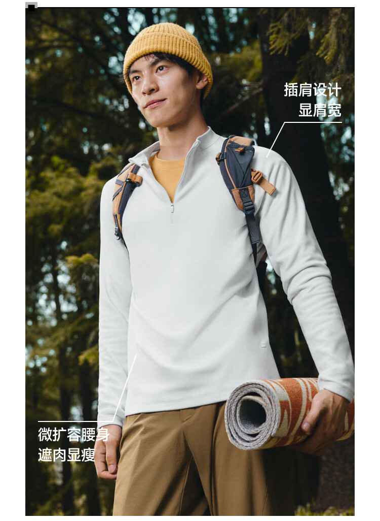 蕉下(beneunder)长袖T恤男士半拉链摇粒绒秋冬新款高弹上衣PM005卵石灰L