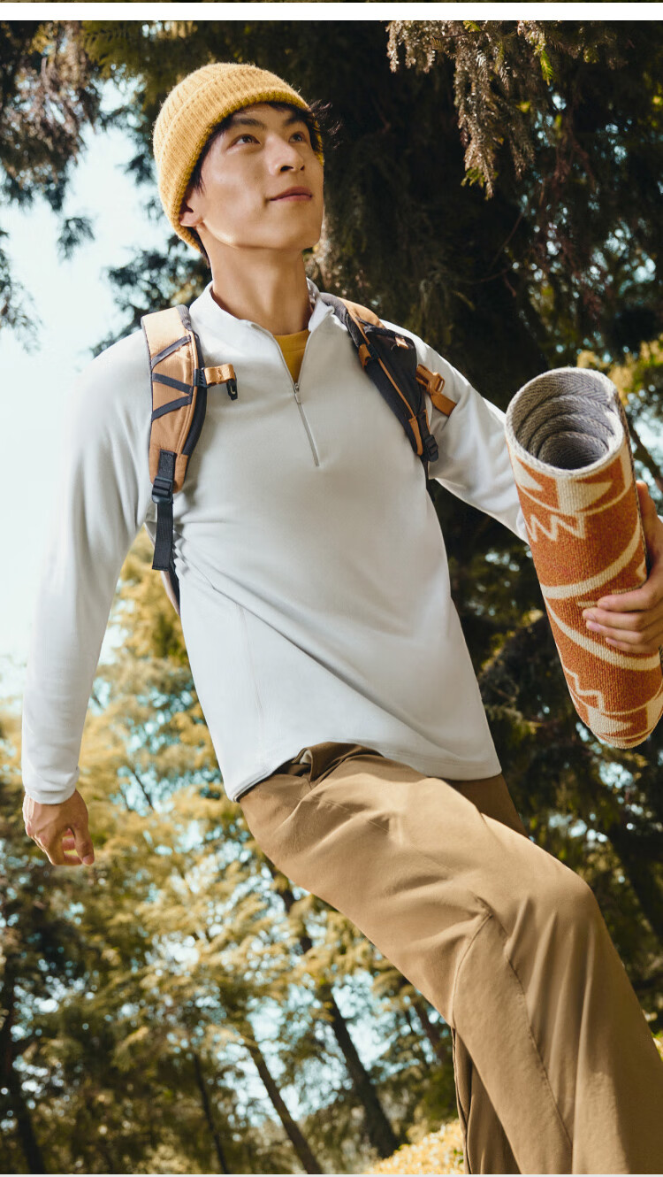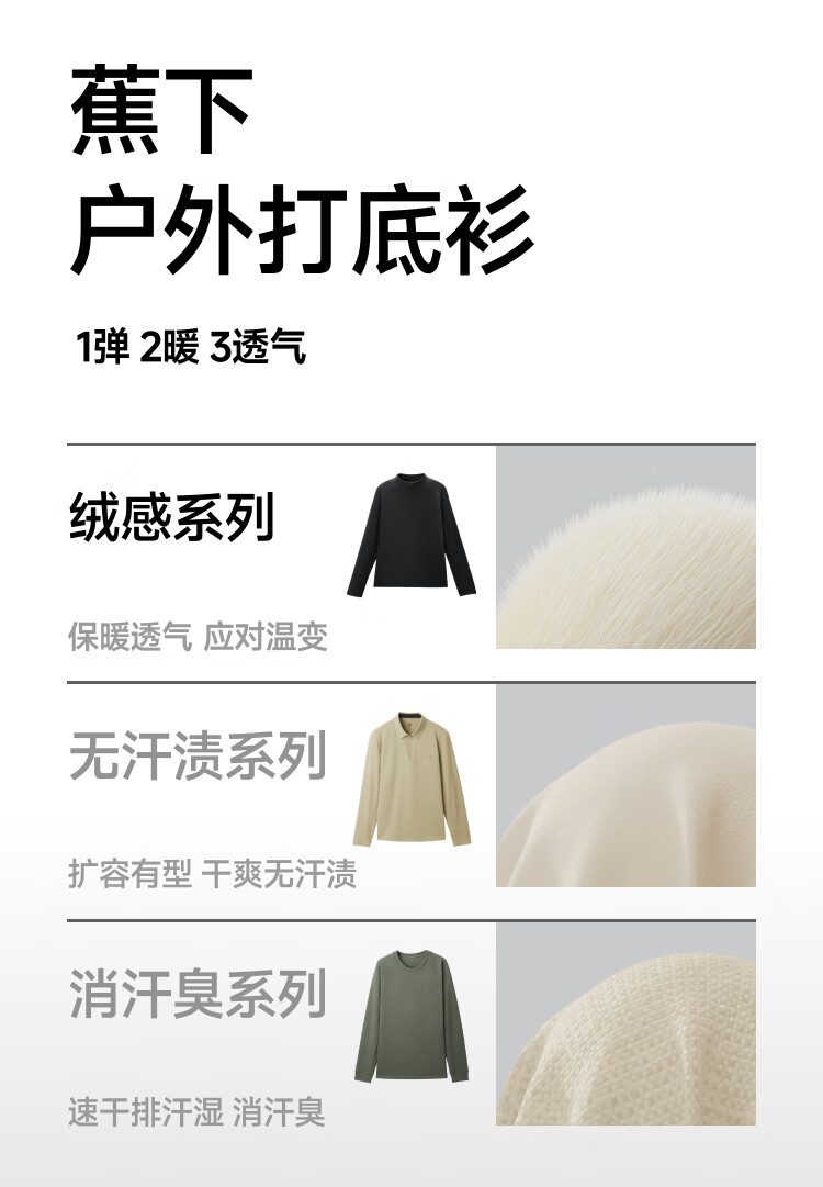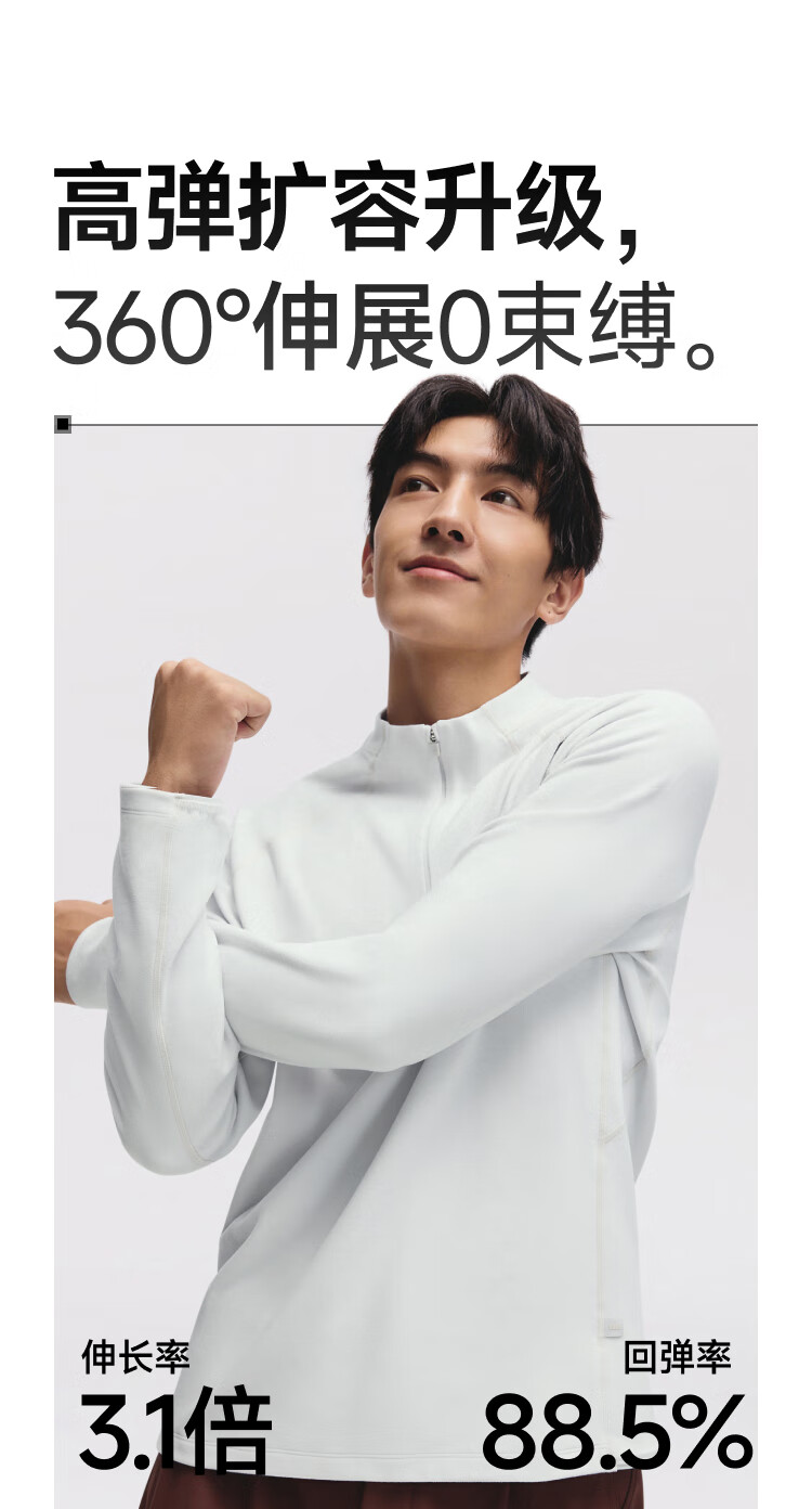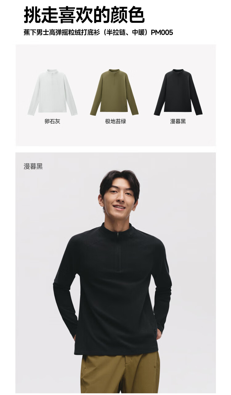 蕉下(beneunder)长袖T恤男士半拉链摇粒绒秋冬新款高弹上衣PM005卵石灰L