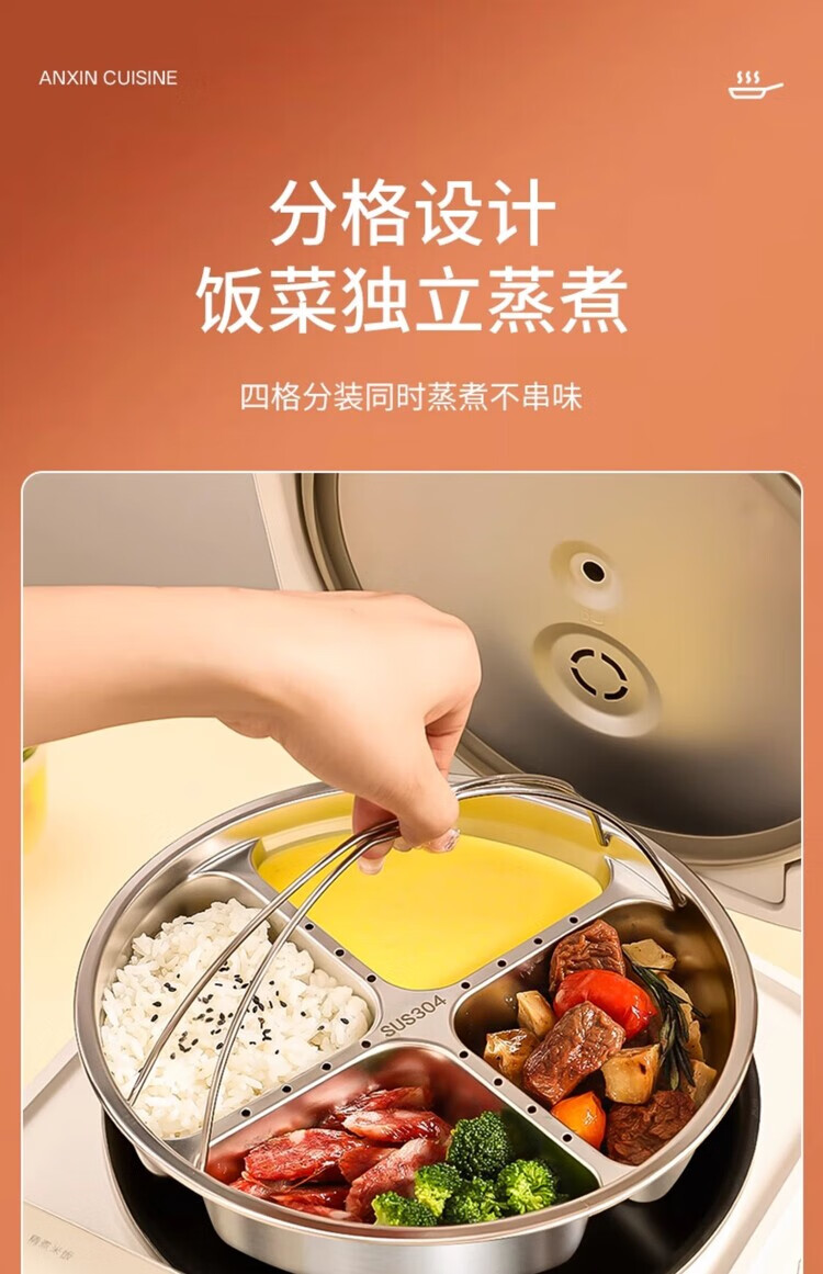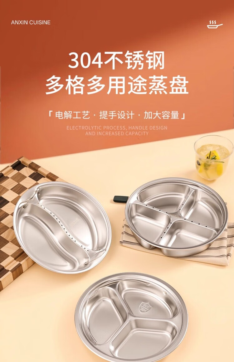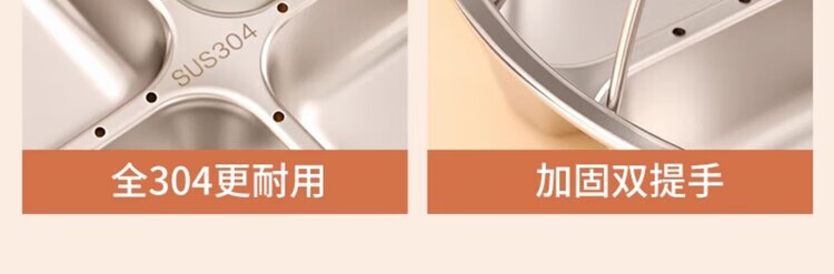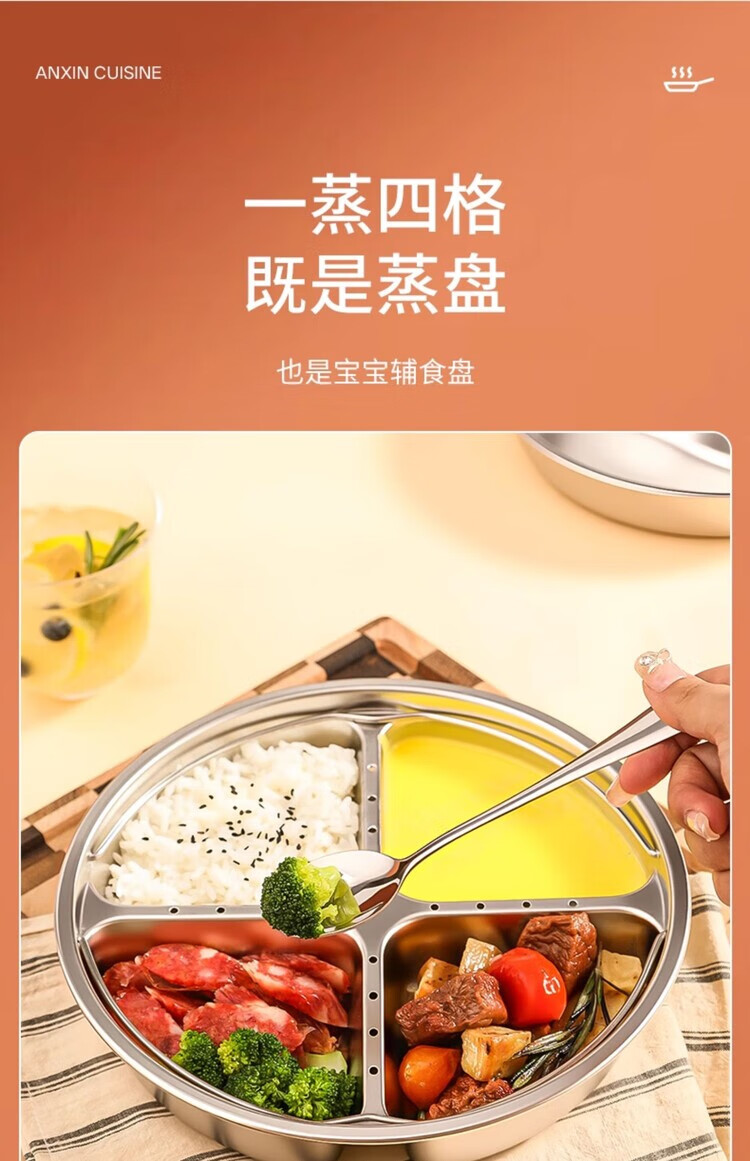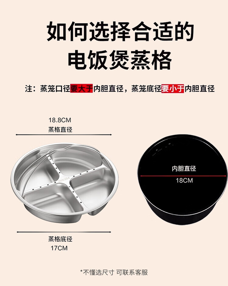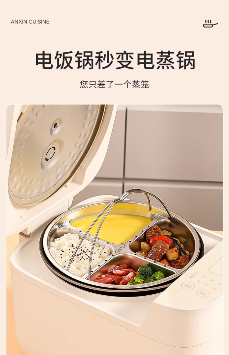 DEATKN德国电饭锅蒸盘食品级304不锈钢电饭煲内蒸笼分格蒸菜蒸屉隔蒸架 304健康食品级两格蒸盘20cm(适配电饭锅内胆内