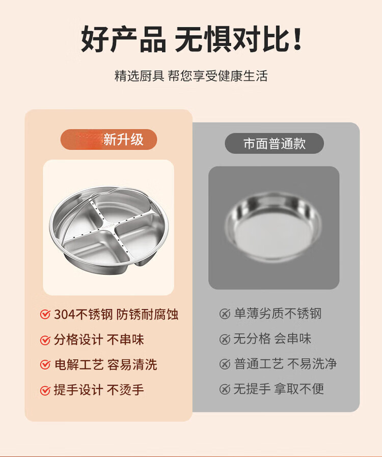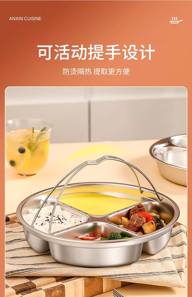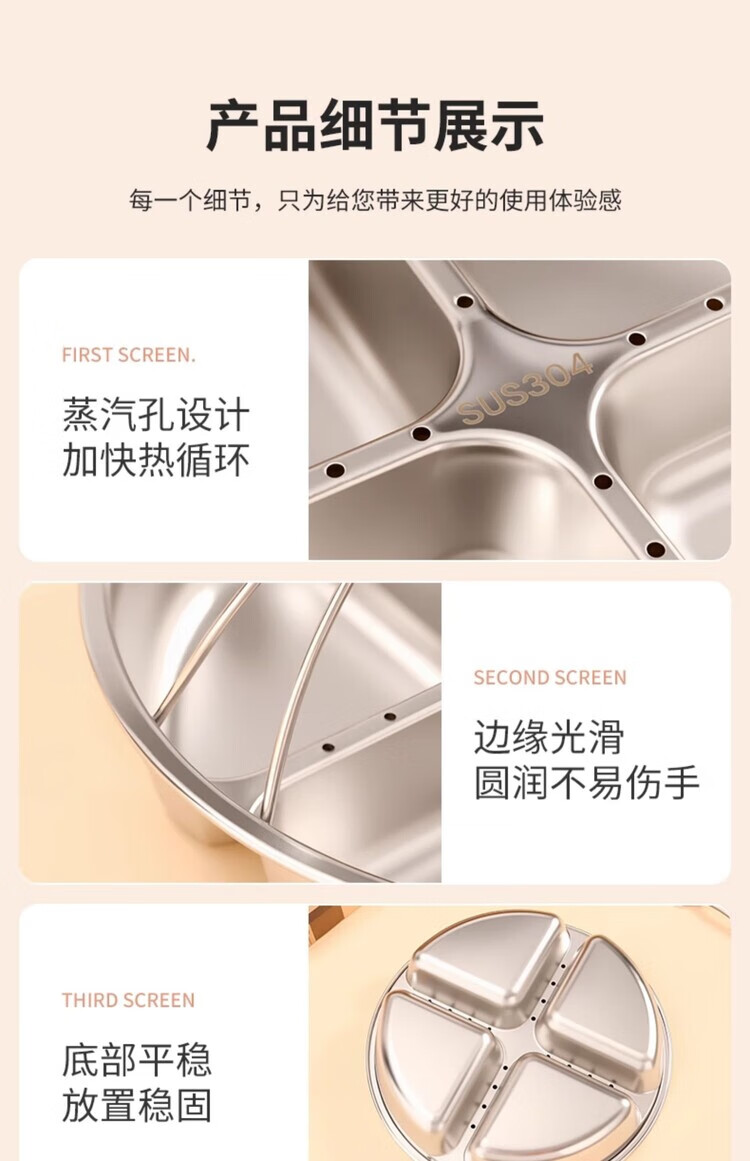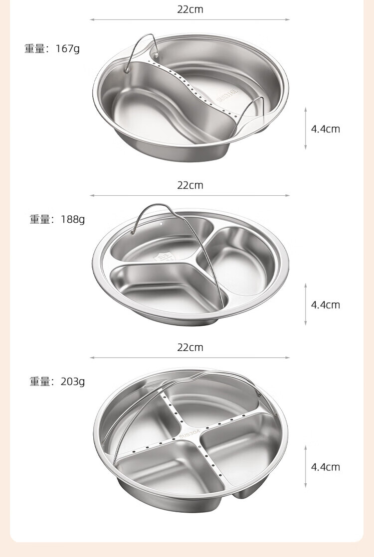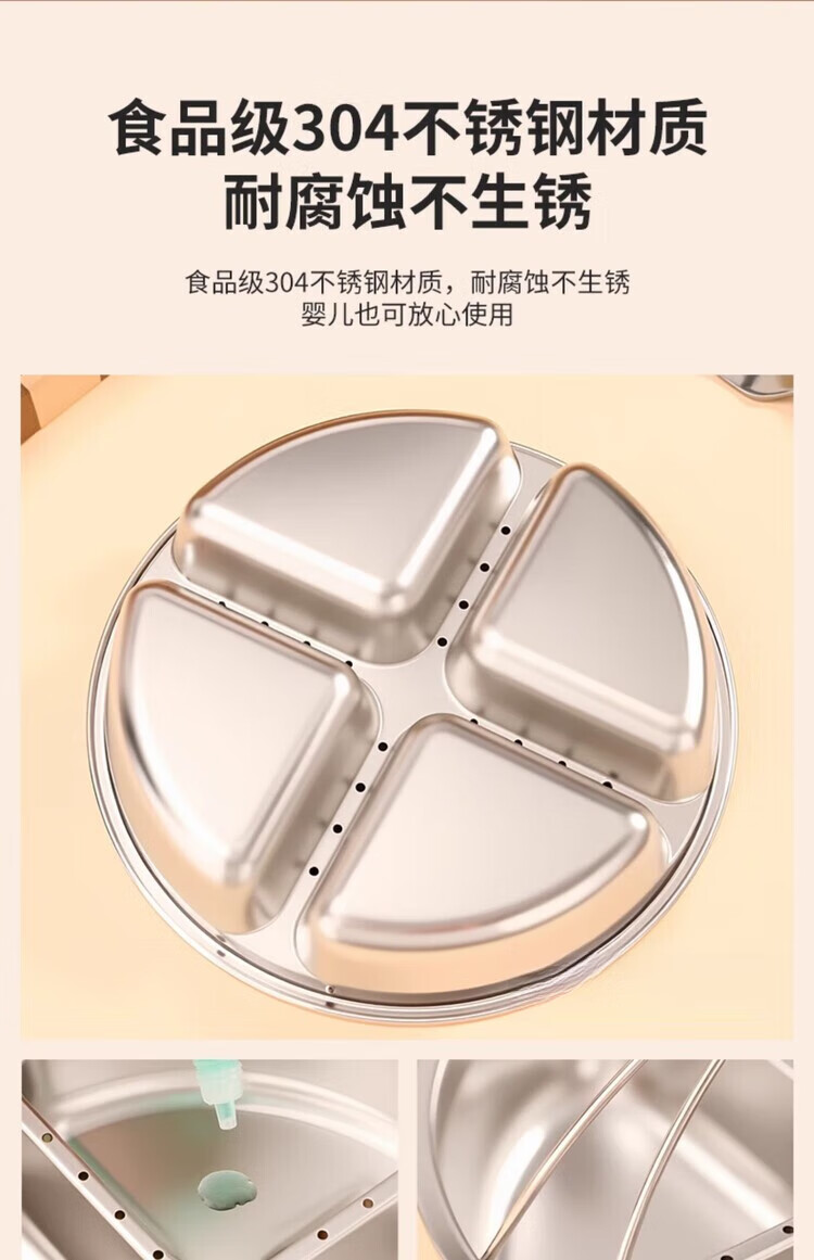 DEATKN德国电饭锅蒸盘食品级304不锈钢电饭煲内蒸笼分格蒸菜蒸屉隔蒸架 304健康食品级两格蒸盘20cm(适配电饭锅内胆内