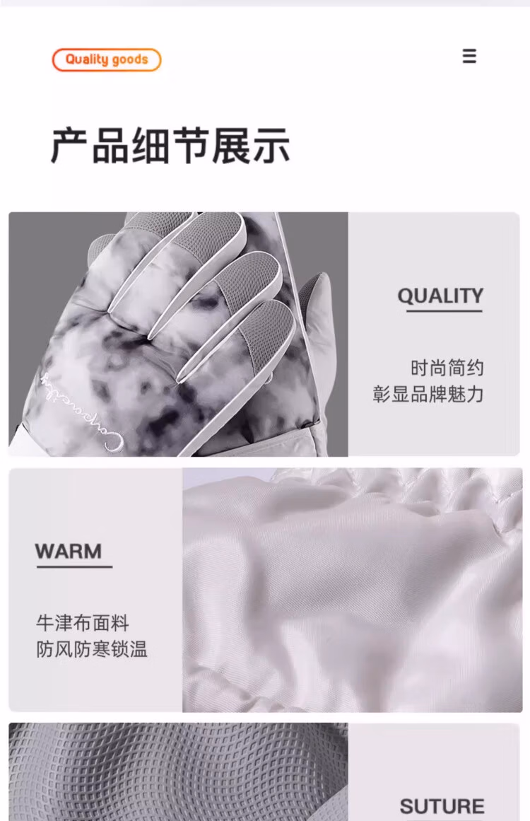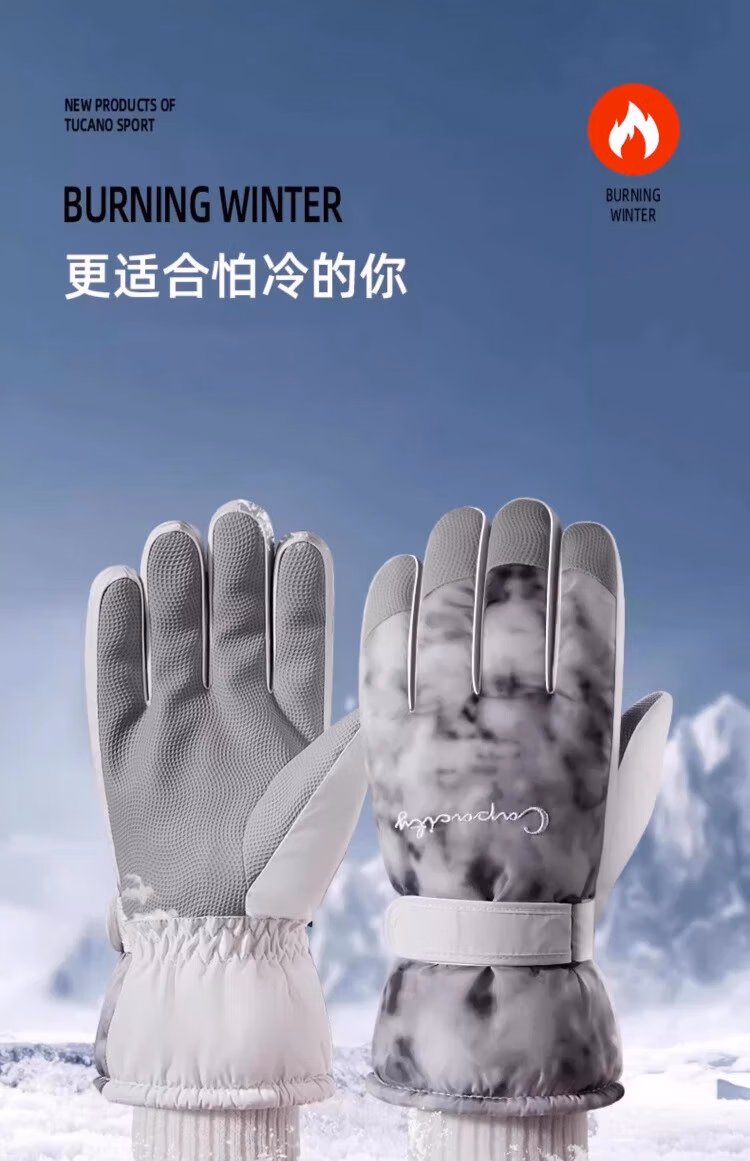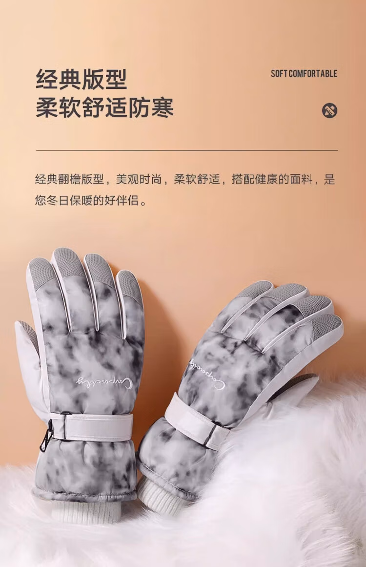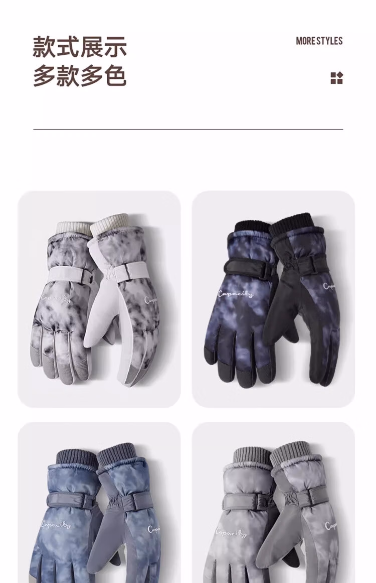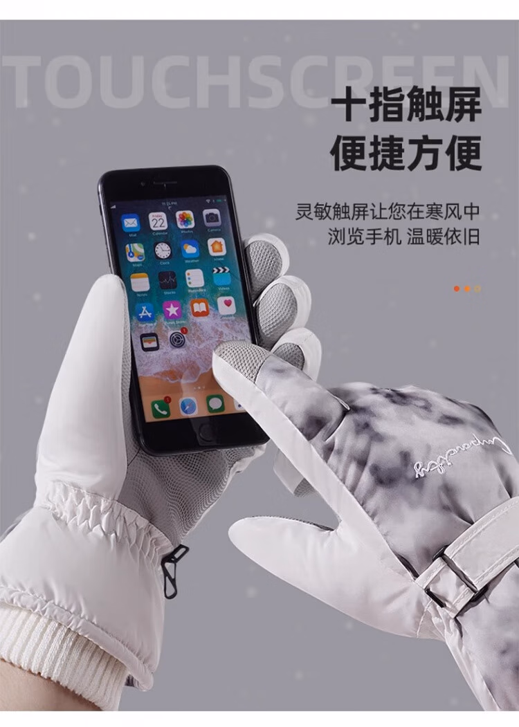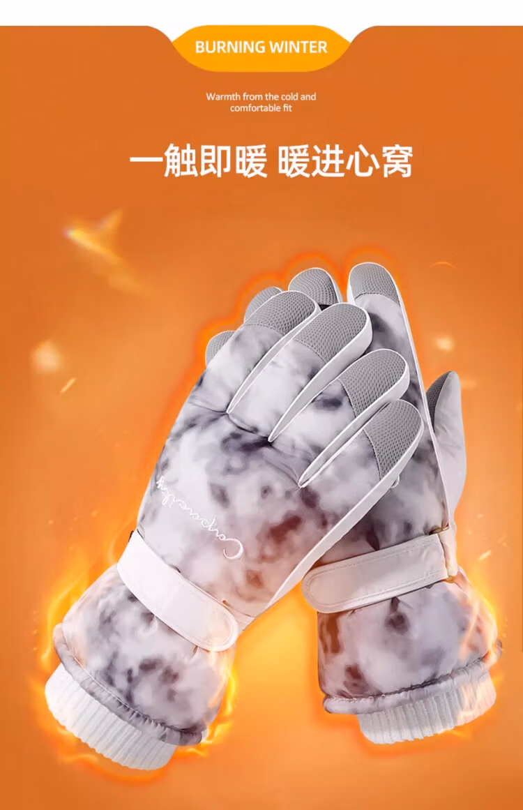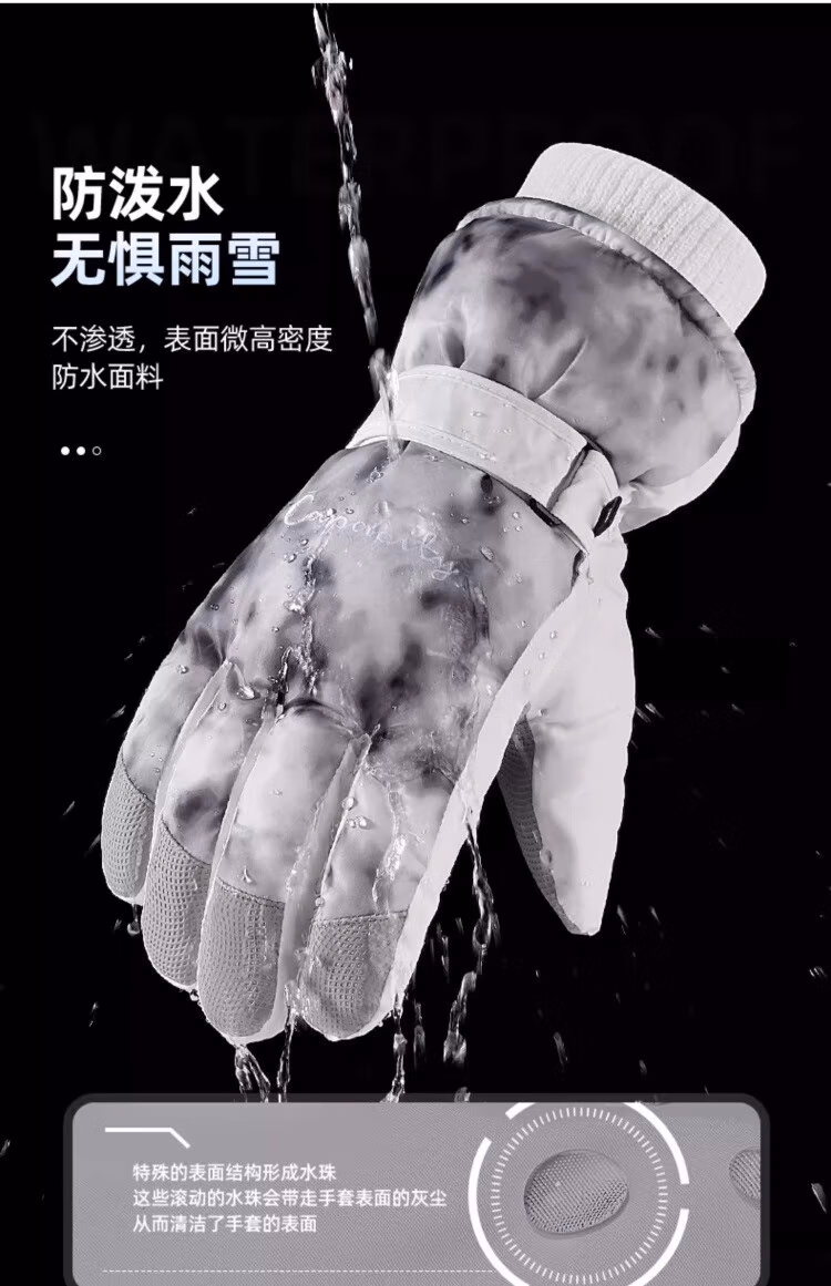DEATKN德国品牌零下40度防寒手套男冬季加绒加厚保暖滑雪防水触屏骑行 【轻奢大理石纹】黑色