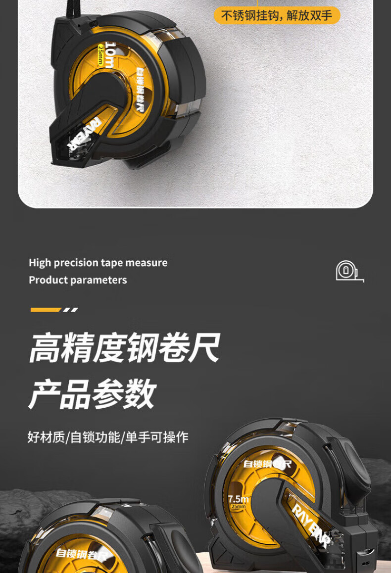 DEATKN德国卷尺钢卷尺高颜值加厚加硬办公盒尺伸缩尺木工尺子高精 5X25MM-国标II级精度