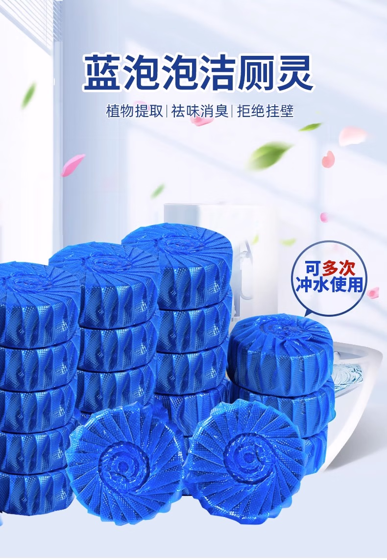 DEATKN【德国高端】洁厕宝蓝泡泡洁厕灵厕所除臭神器马桶清洁剂清香型去 高浓缩【30枚】 1kg 1个