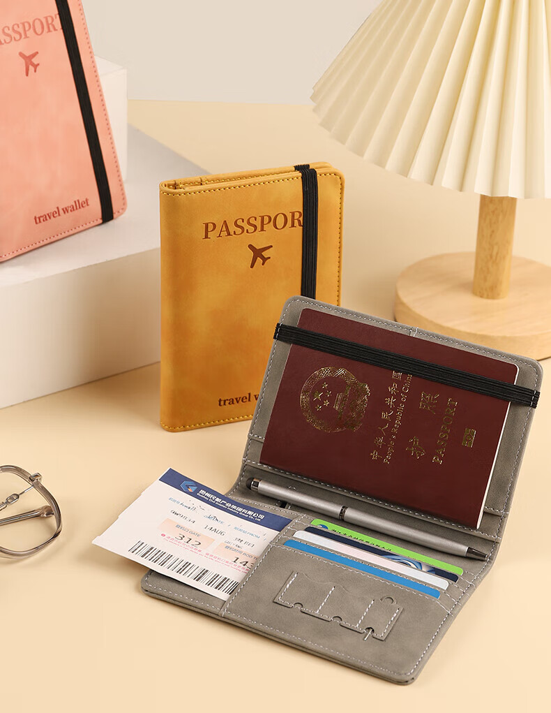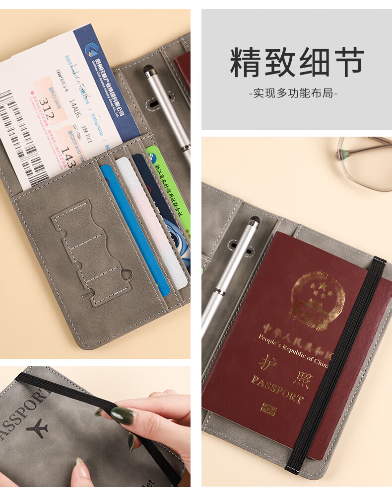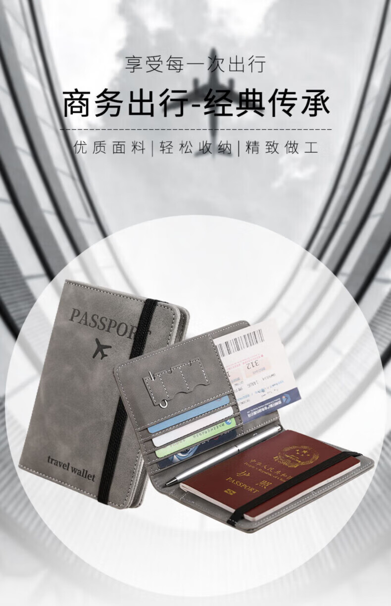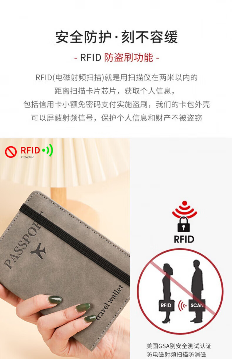 DEATKN德国高端护照夹保护套机票登机牌包一体便携随身出国证件包防 升级防盗刷可放两本护照[天蓝色]