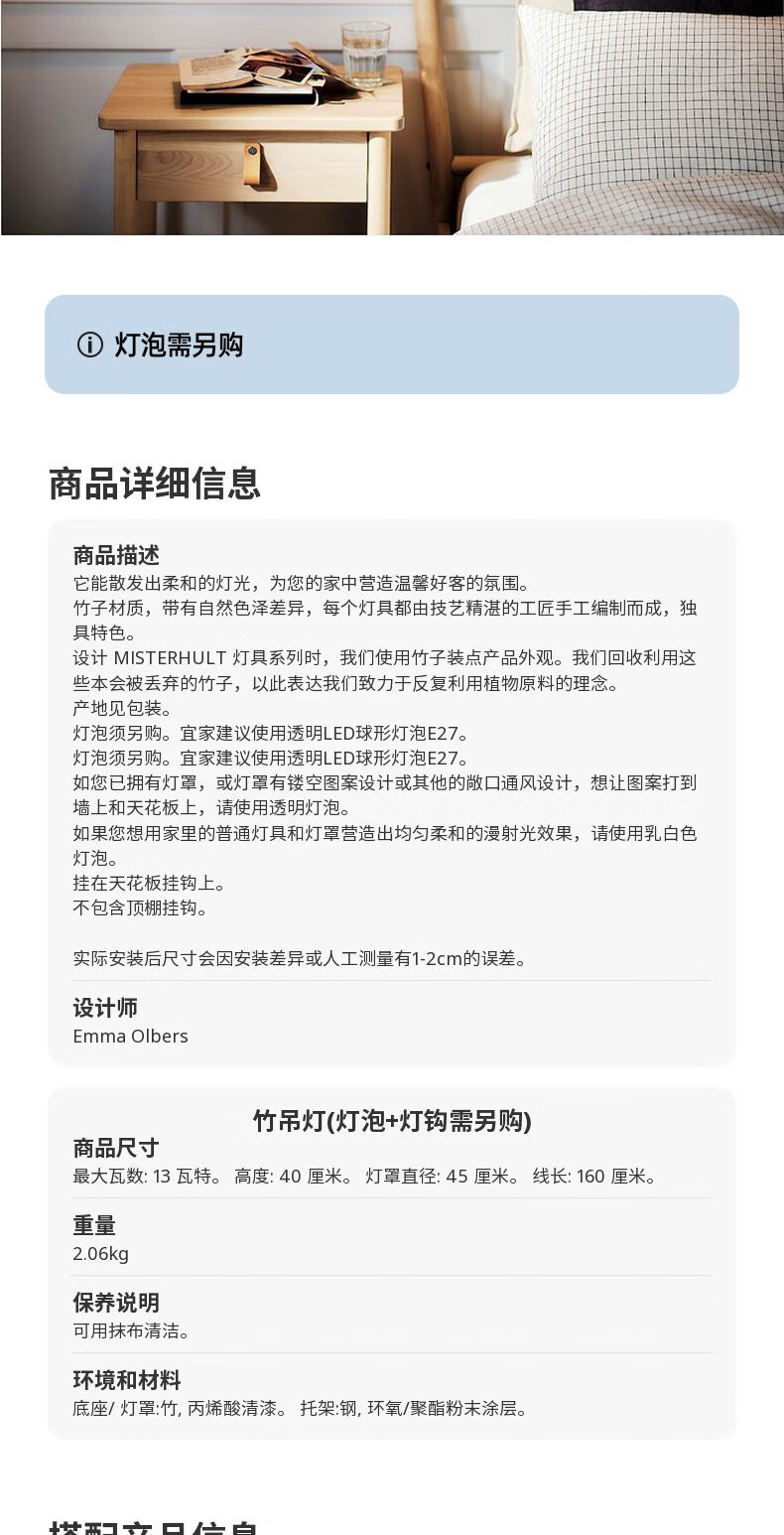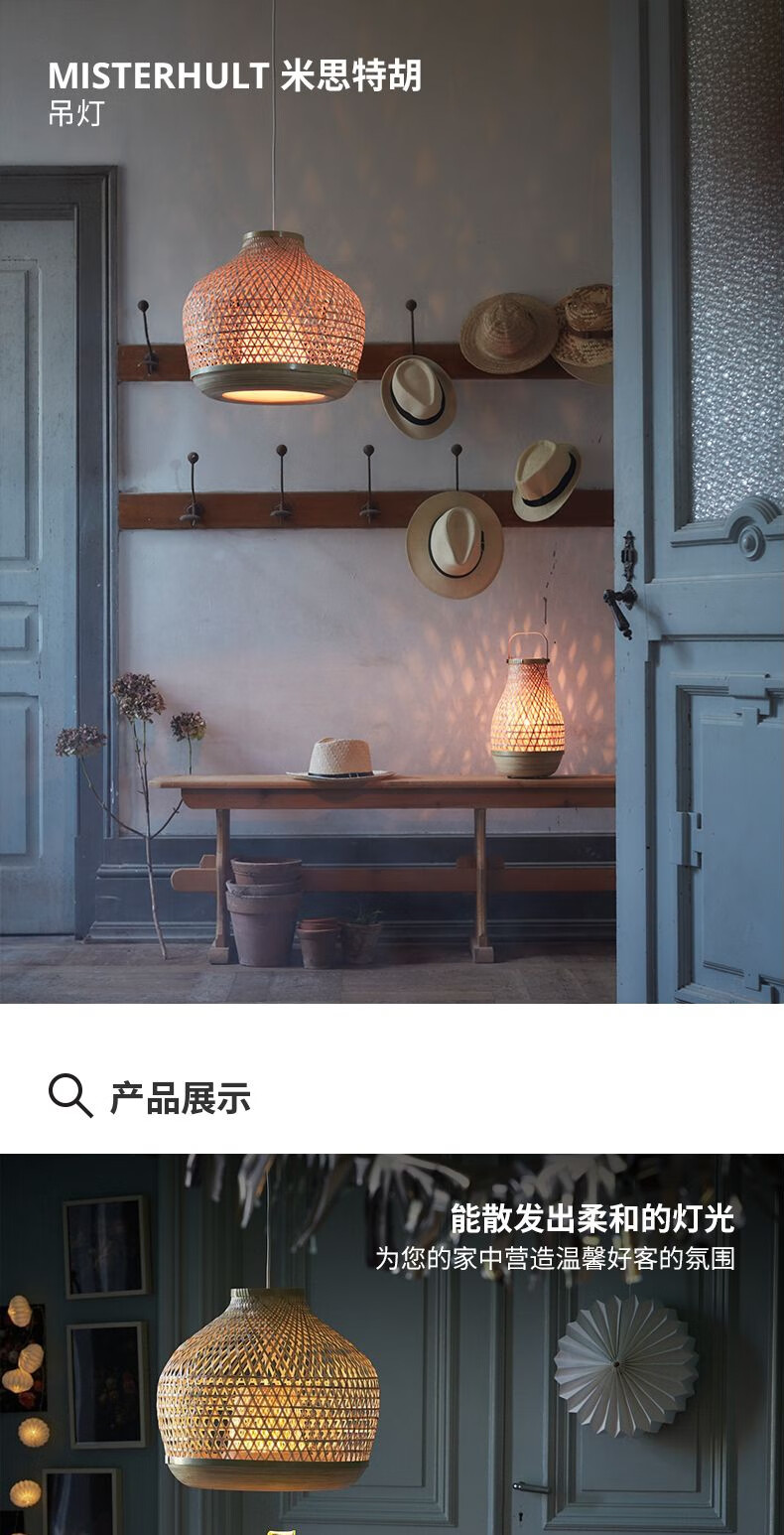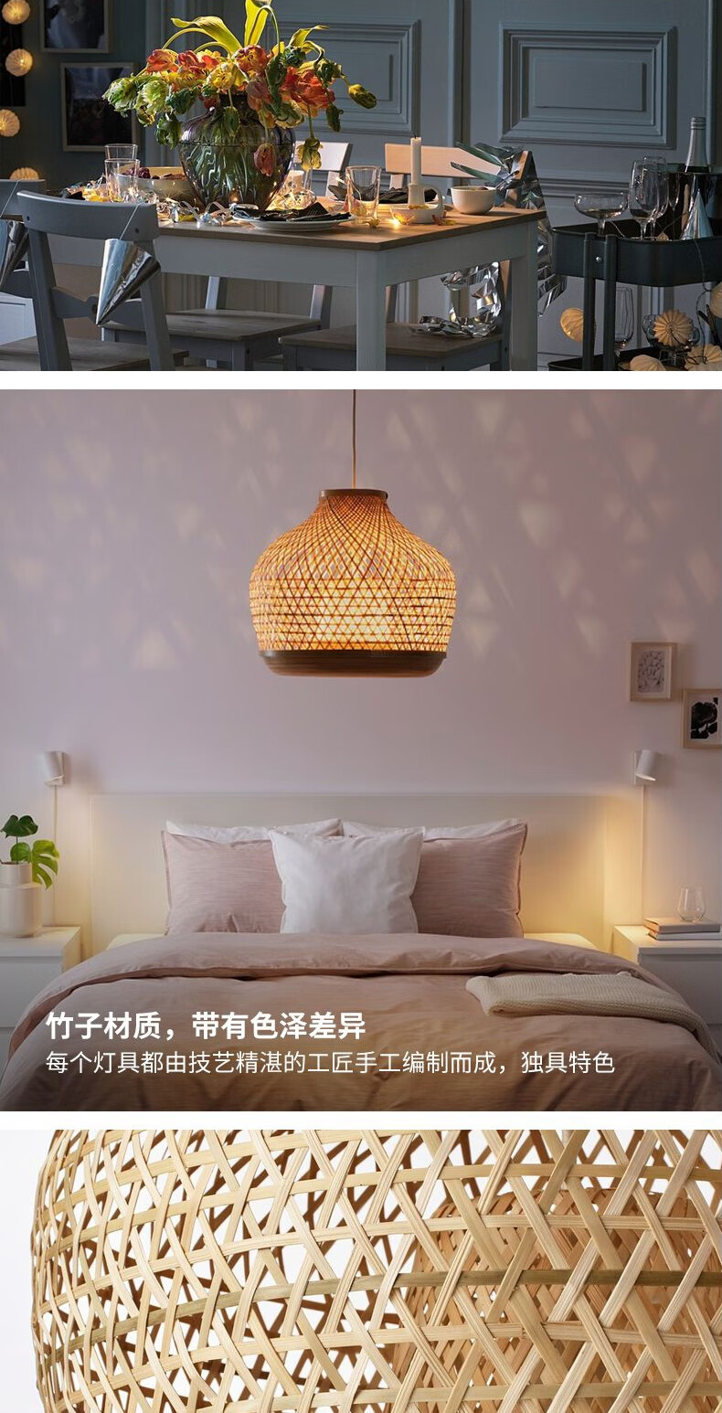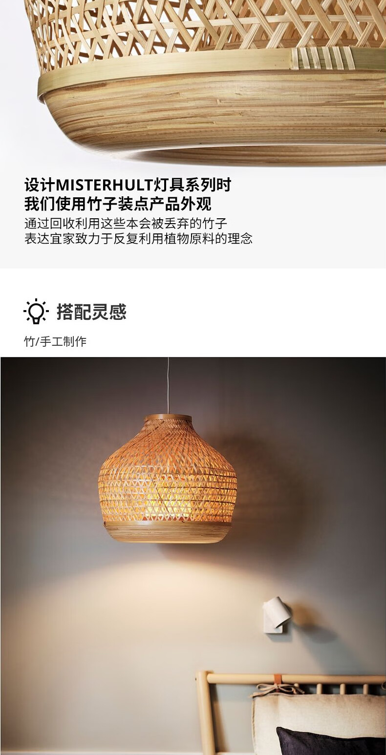 宜家(IKEA)MISTERHULT米思特胡吊灯竹编手工创意现代简约北欧风 竹吊灯+E27灯泡470流明