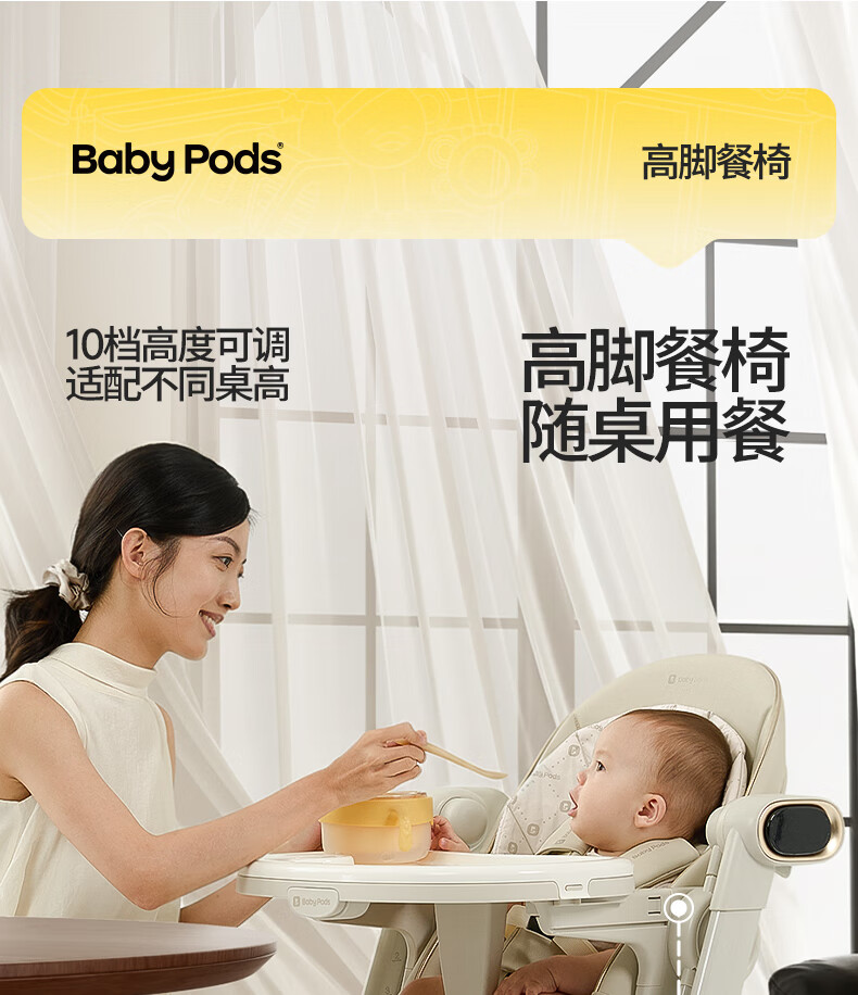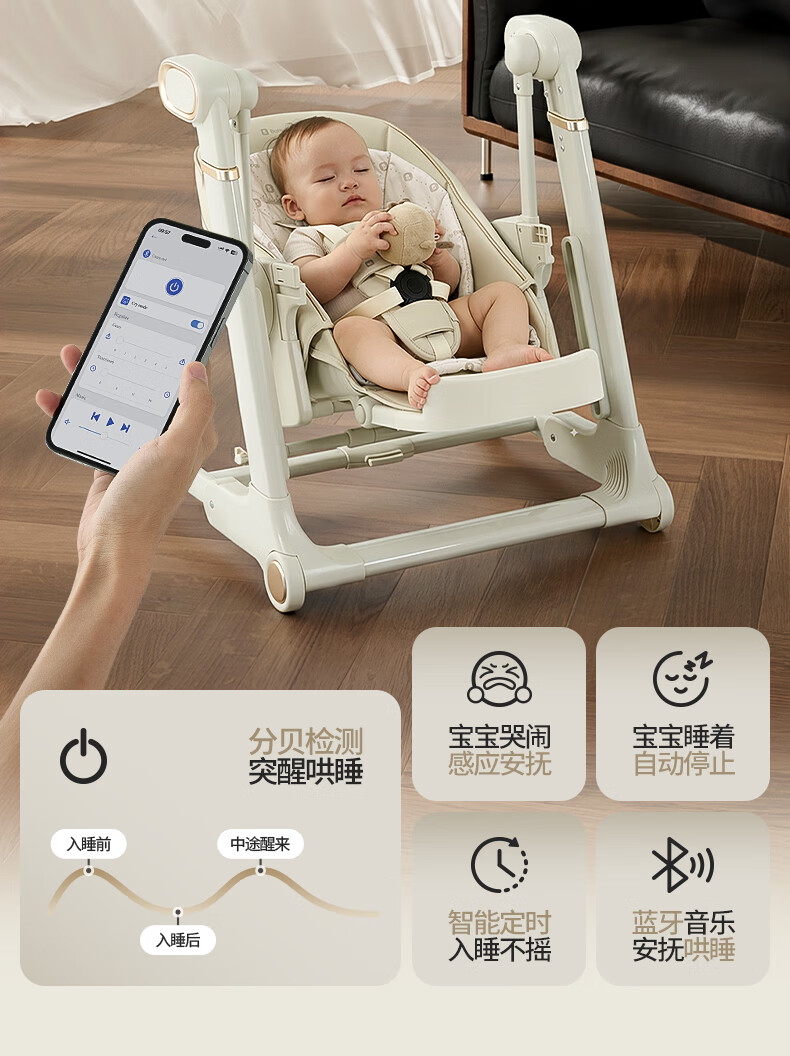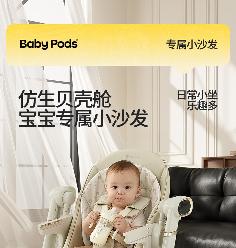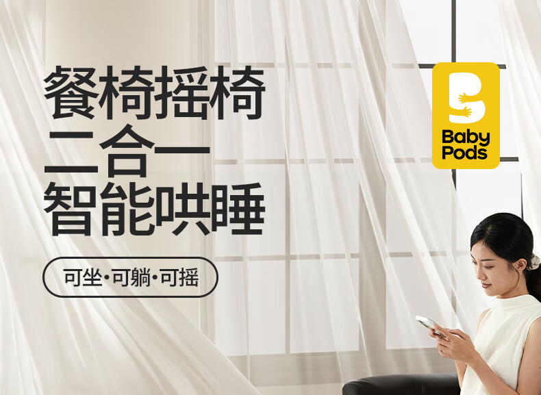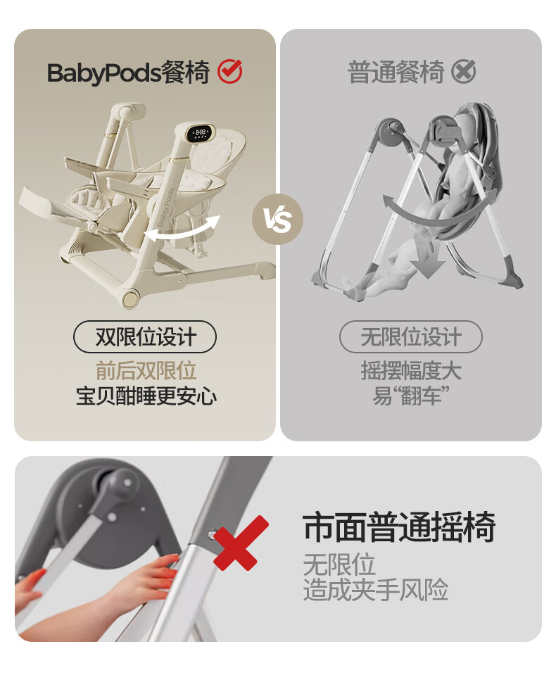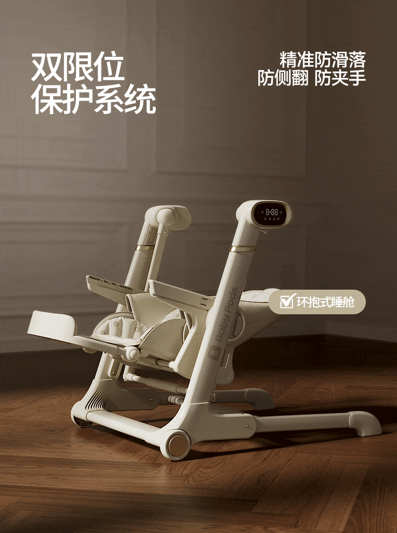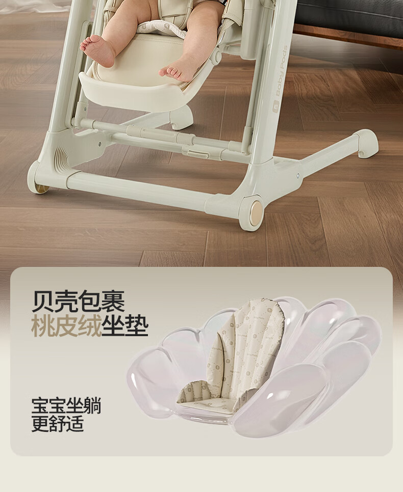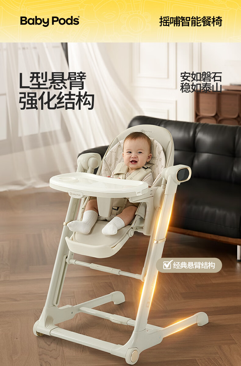 babypods宝宝餐椅摇椅二合一智能电动婴儿餐桌椅家用哄睡神器可折叠座椅 【智能哄睡】餐椅+摇椅二合一