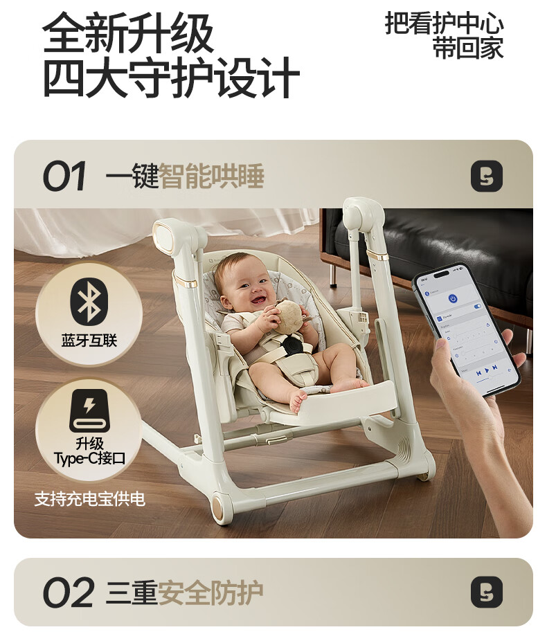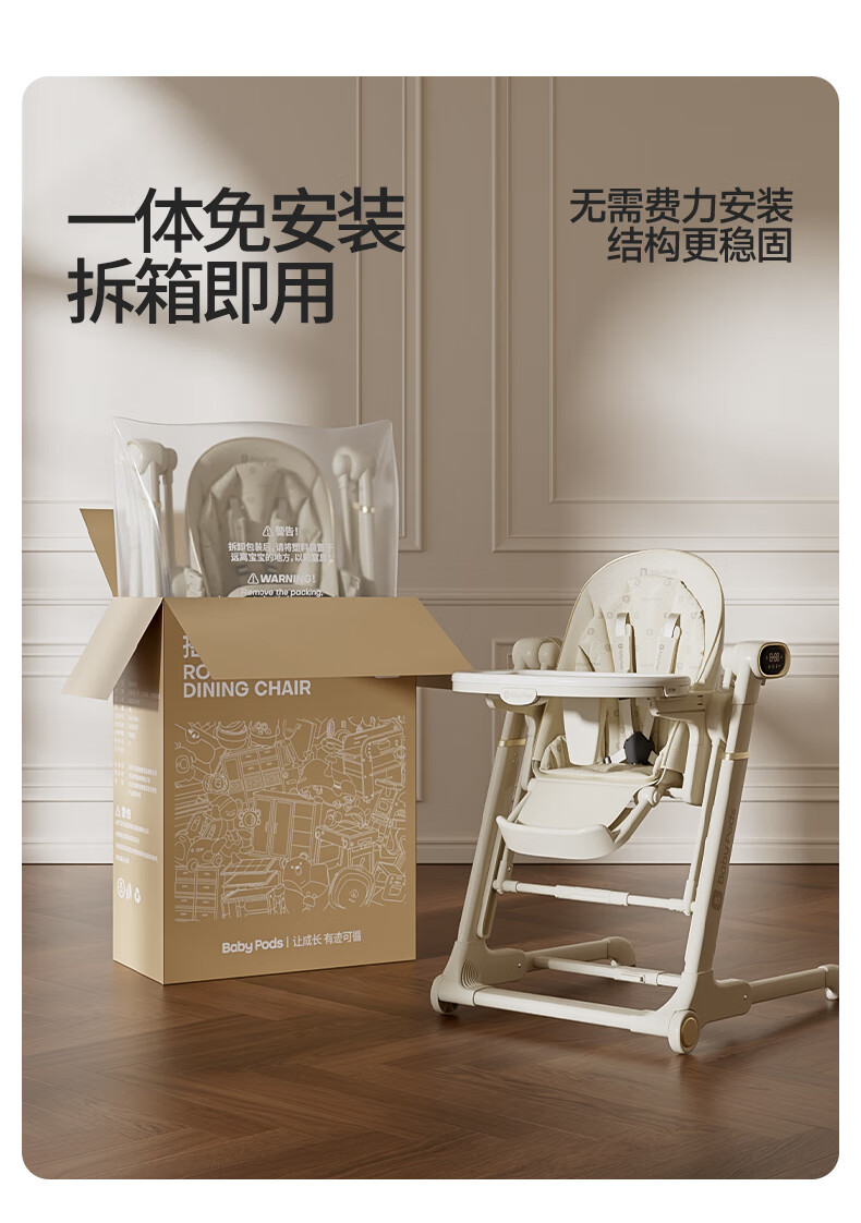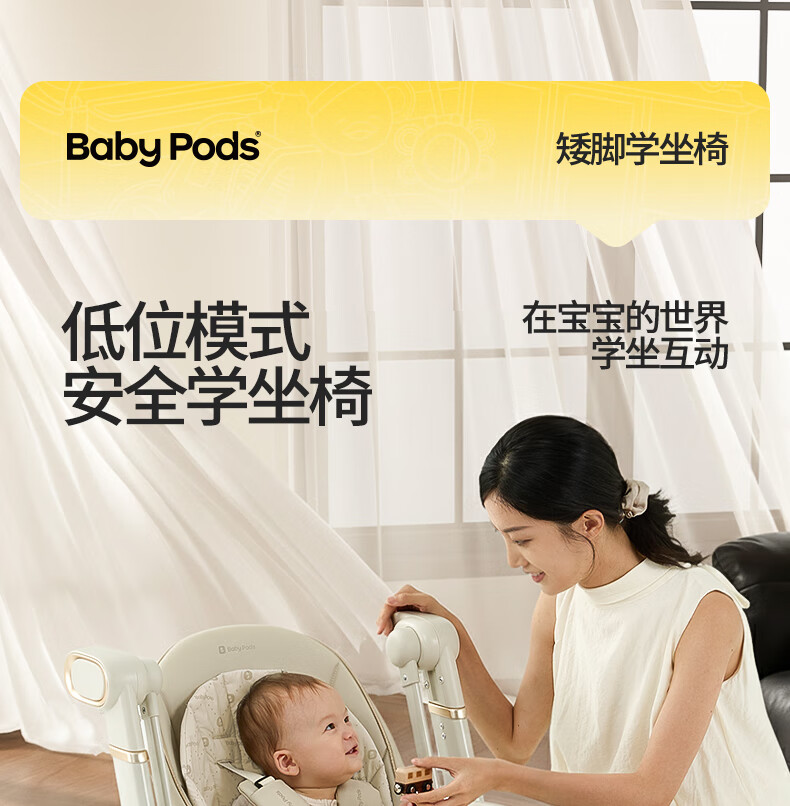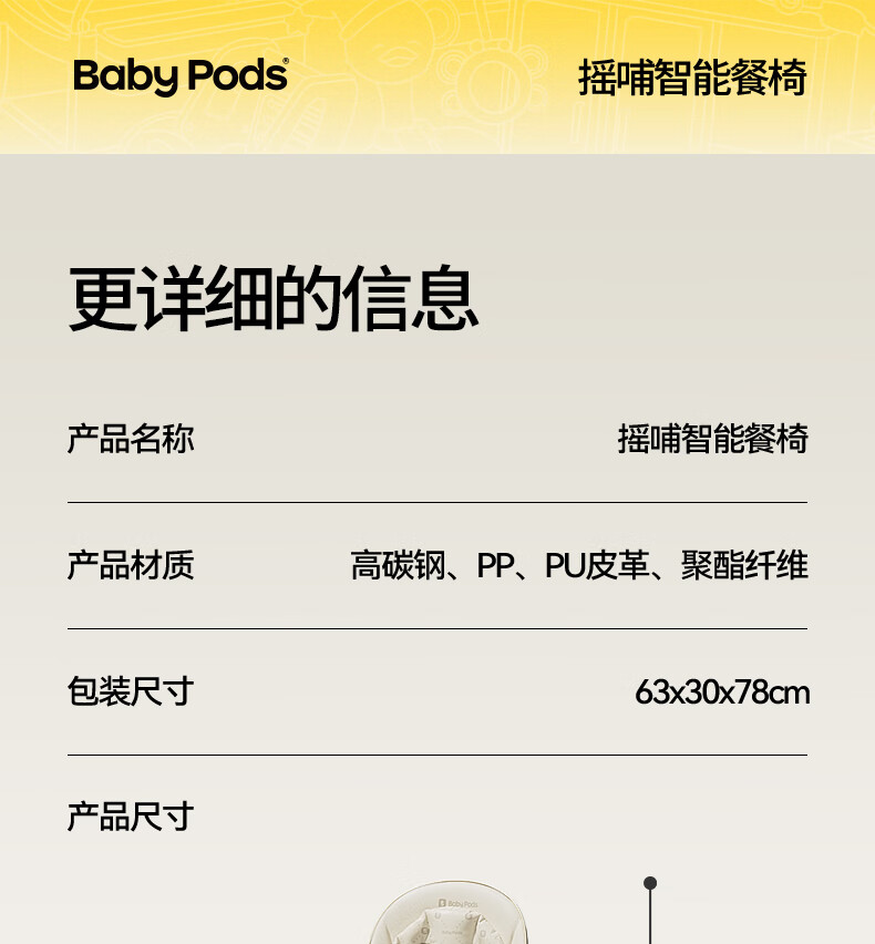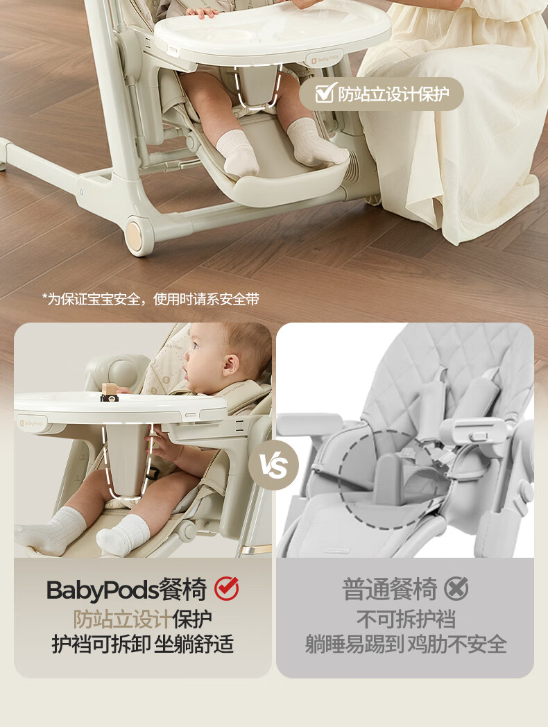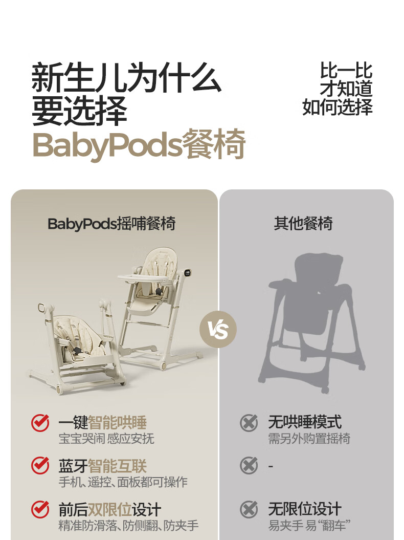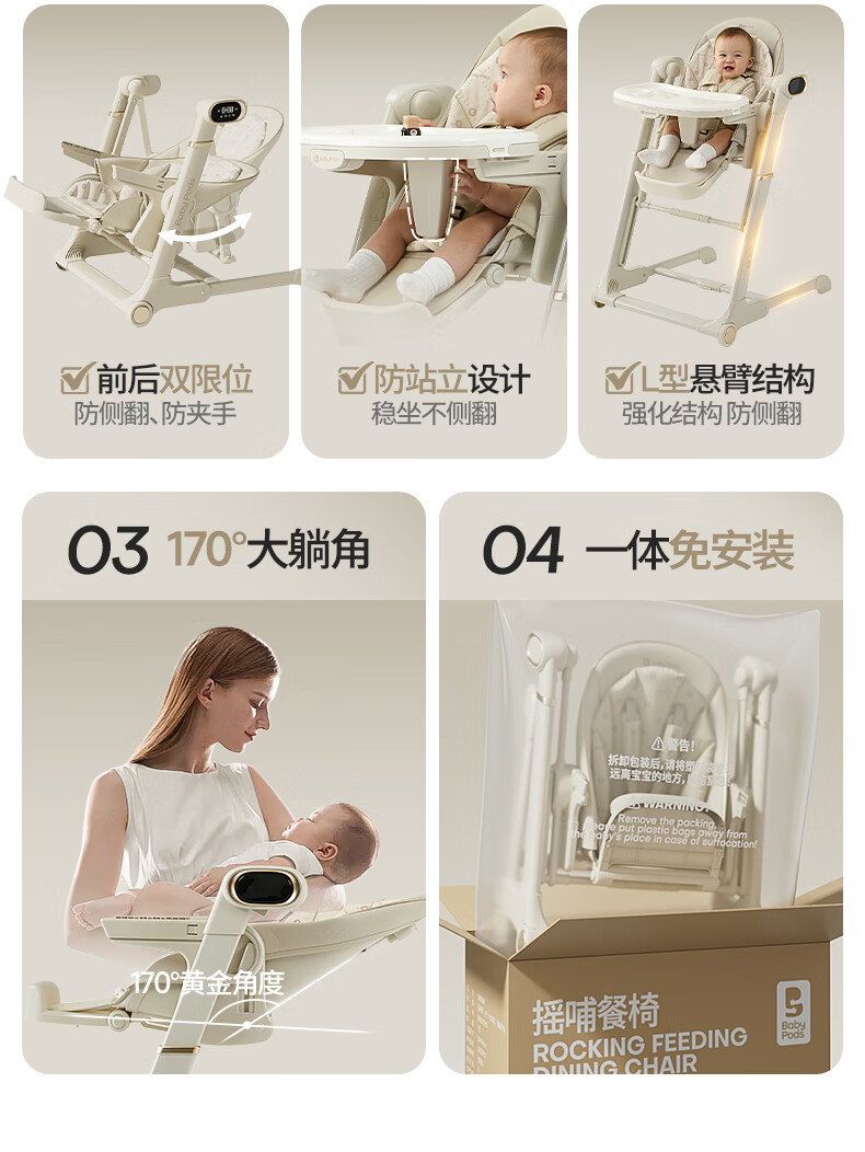 babypods宝宝餐椅摇椅二合一智能电动婴儿餐桌椅家用哄睡神器可折叠座椅 【智能哄睡】餐椅+摇椅二合一
