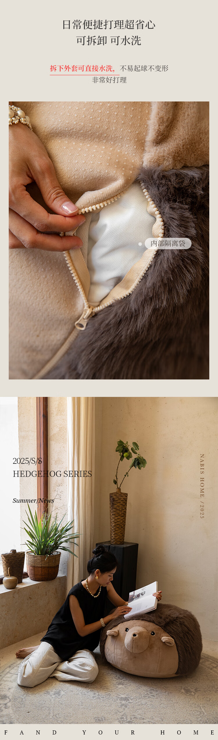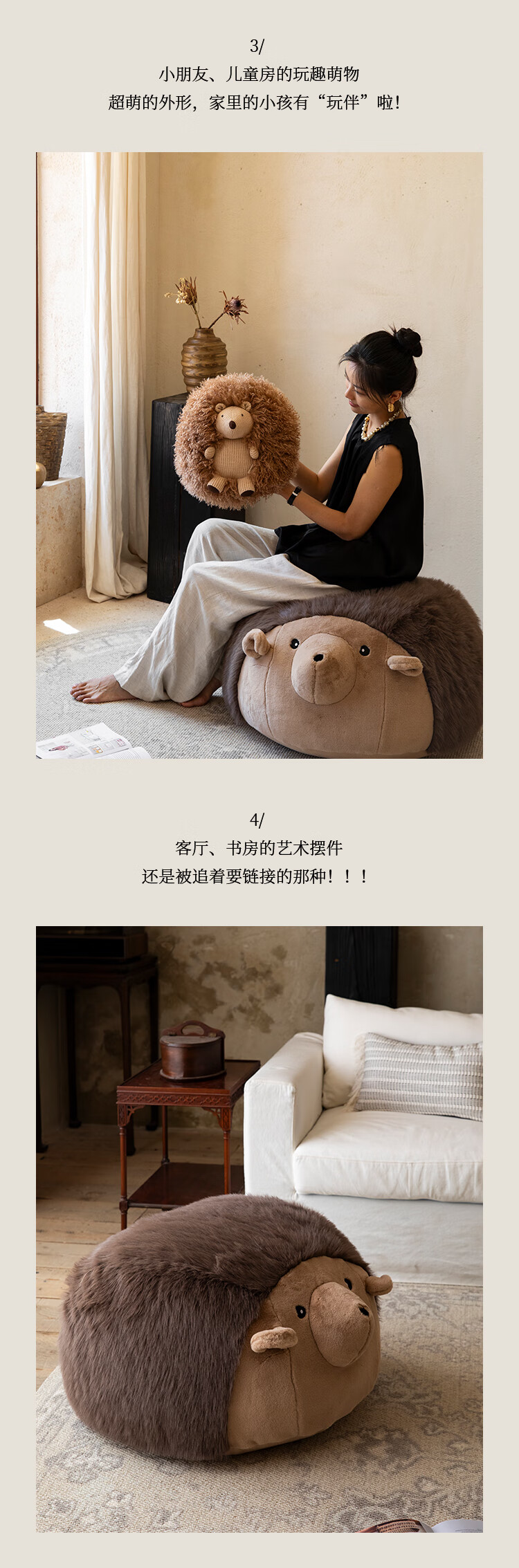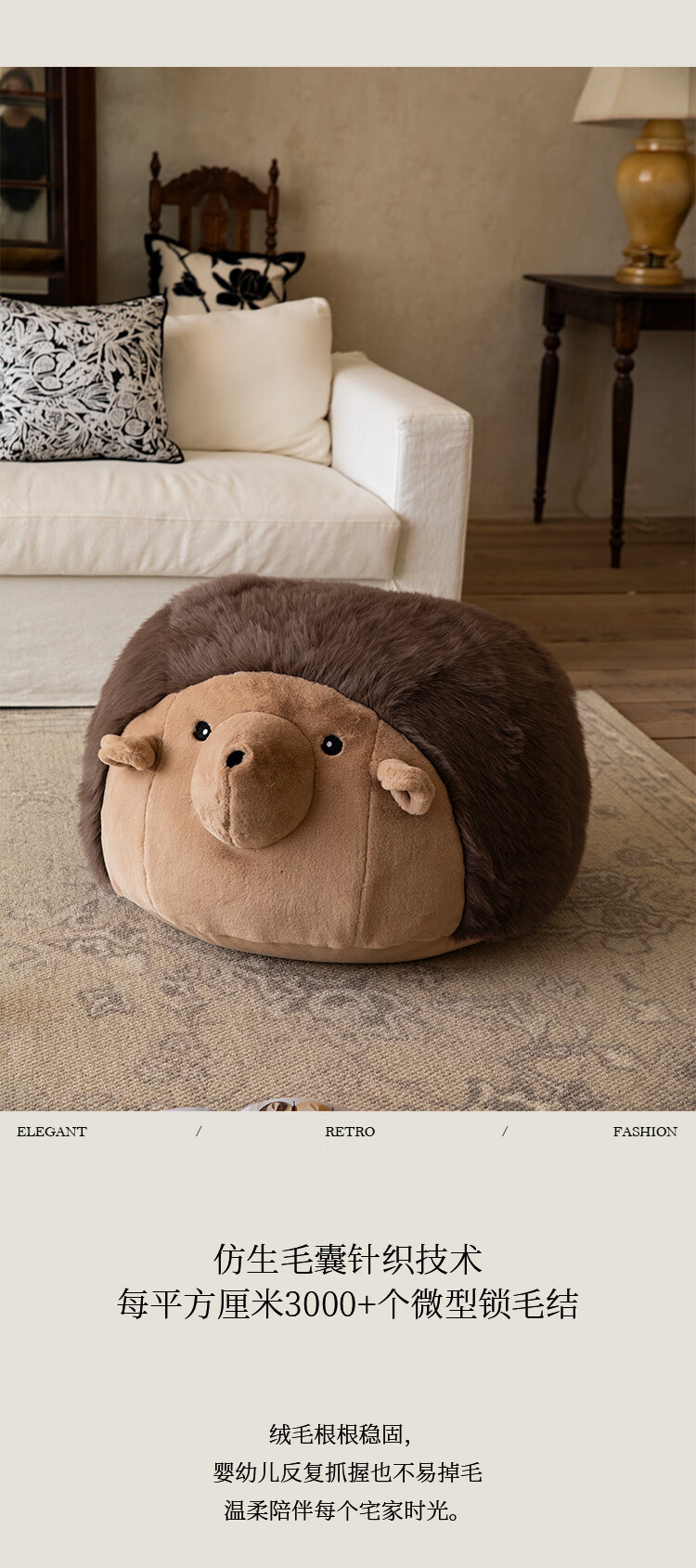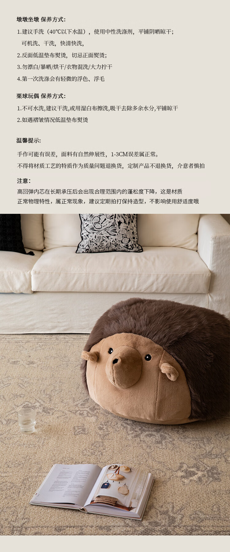 蜡笔派(Nabis)墩墩坐墩刺猬公仔毛绒抱枕氛围感可爱玩偶坐墩沙发凳脚凳 栗球玩偶 35cm*35cm 含枕芯 (含芯)