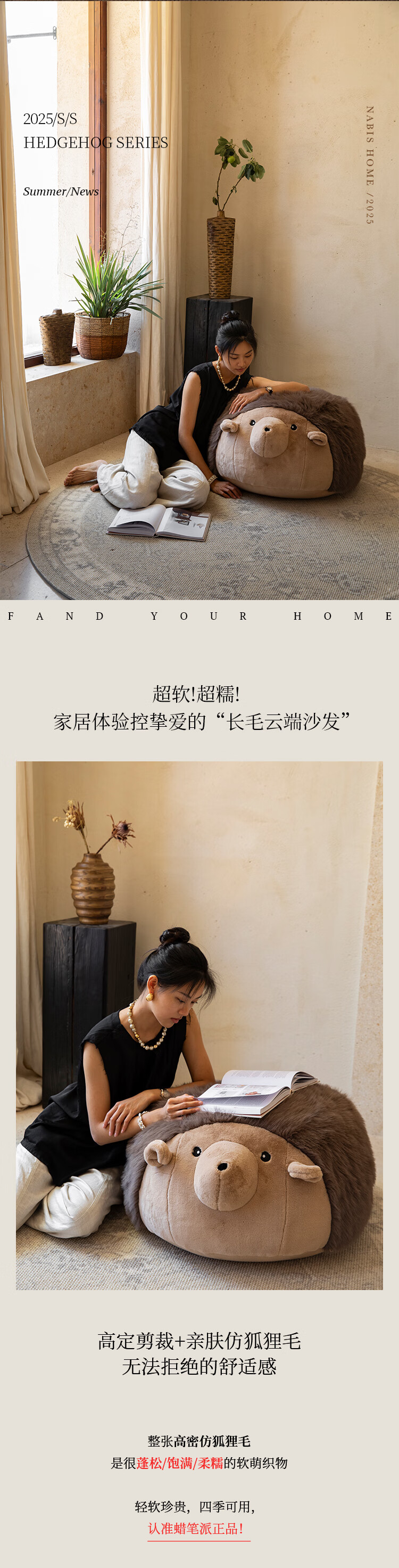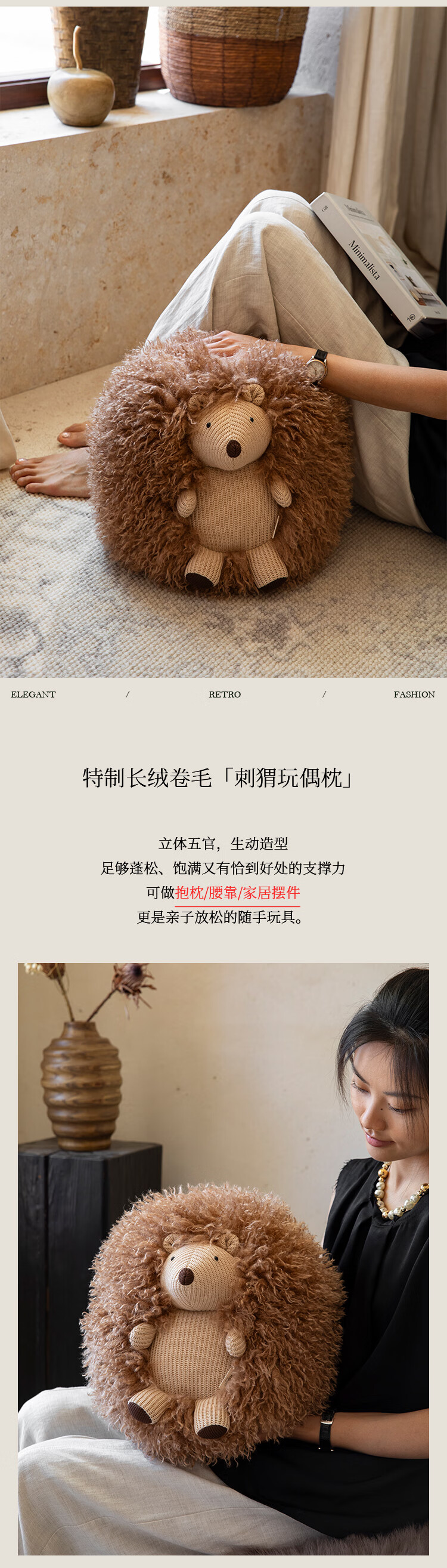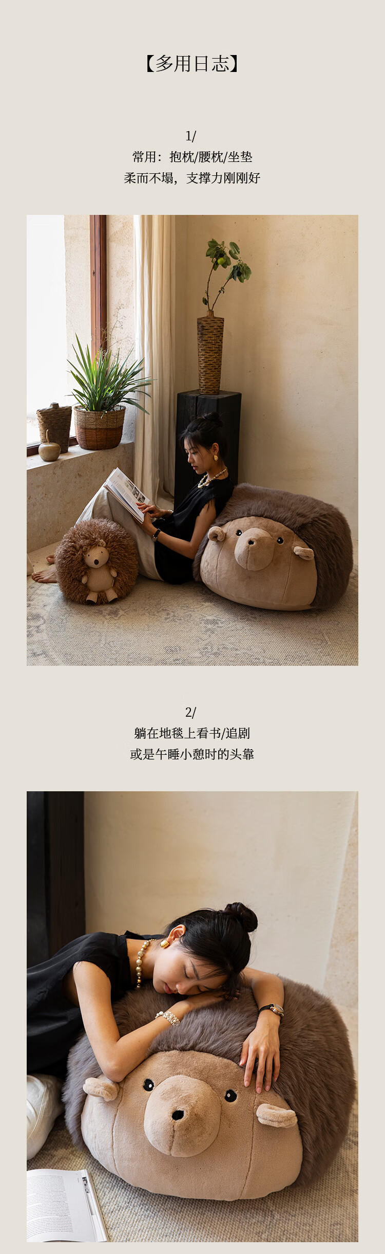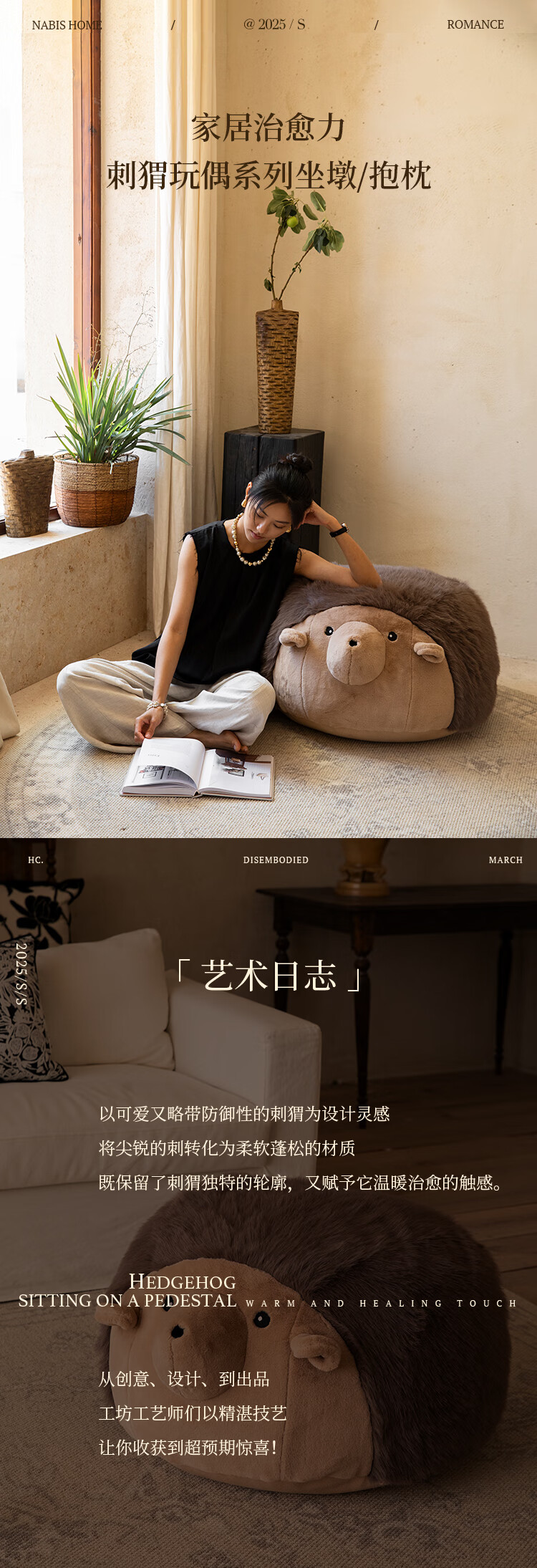 蜡笔派(Nabis)墩墩坐墩刺猬公仔毛绒抱枕氛围感可爱玩偶坐墩沙发凳脚凳 栗球玩偶 35cm*35cm 含枕芯 (含芯)