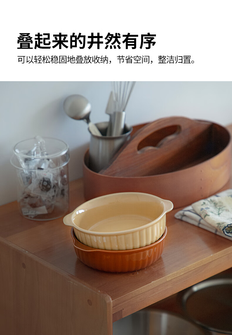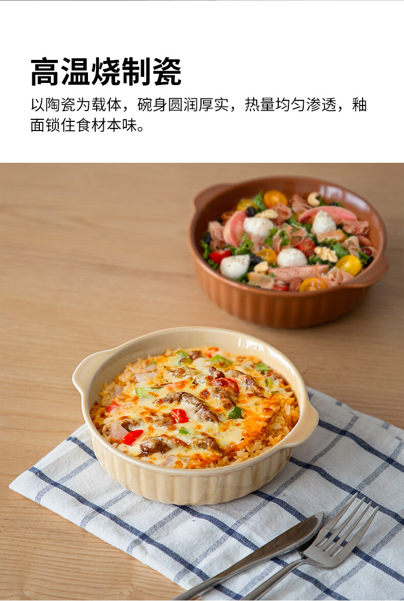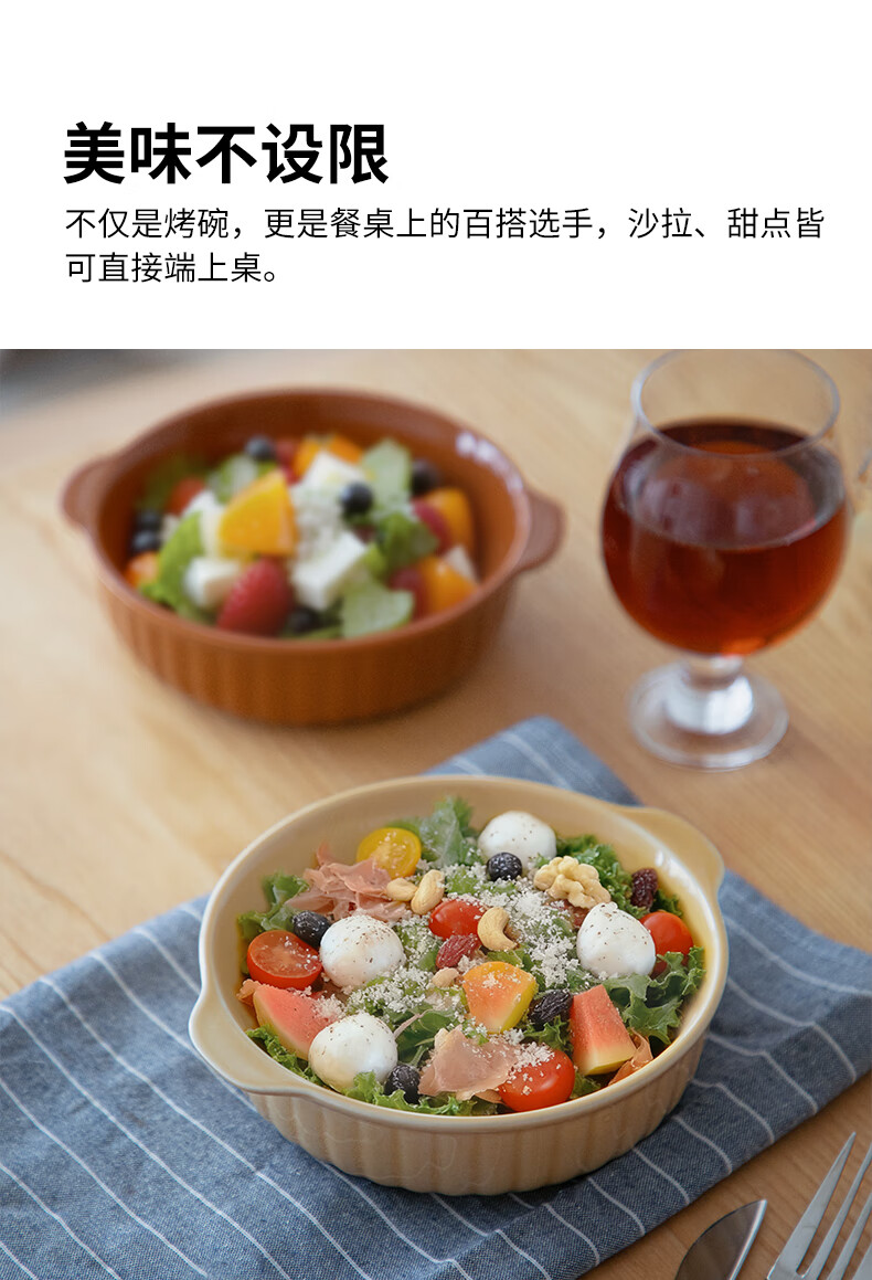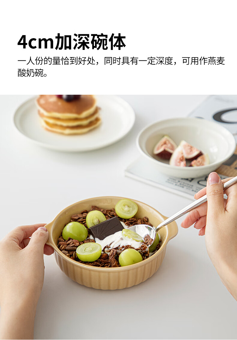 霜山瓷制烤盘酸奶燕麦碗沙拉碗烤箱微波炉加热家用圆形双耳焗饭碗 【套装】布丁黄+焦糖色
