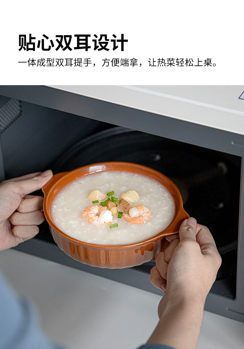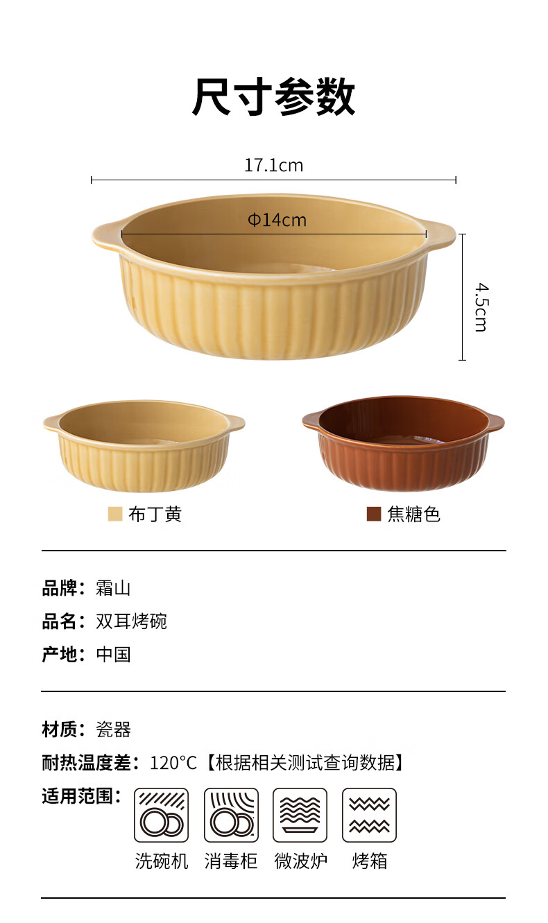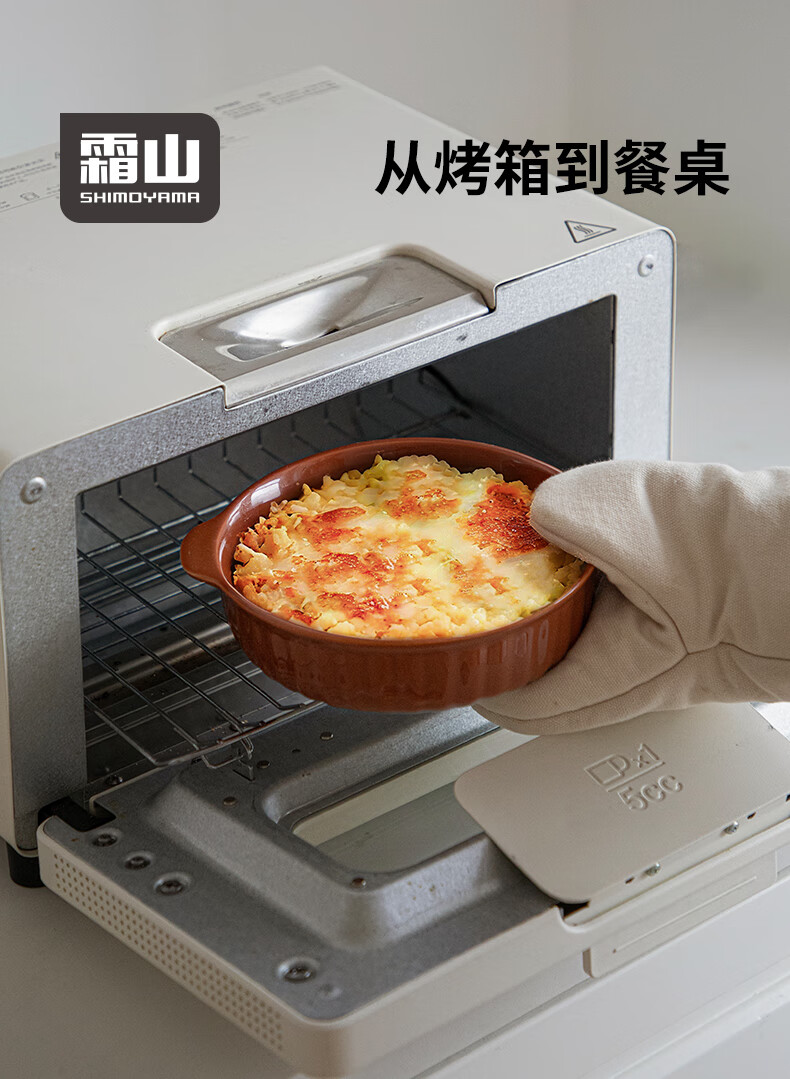 霜山瓷制烤盘酸奶燕麦碗沙拉碗烤箱微波炉加热家用圆形双耳焗饭碗 【套装】布丁黄+焦糖色